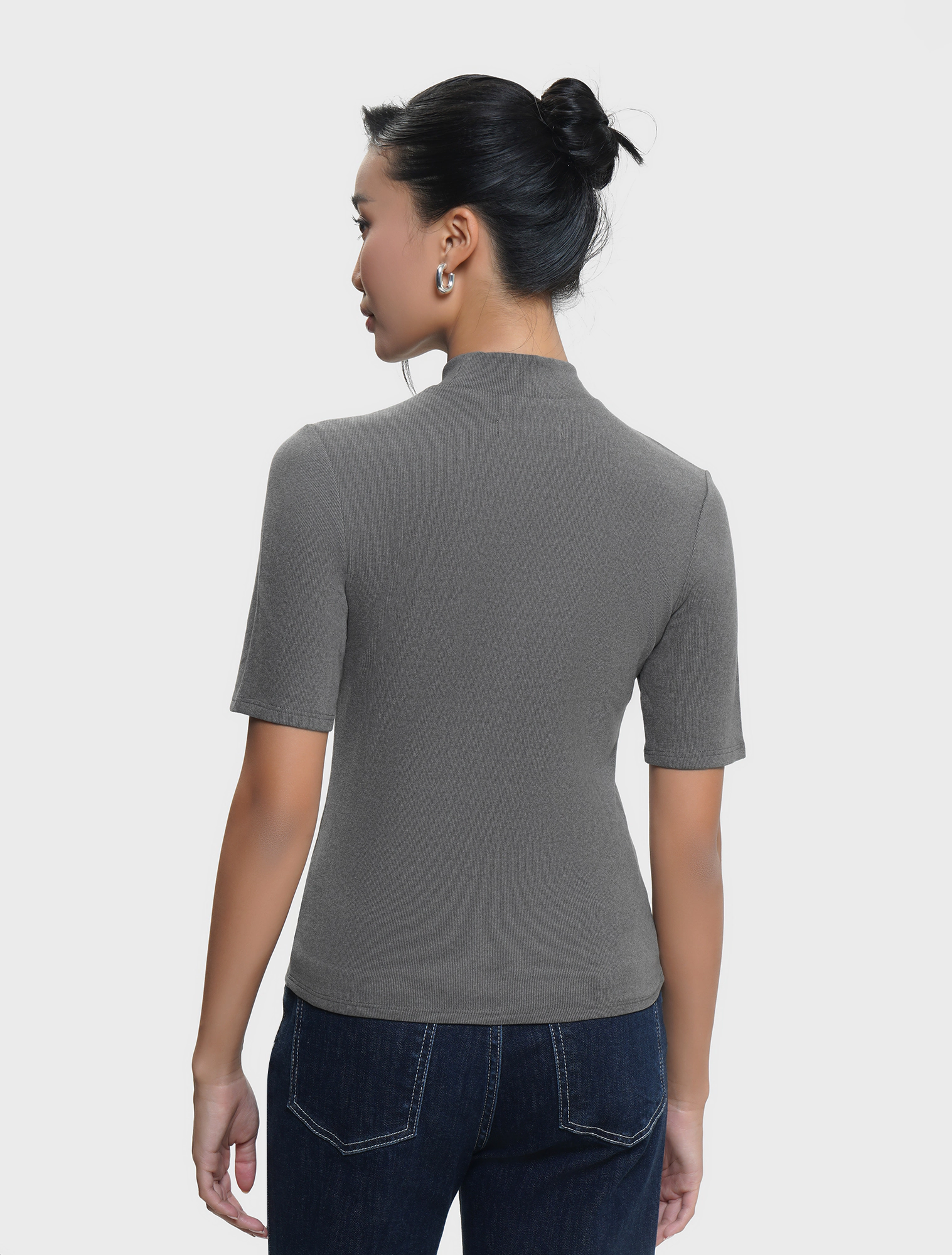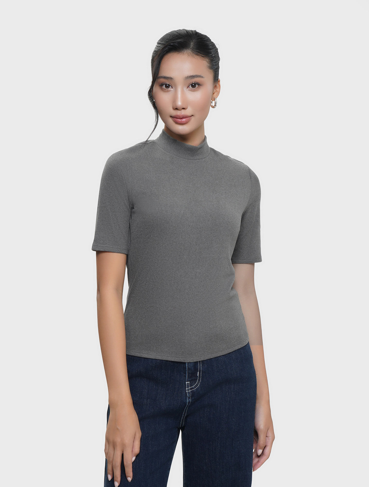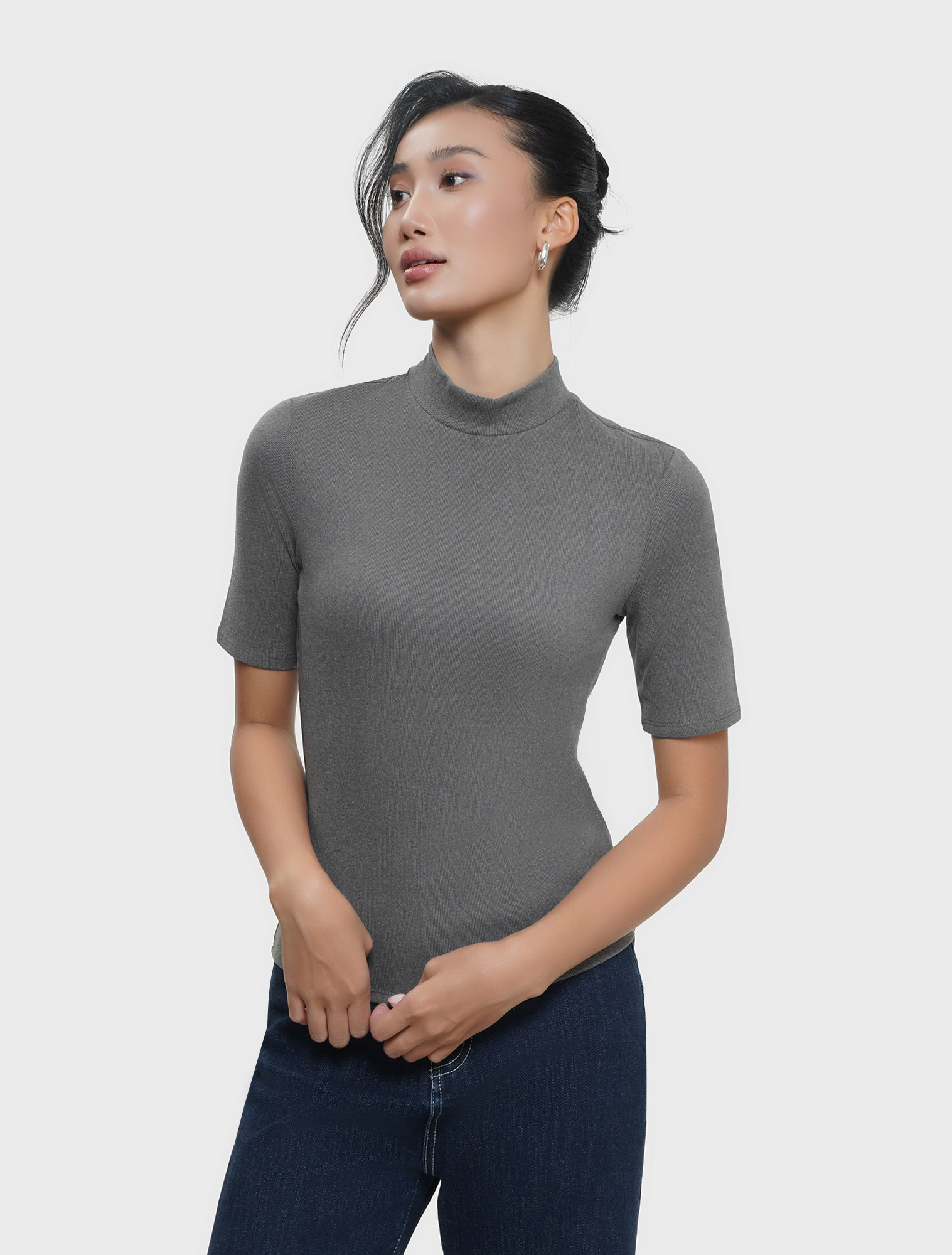 Áo phông nữ tay lỡ cổ lửng dáng ôm, chất liệu vải dệt giúp giữ ấm và màu sắc dễ kết hợp tạo nên sự lựa chọn dễ dàng cho khách hàng