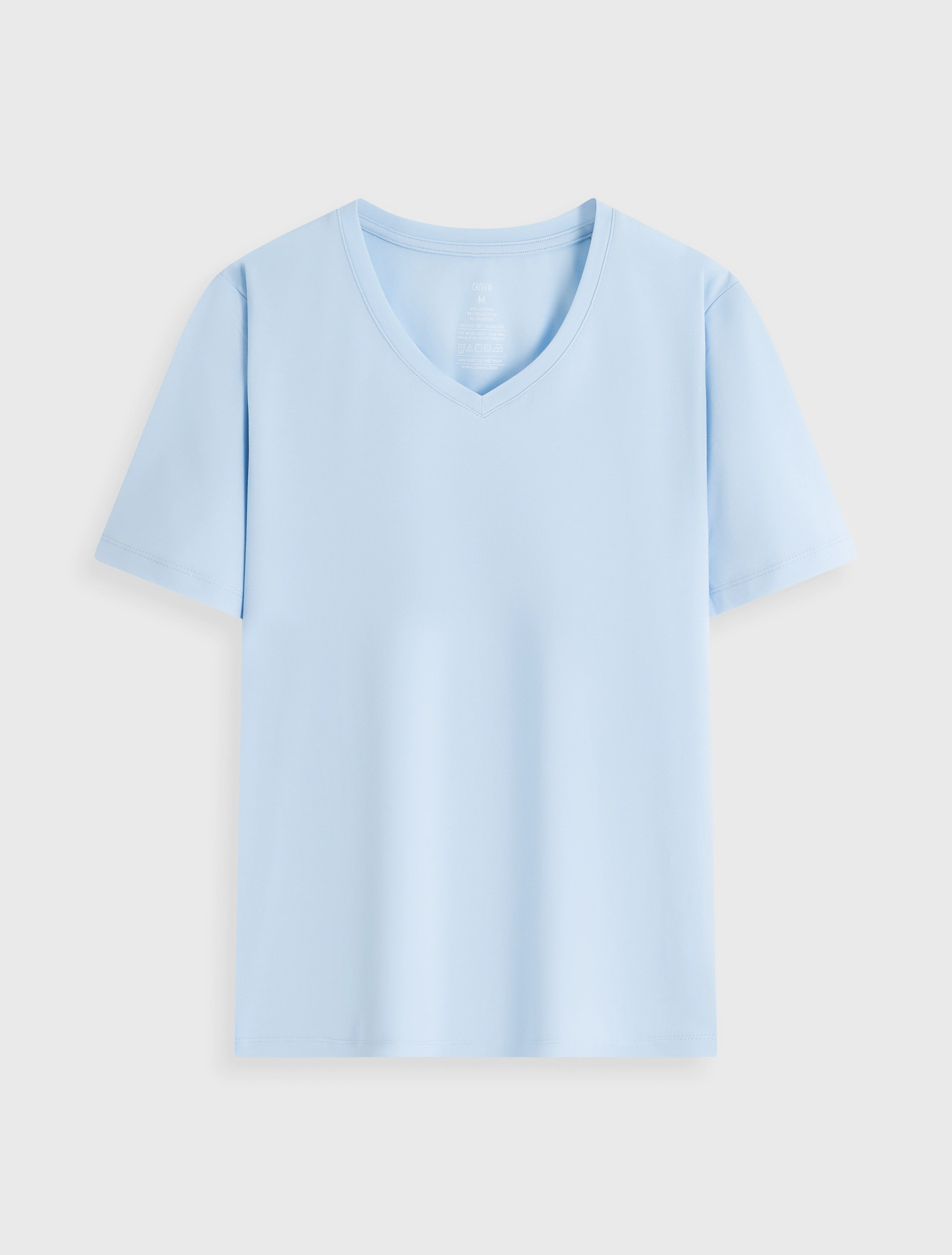 Áo phông nữ basic cổ tim, với bảng màu đa dạng, kiểu dáng đơn giản dễ mặc, phù hợp với nhiều hoàn cảnh sử dụng.