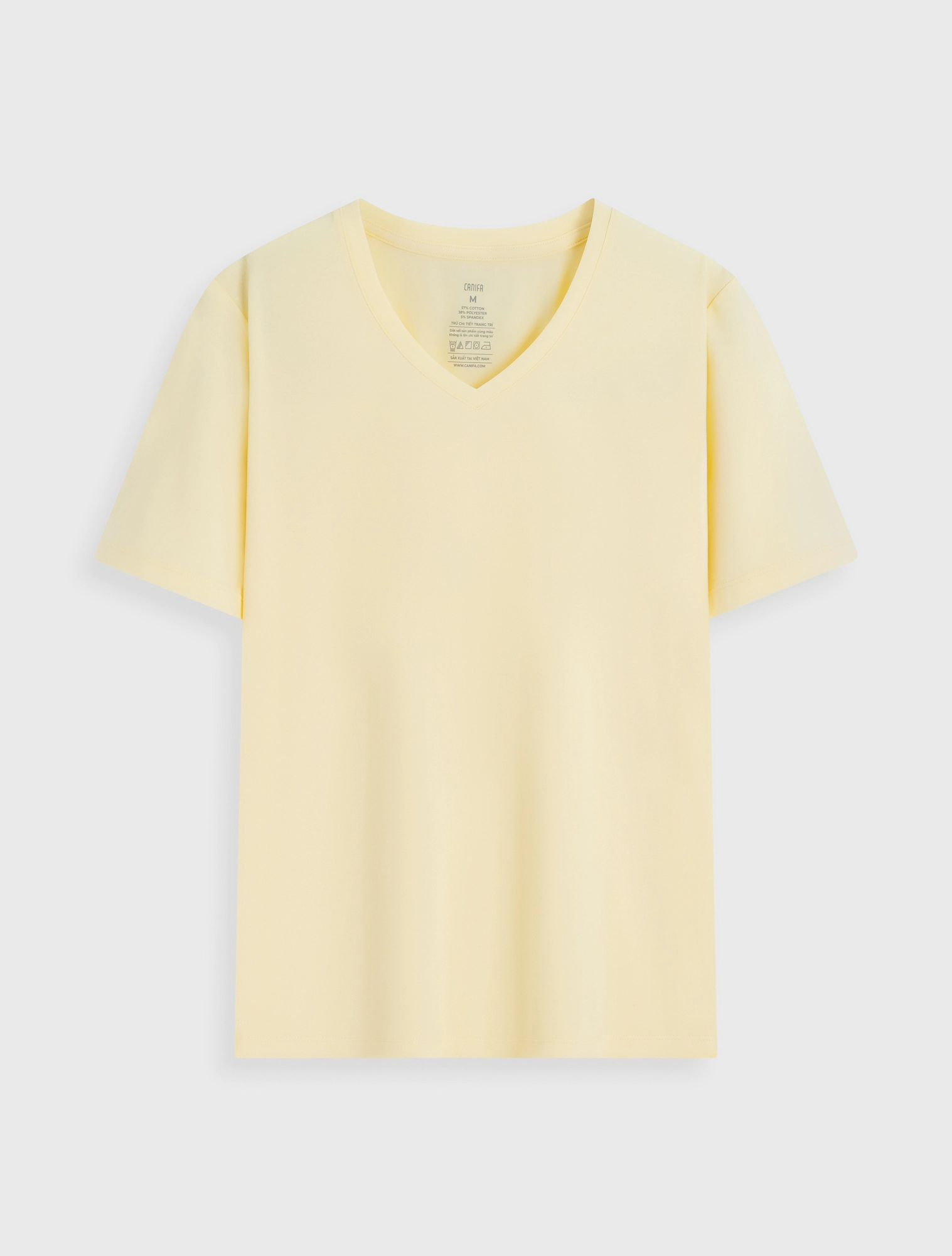 Áo phông nữ basic cổ tim, với bảng màu đa dạng, kiểu dáng đơn giản dễ mặc, phù hợp với nhiều hoàn cảnh sử dụng.