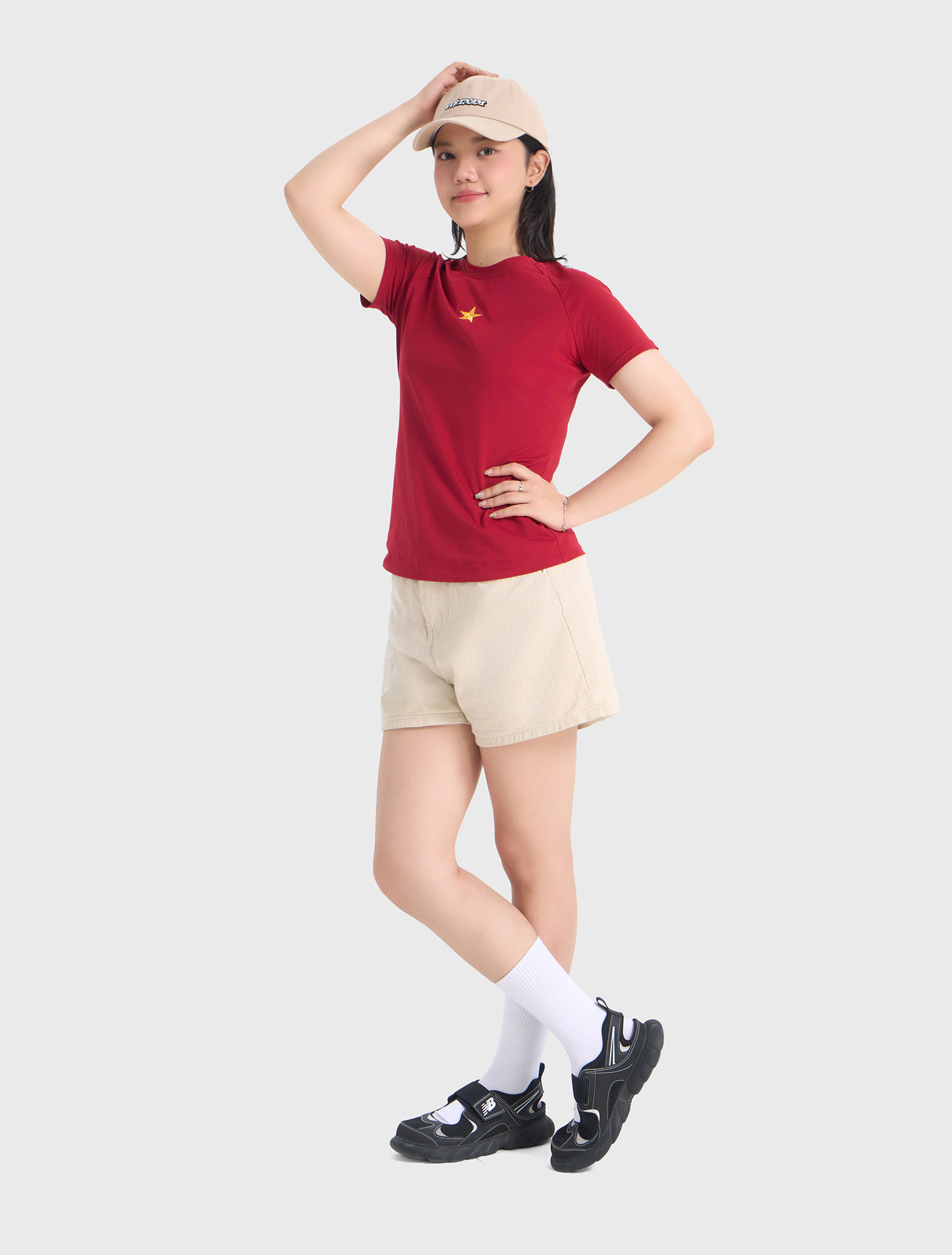 Áo phông nữ phom slim fit được làm từ chất liệu single 95% cotton 5% spandex, mang lại cảm giác mềm mại, co giãn nhẹ và thoải mái khi mặc. Thiết kế ôm vừa vặn theo dáng người, giúp tôn phom nhưng vẫn dễ vận động, phù hợp cho nhiều hoạt động thường ngày.