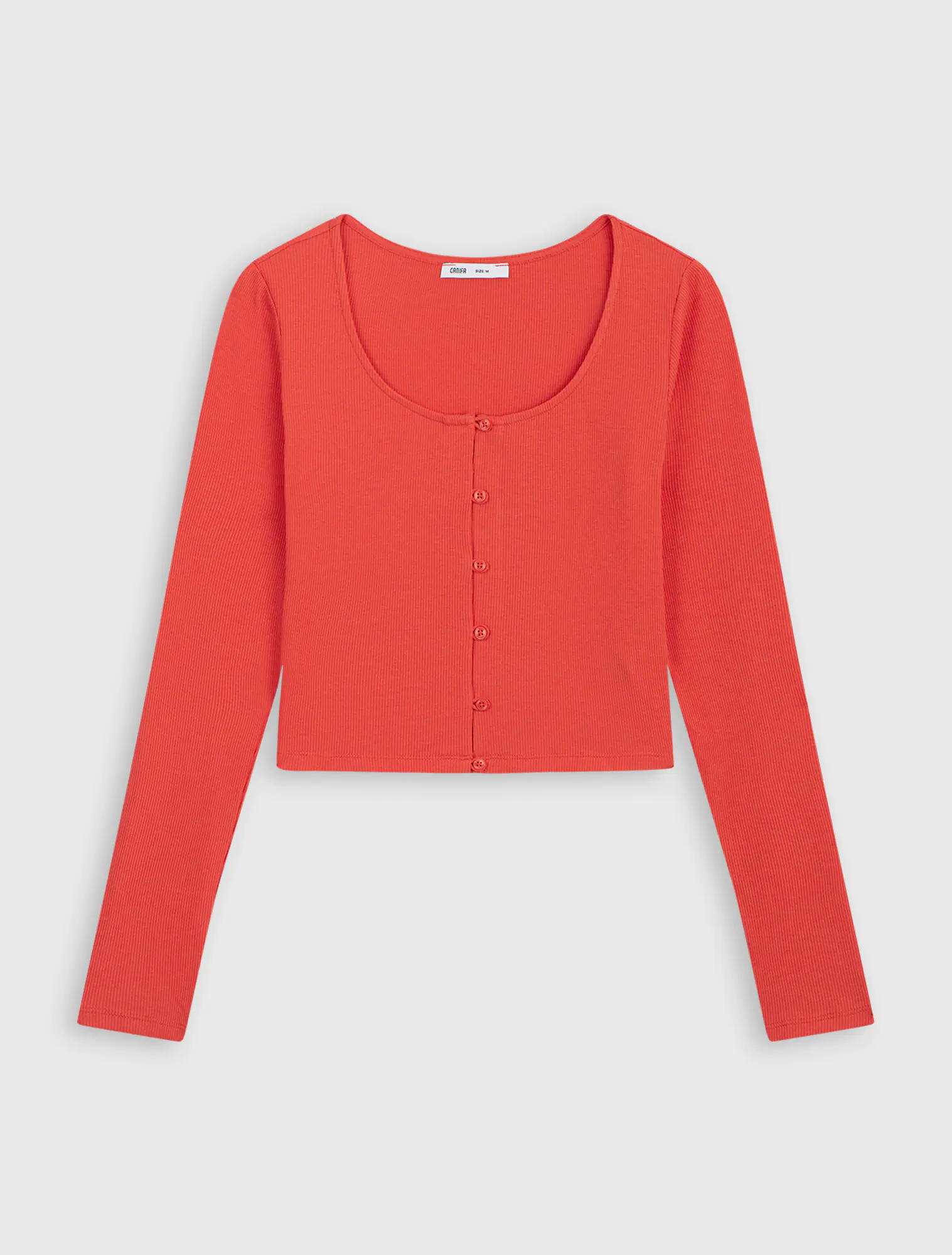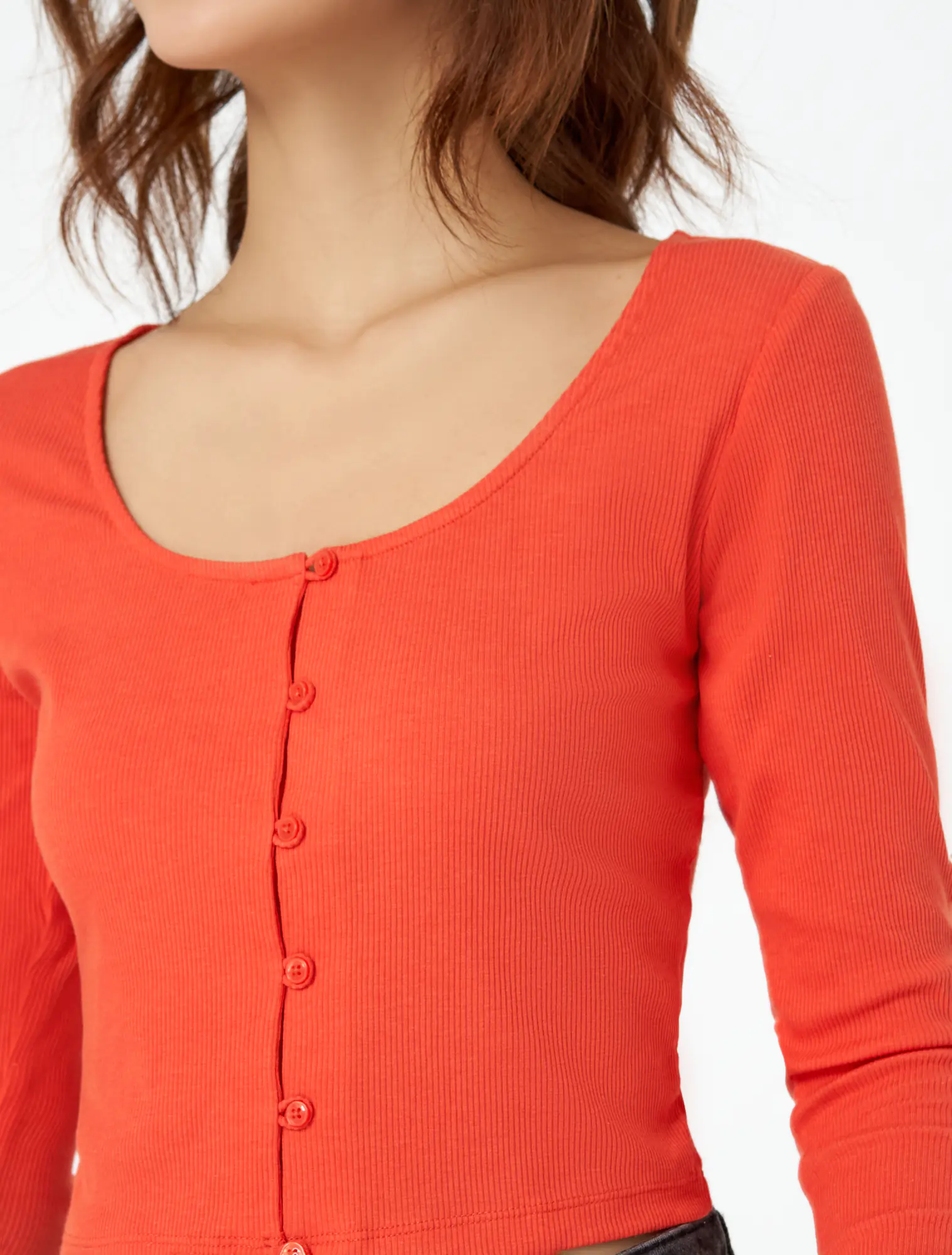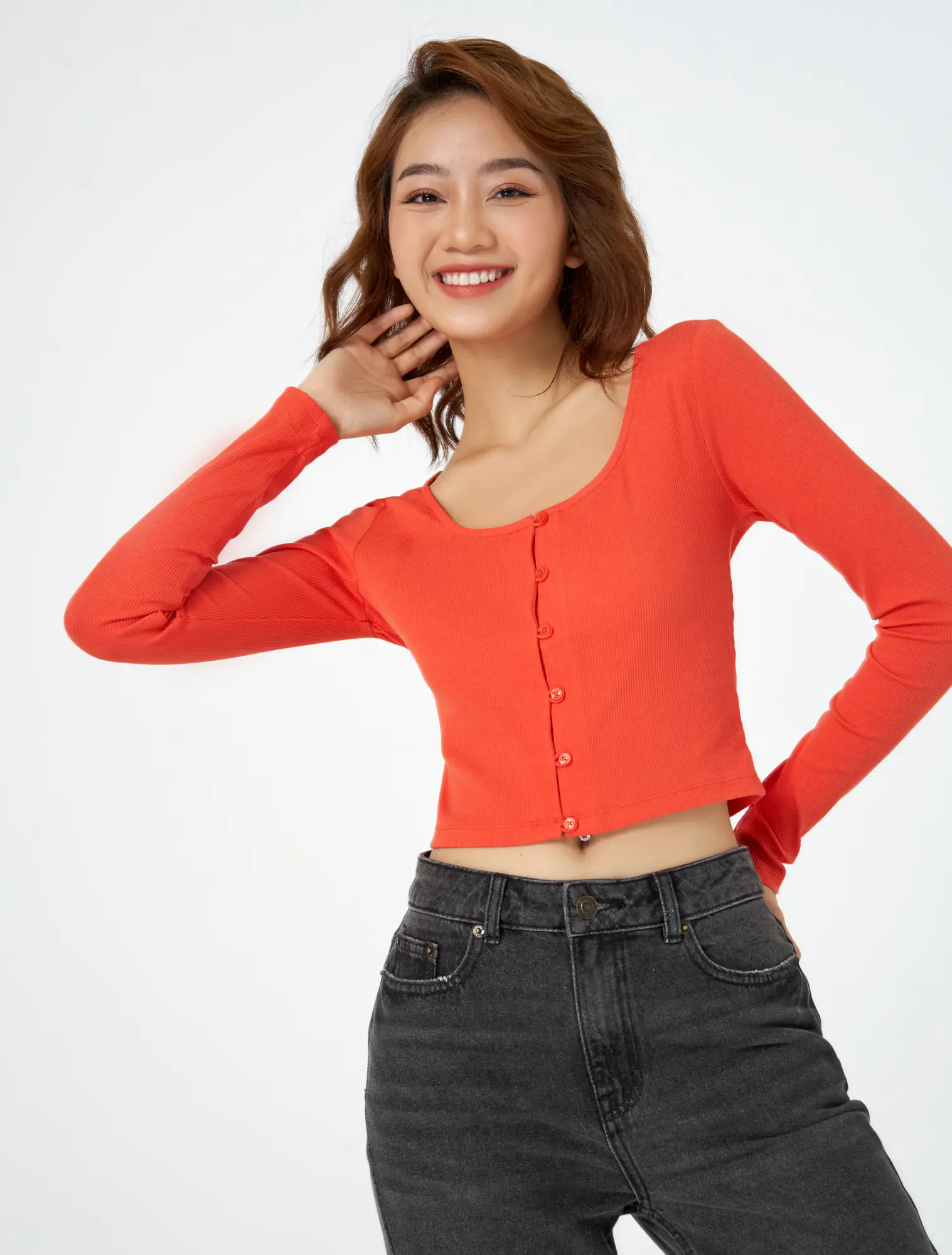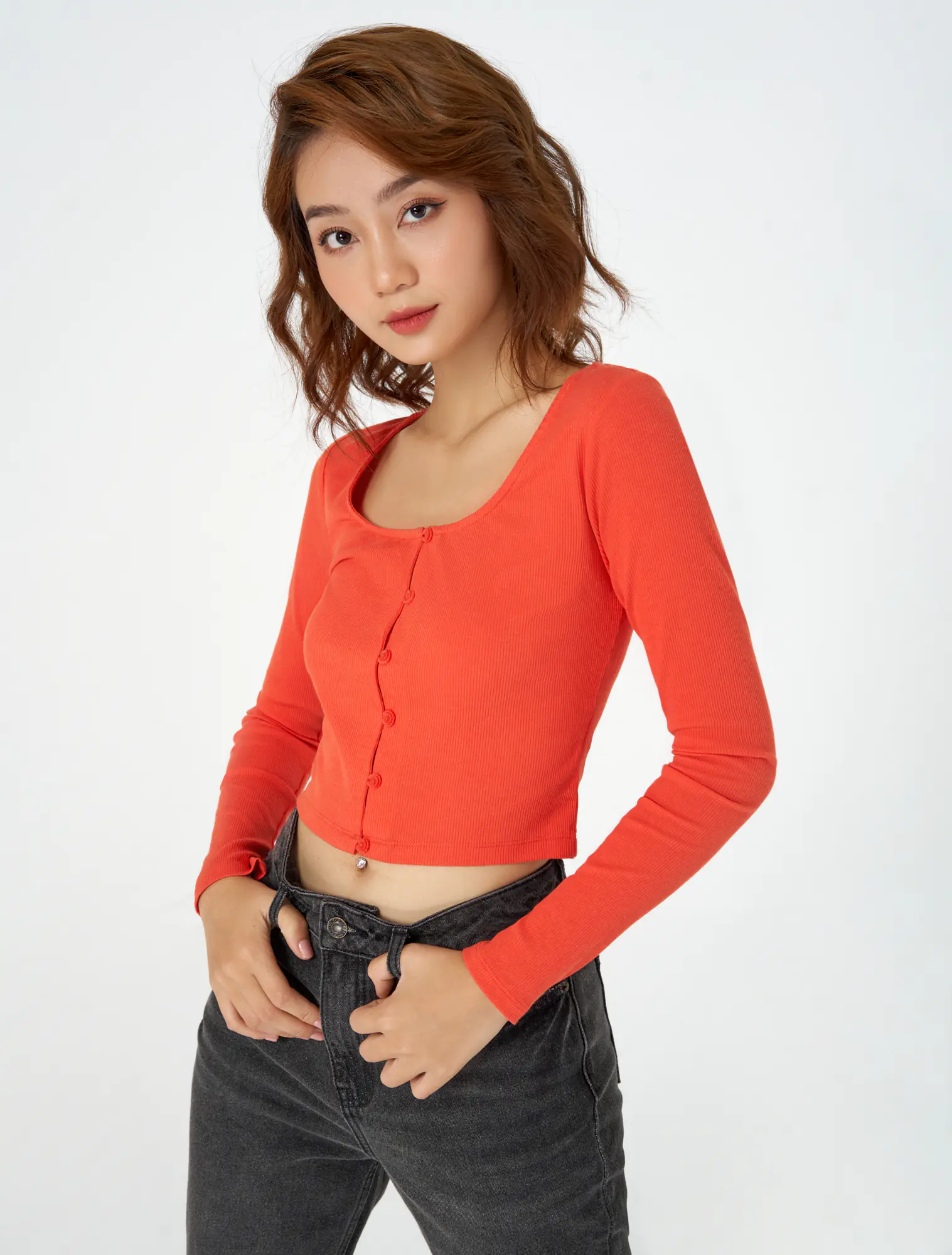 Áo phông chất liệu rayon pha, cổ henley tay dài, dáng ôm.