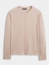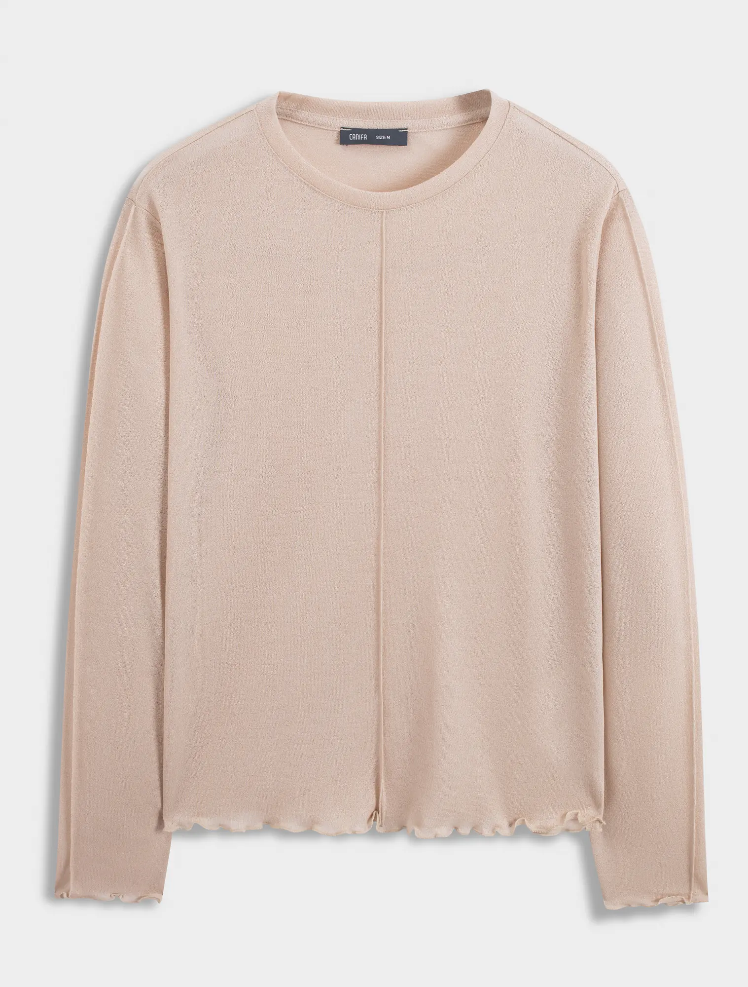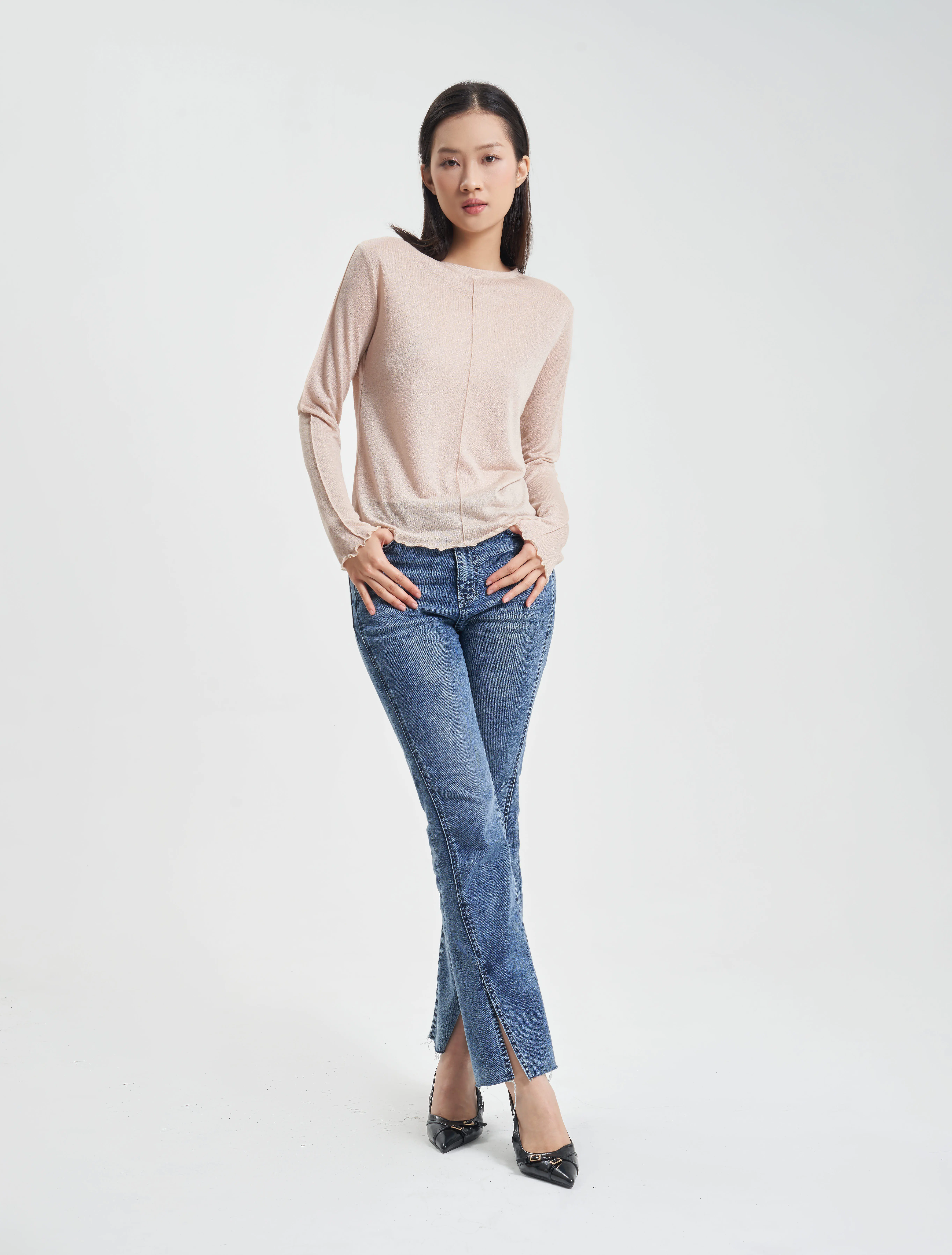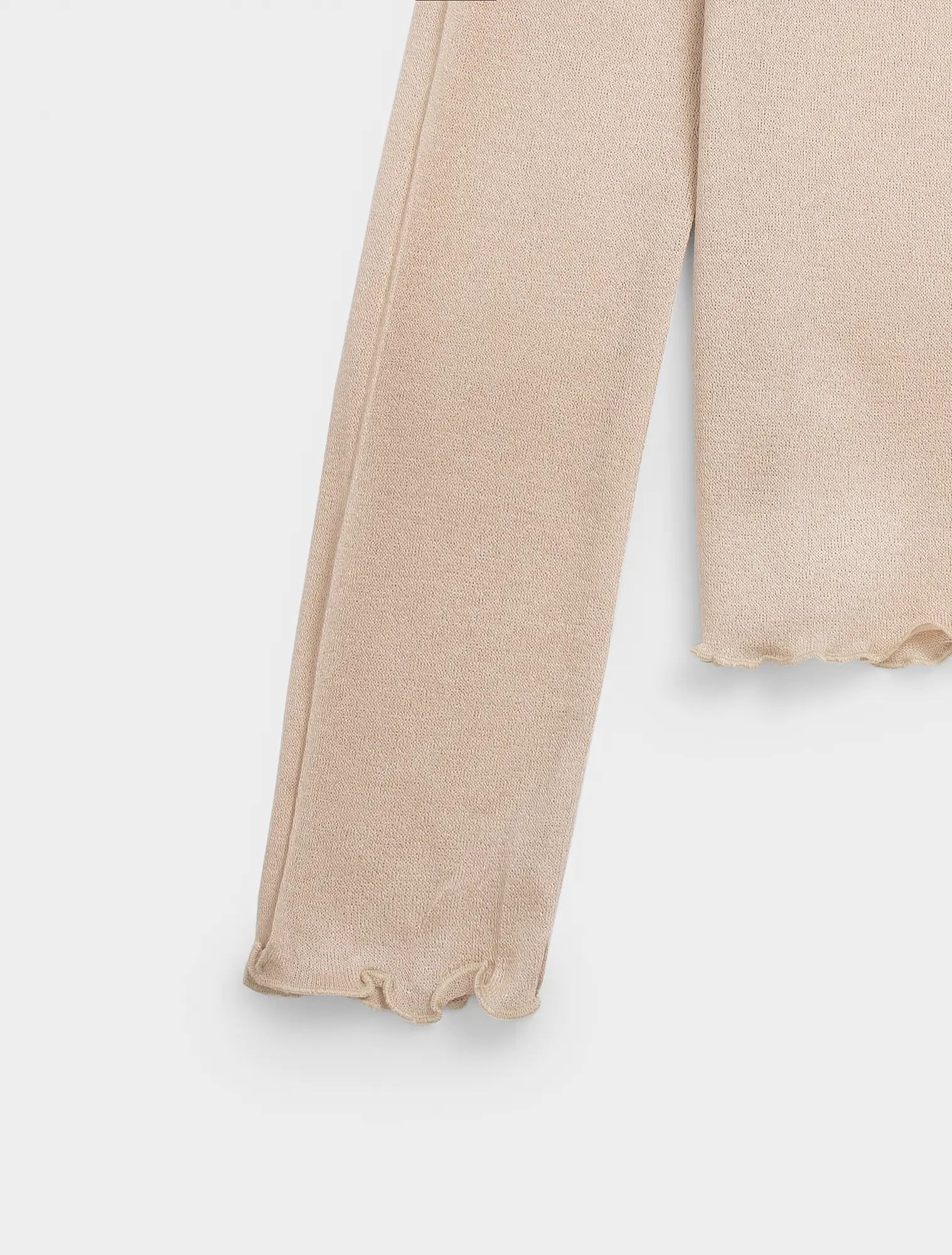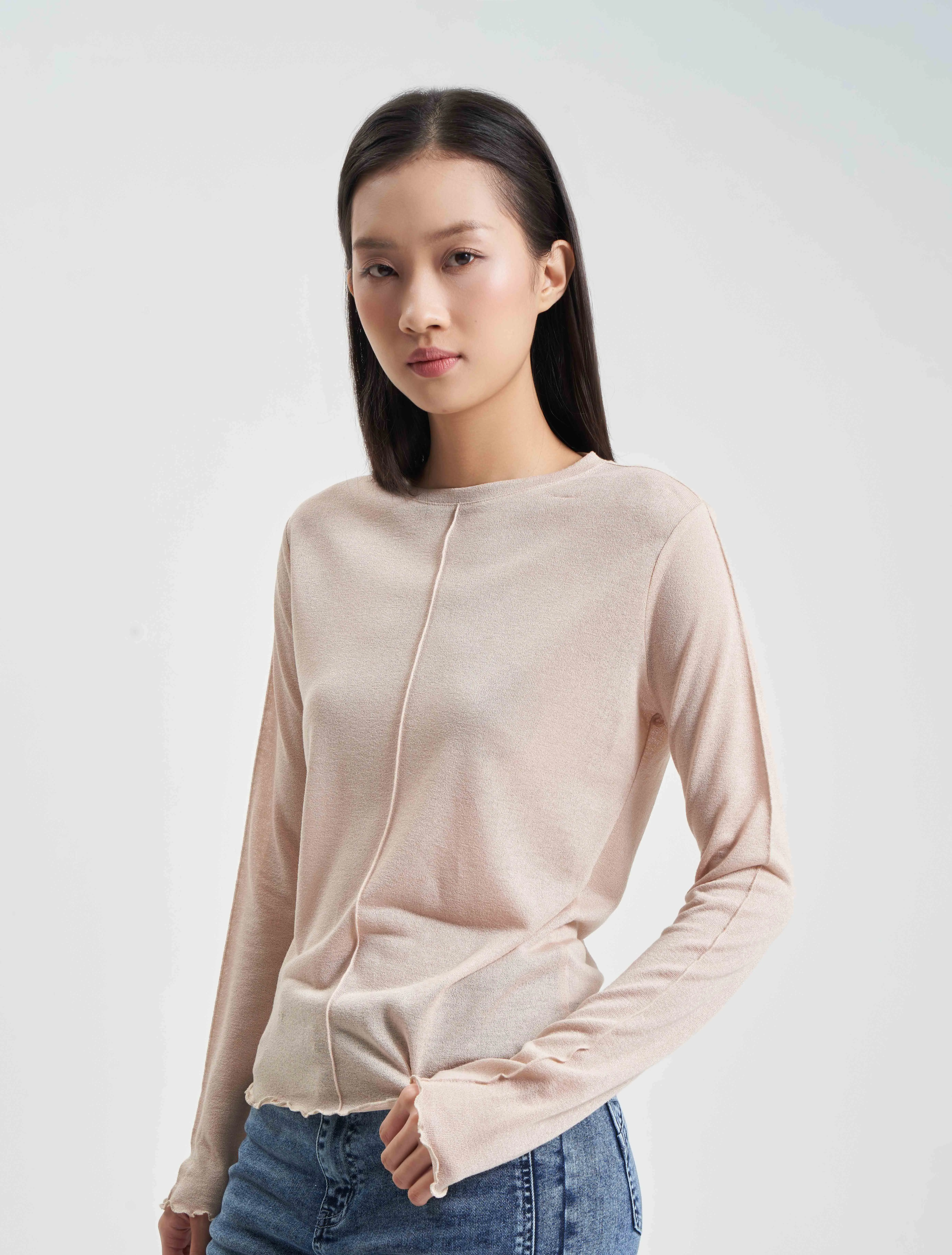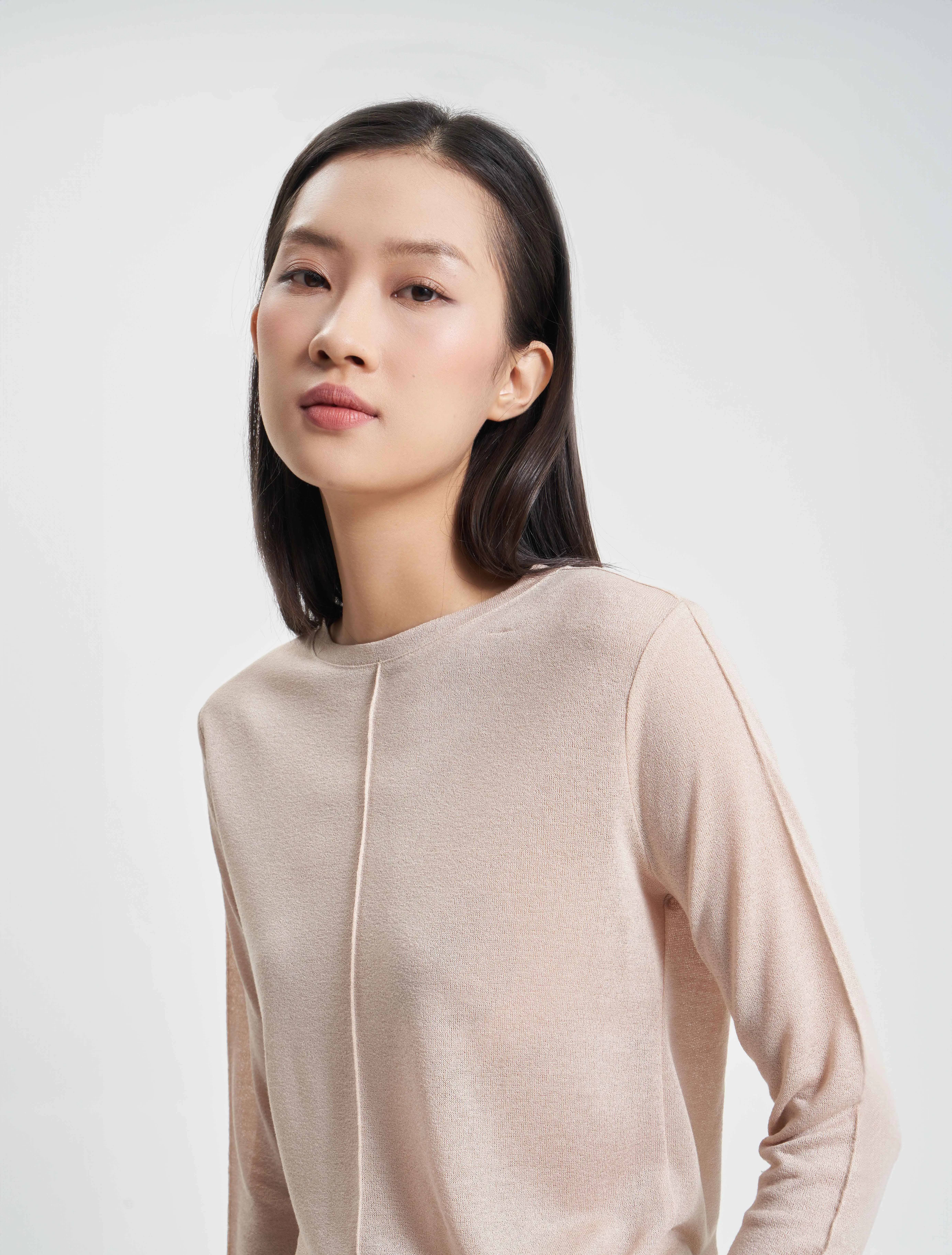 Áo nữ cổ tròn dài tay với các chi tiết tạo gân ở thân áo và sống tay kết hợp với chất liệu vải mỏng, mềm mix kim tuyến đã tạo nên 1 sản phẩm basic nhưng ấn tượng, phù hợp với nhiều hoàn cảnh mặc hàng ngày hay mùa lễ hội.