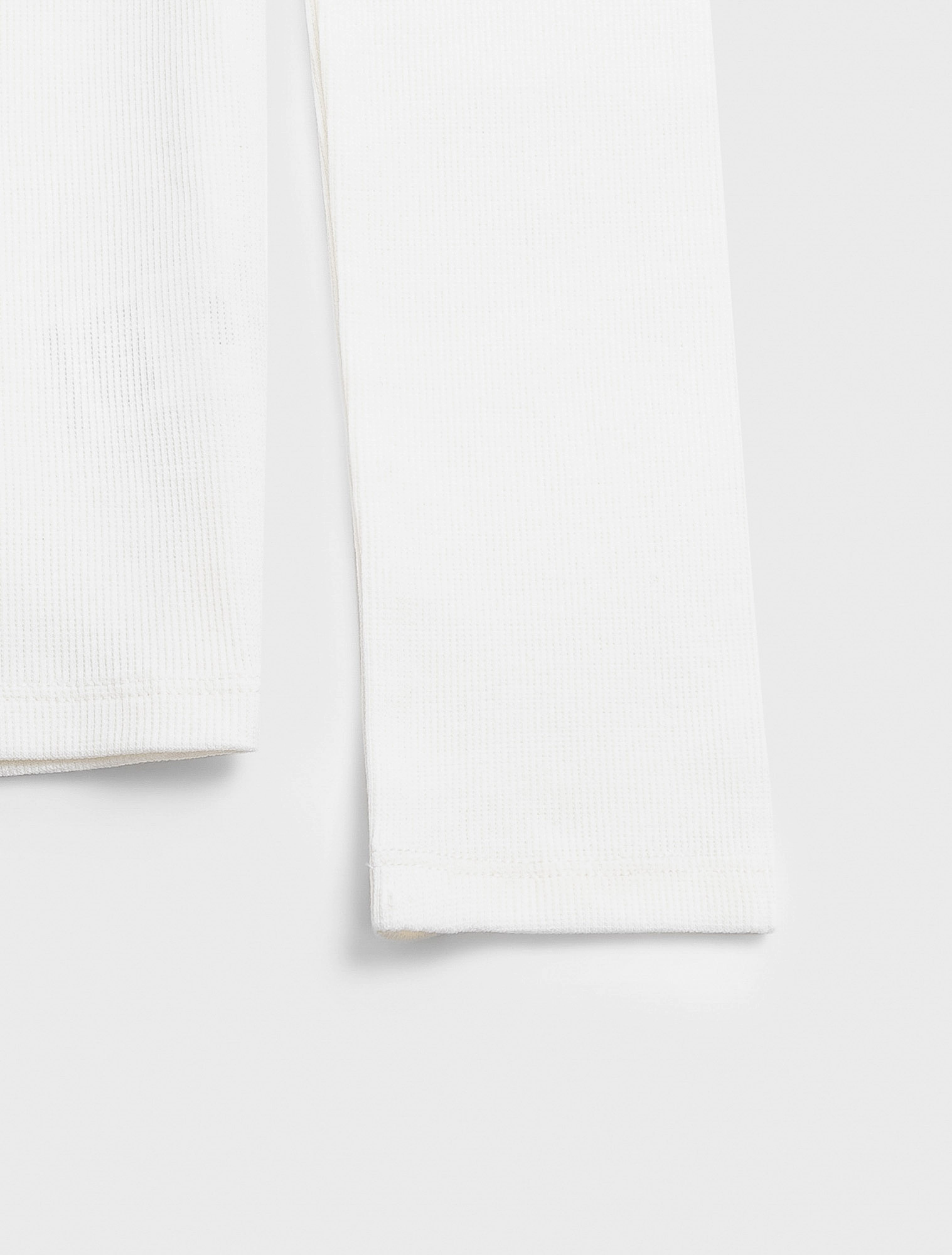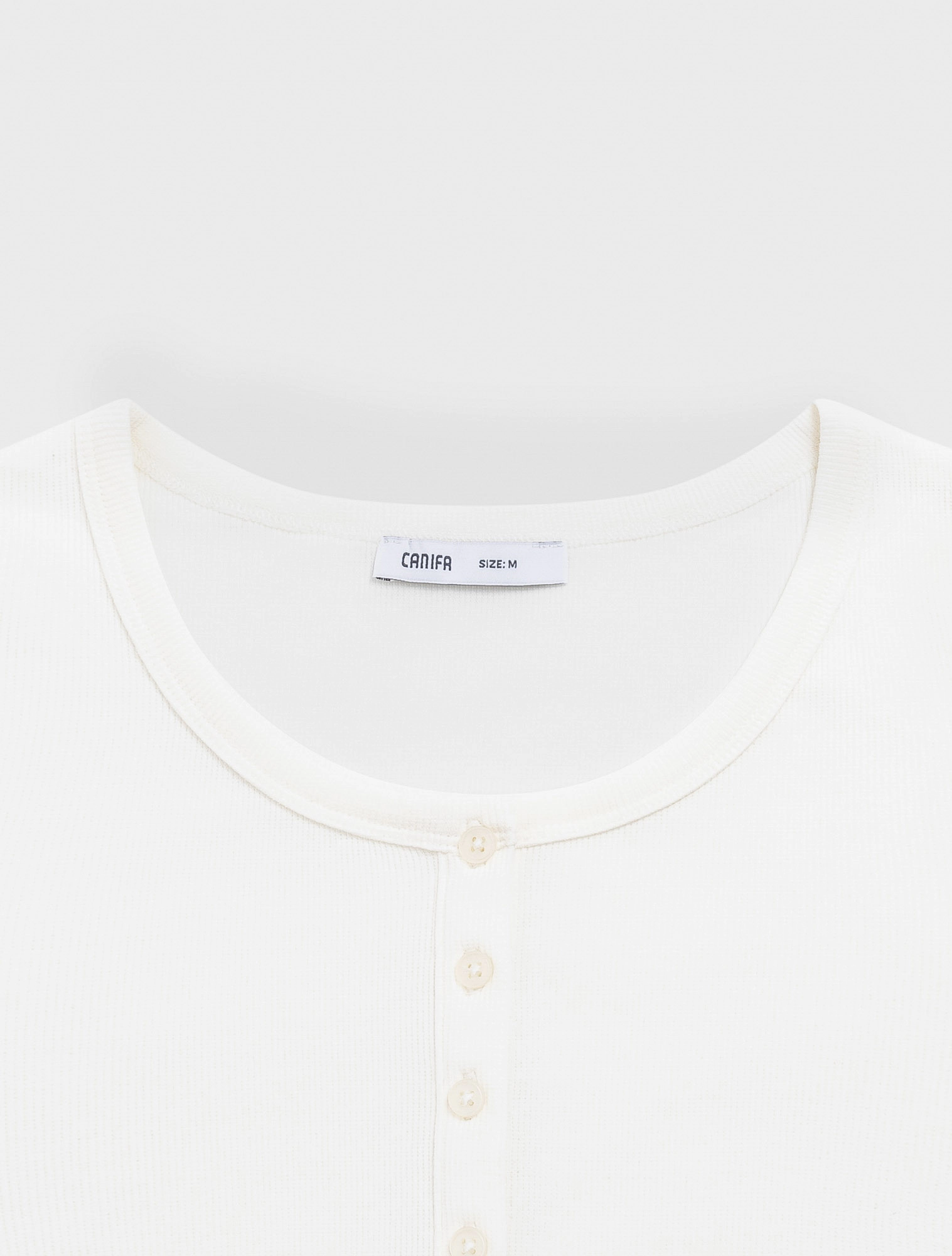 Áo phông nữ dài tay cổ kiểu cài cúc, dáng ôm với chất liệu dệt rib co dãn thoải mái mềm mại khi sử dụng.