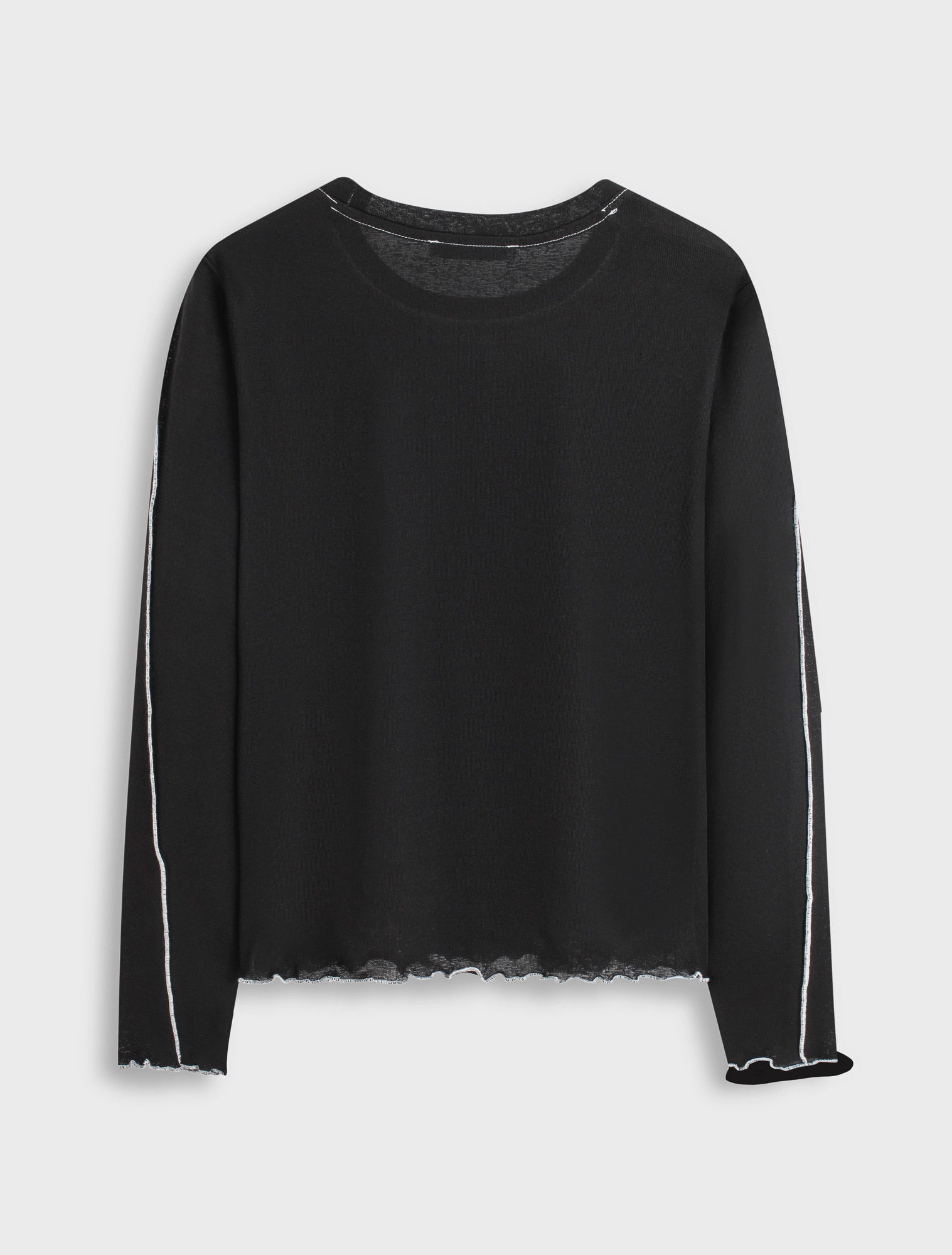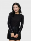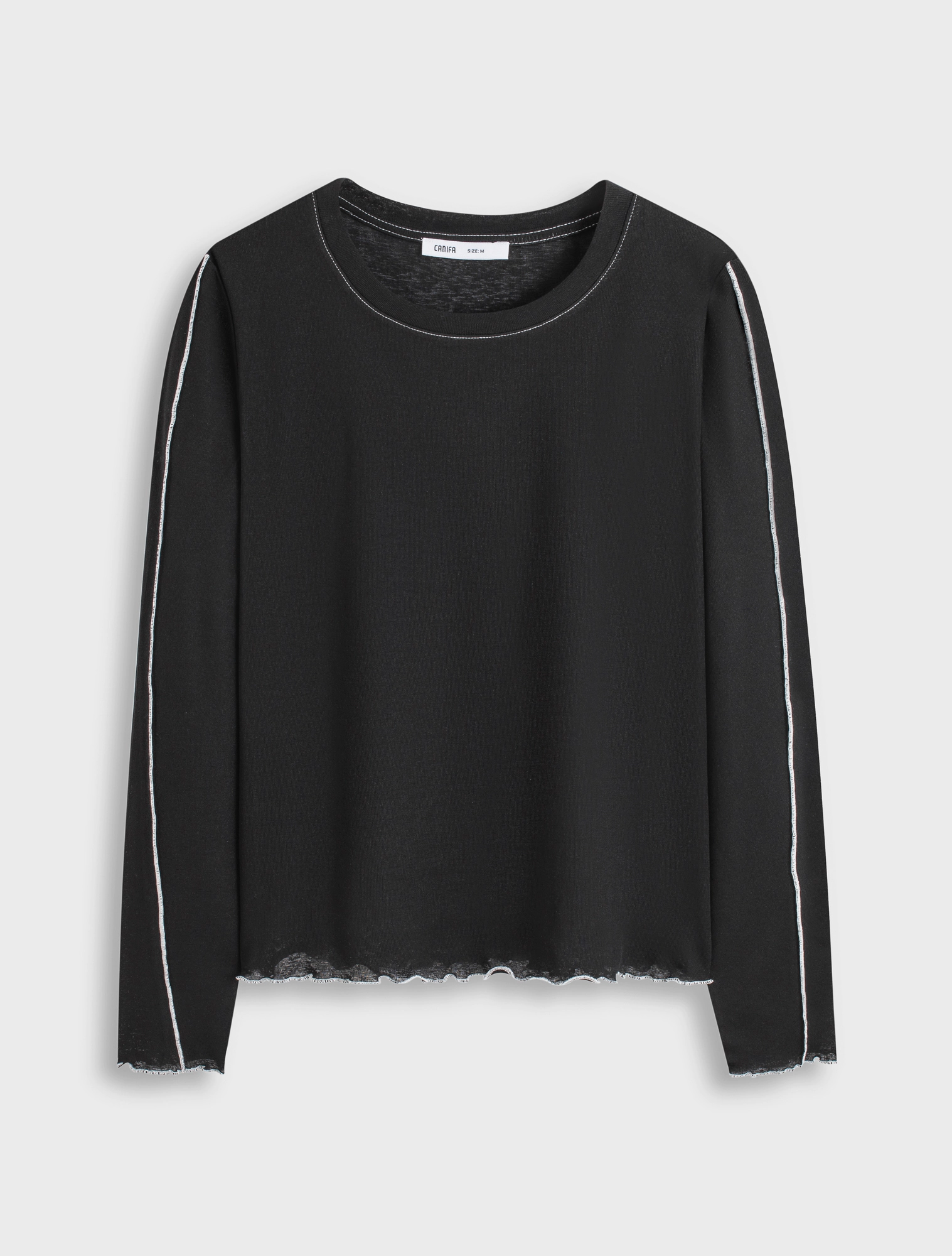 Áo phông nữ cổ tròn thiết kế cách điệu với các đường gân nổi, chất liệu vải khô thoáng, kiểu cách thời trang.