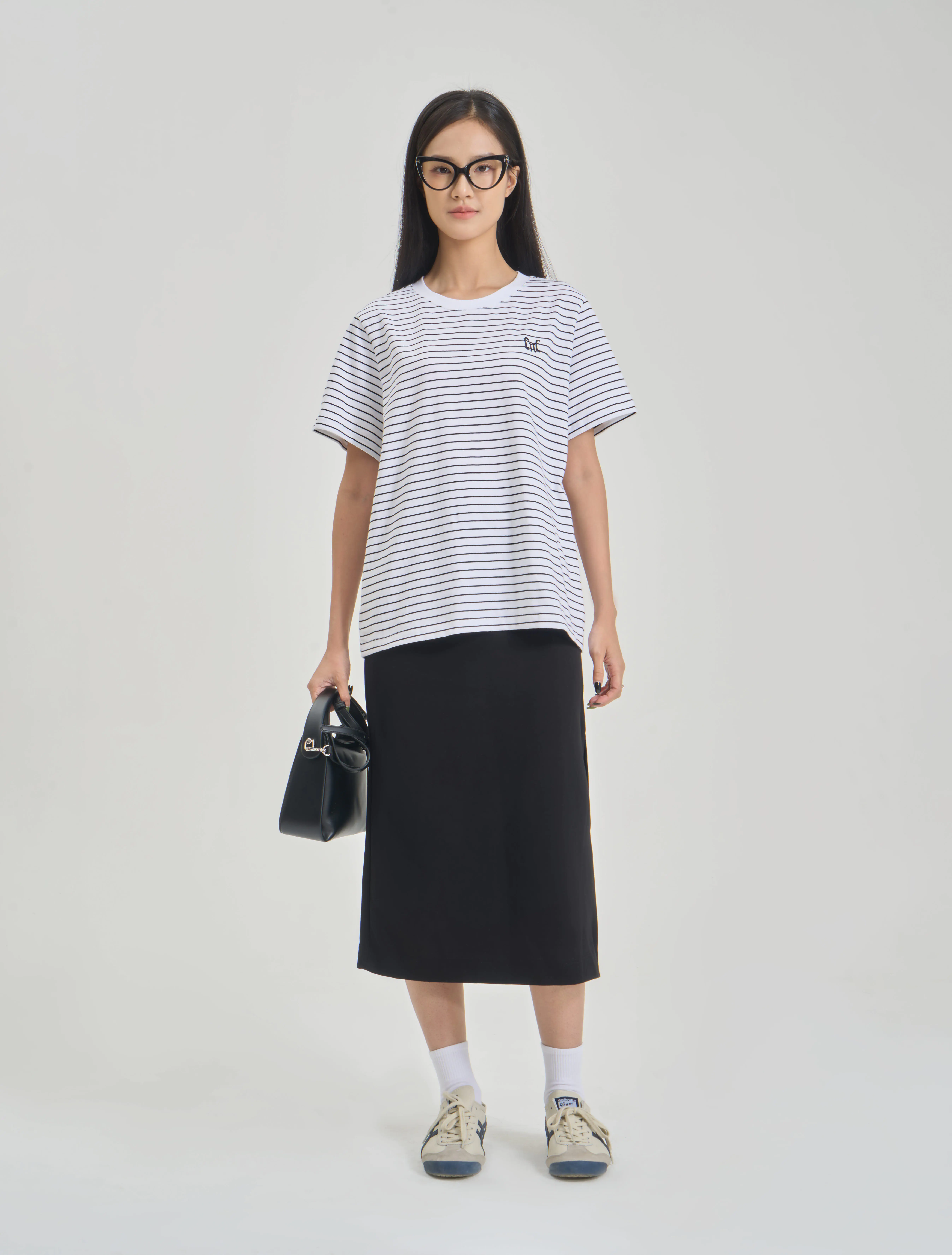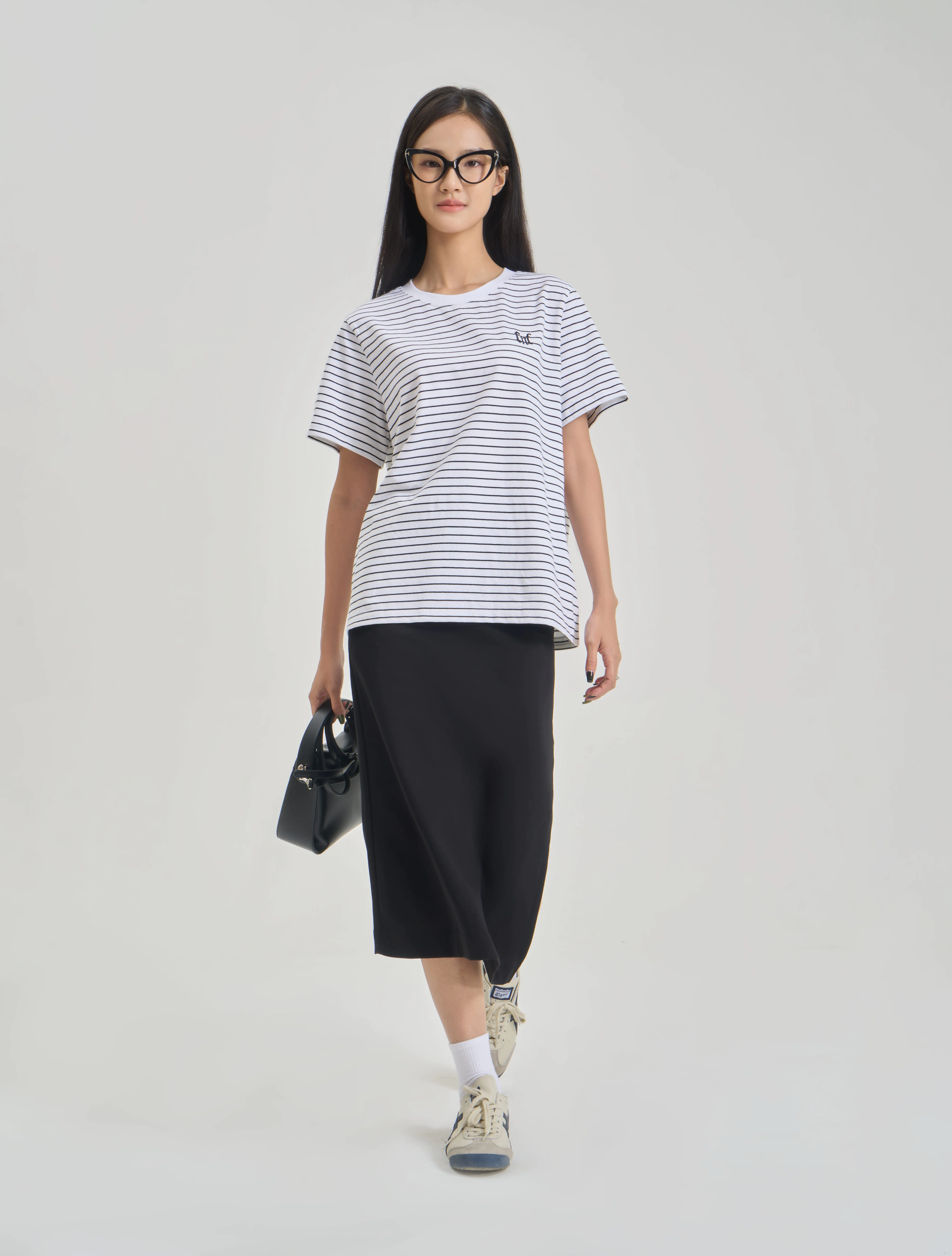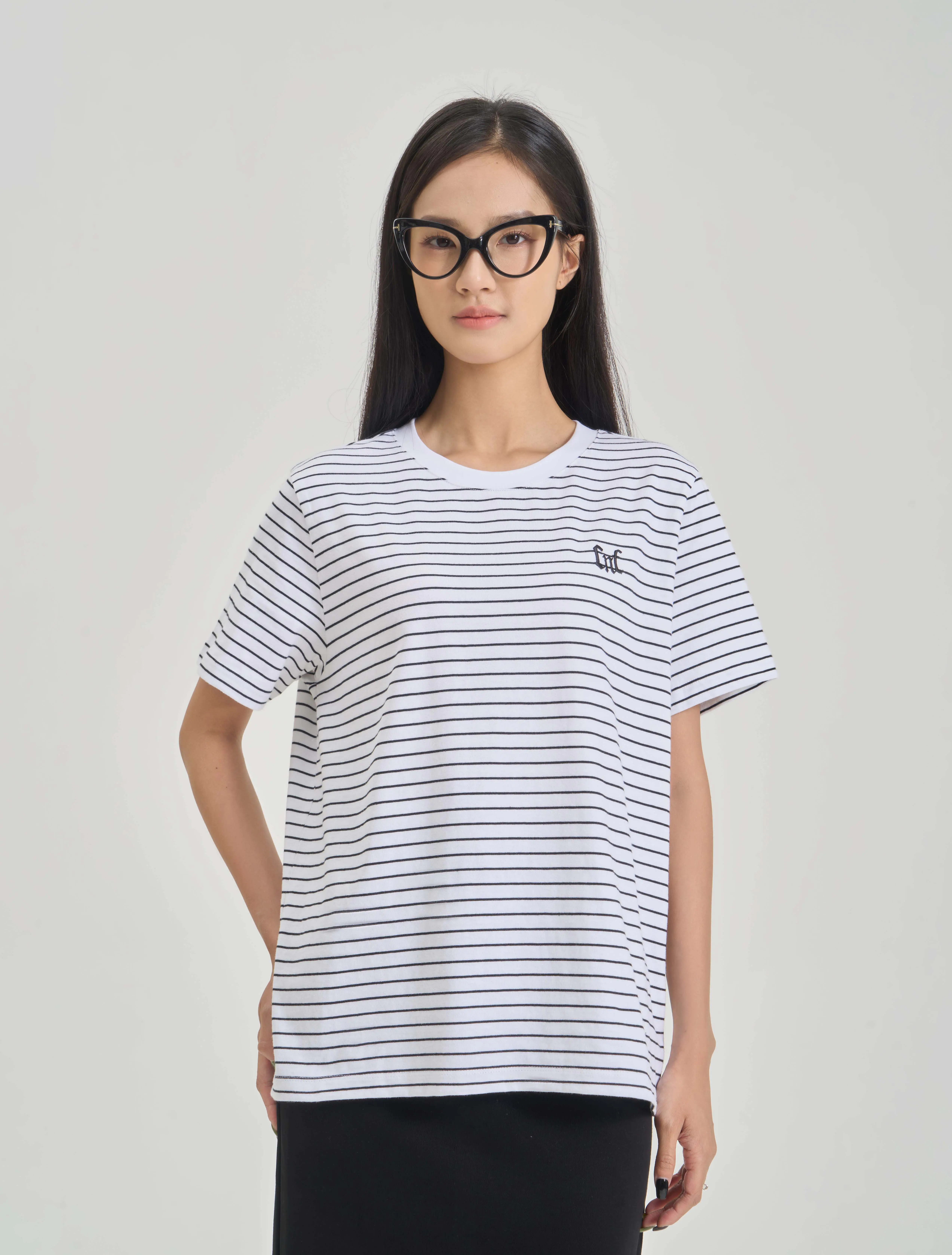 Áo phông nữ kẻ ngang dáng relax, có thêu nhỏ ngực trái.