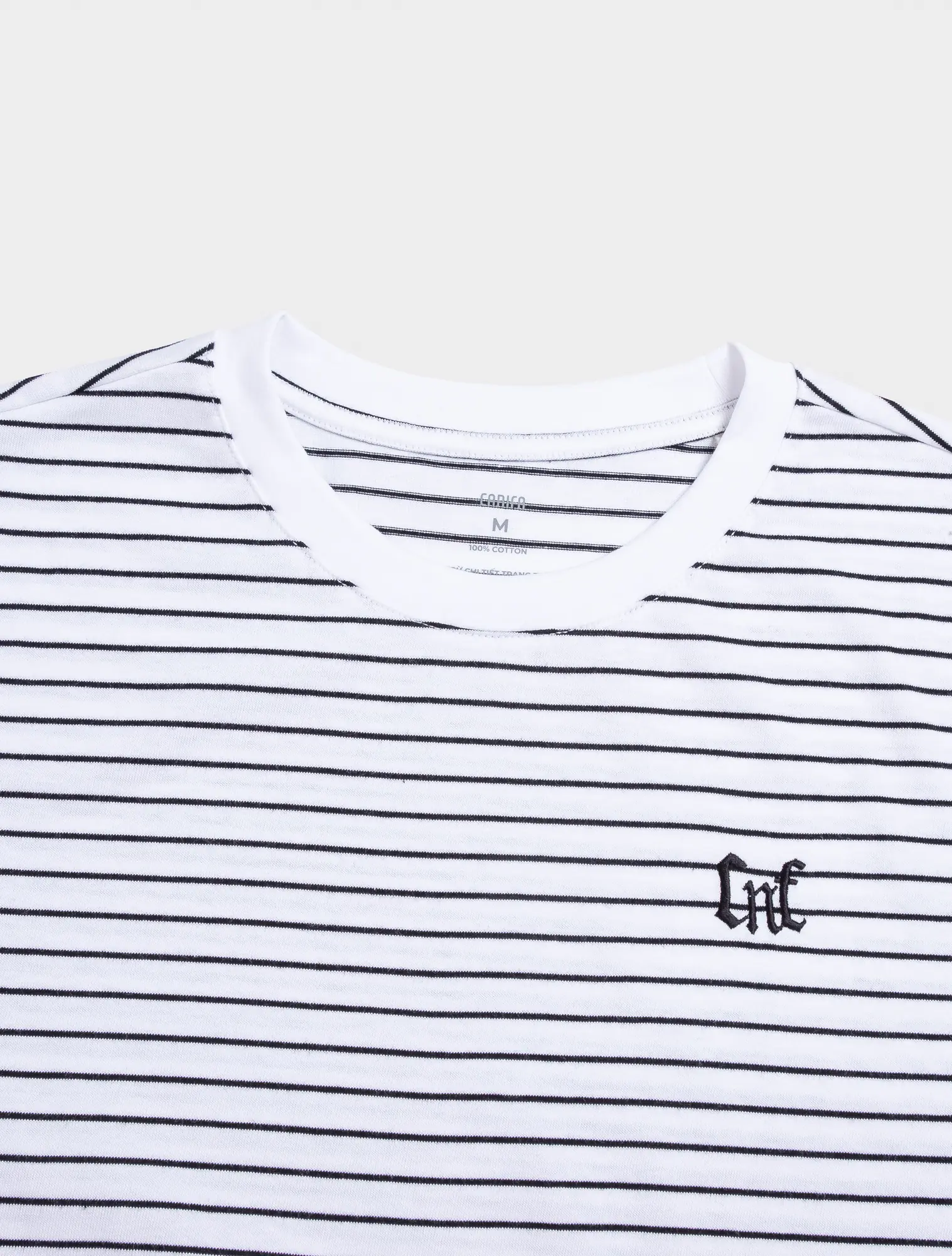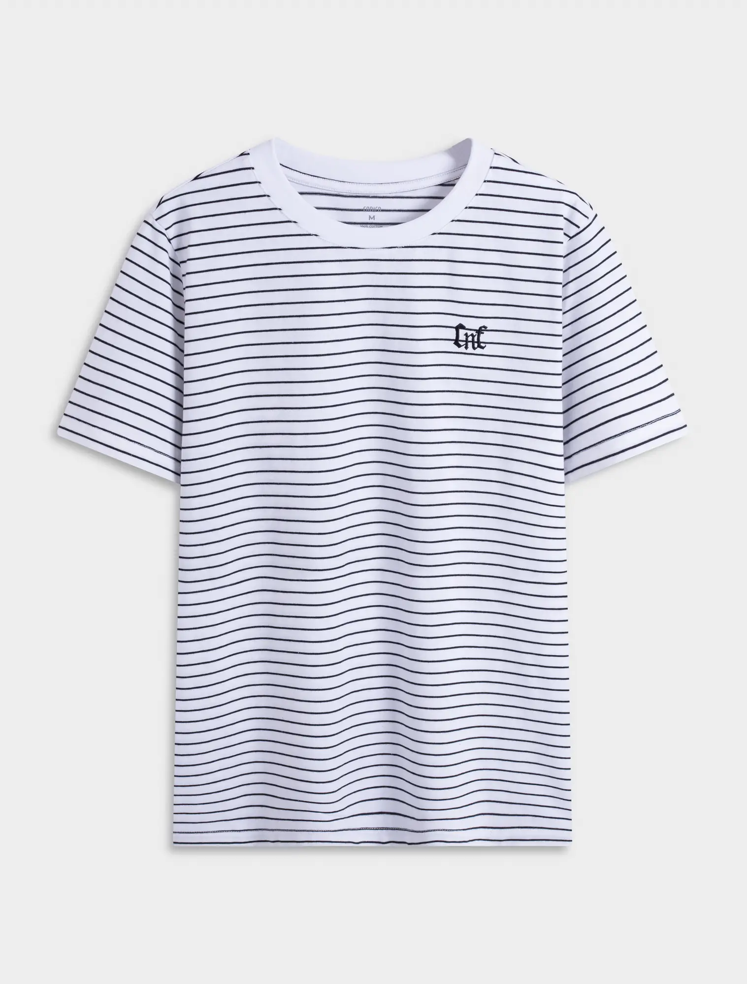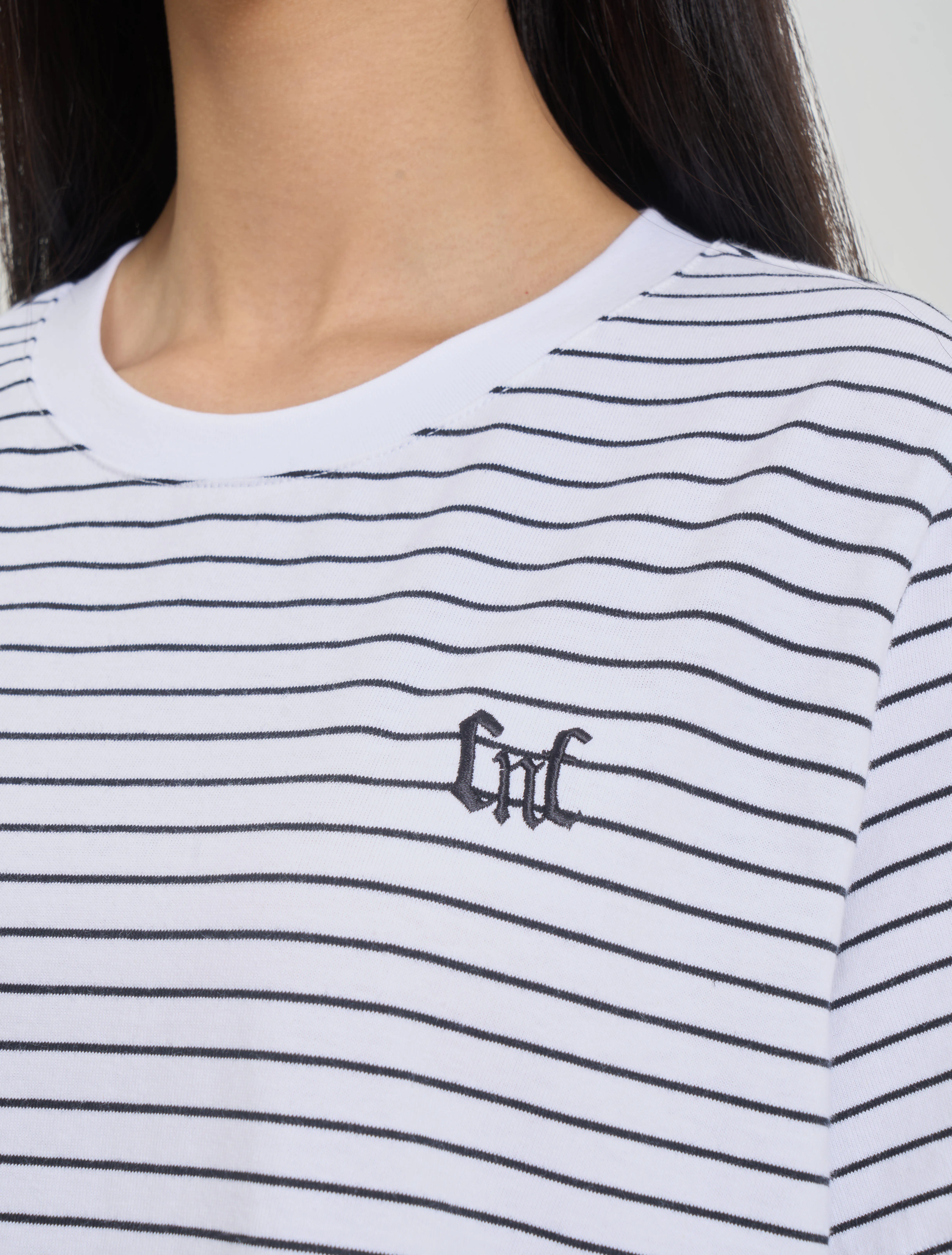 Áo phông nữ kẻ ngang dáng relax, có thêu nhỏ ngực trái.