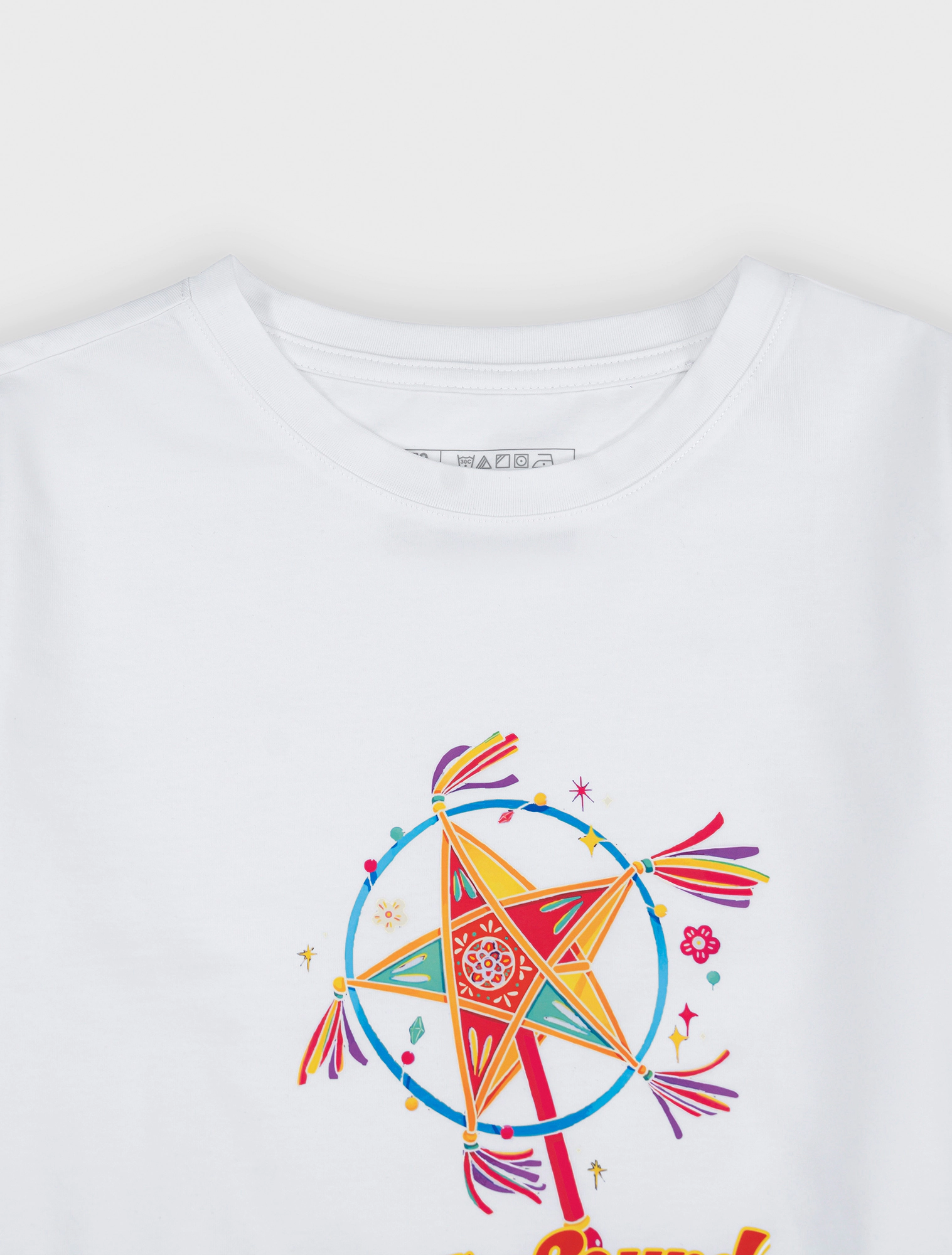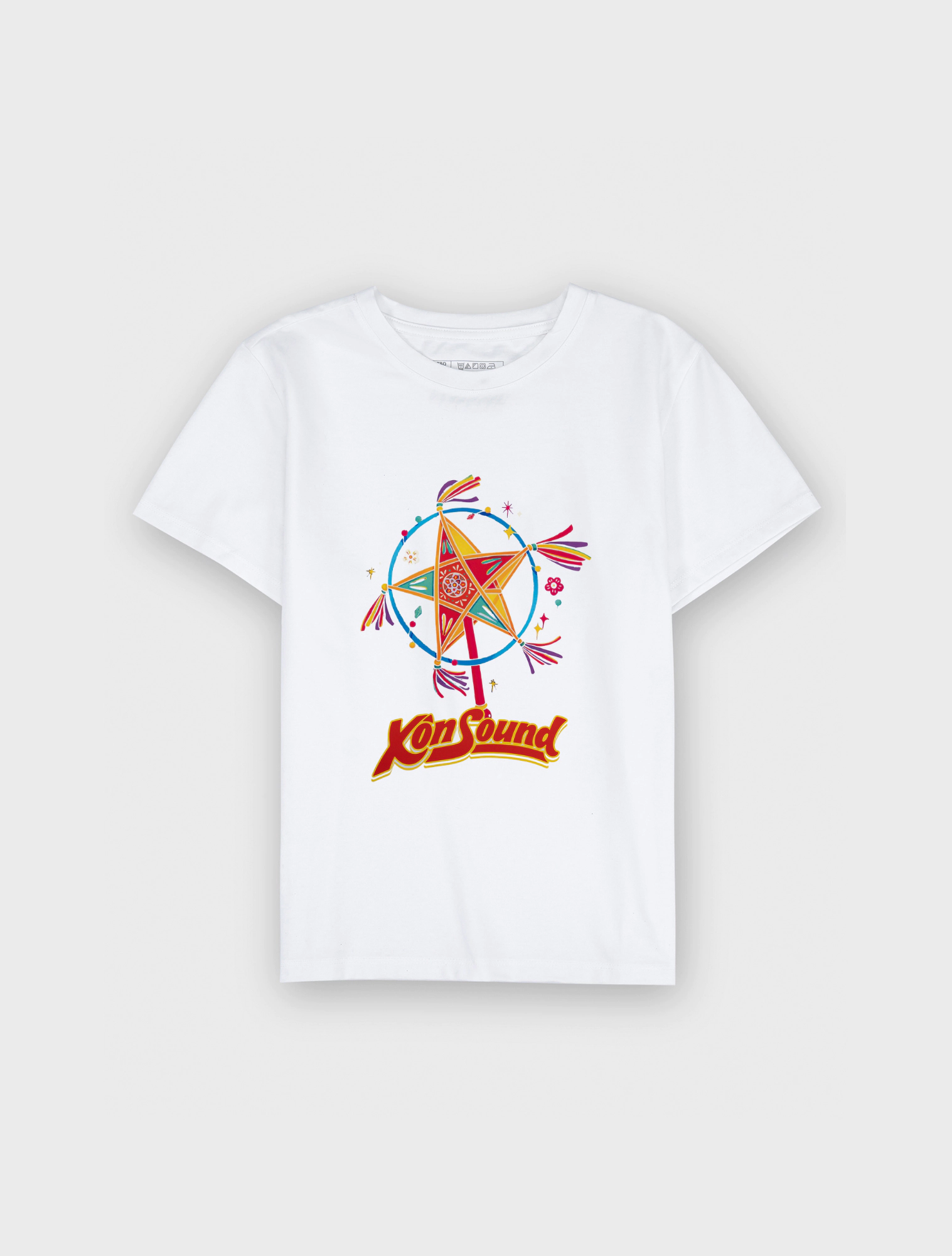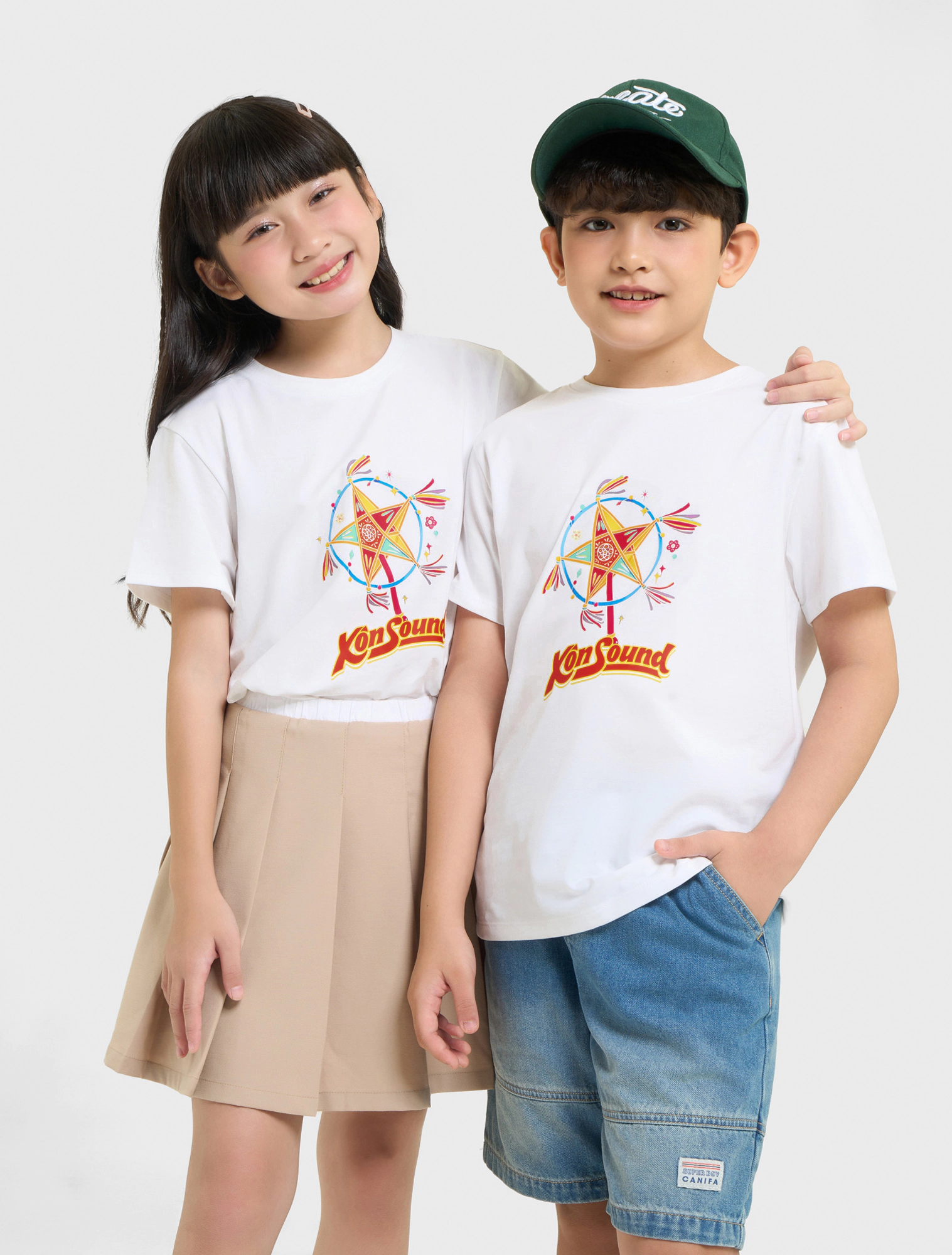 Áo phông lấy cảm hứng từ những hình ảnh quen thuộc mỗi mùa Trung Thu từ trống lân, chú nghê, đèn ông sao và ánh trăng rằm, kết hợp cùng lối chơi chữ Việt từ láy, typography ấn tượng, mang đến thiết kế nổi bật, mới mẻ.