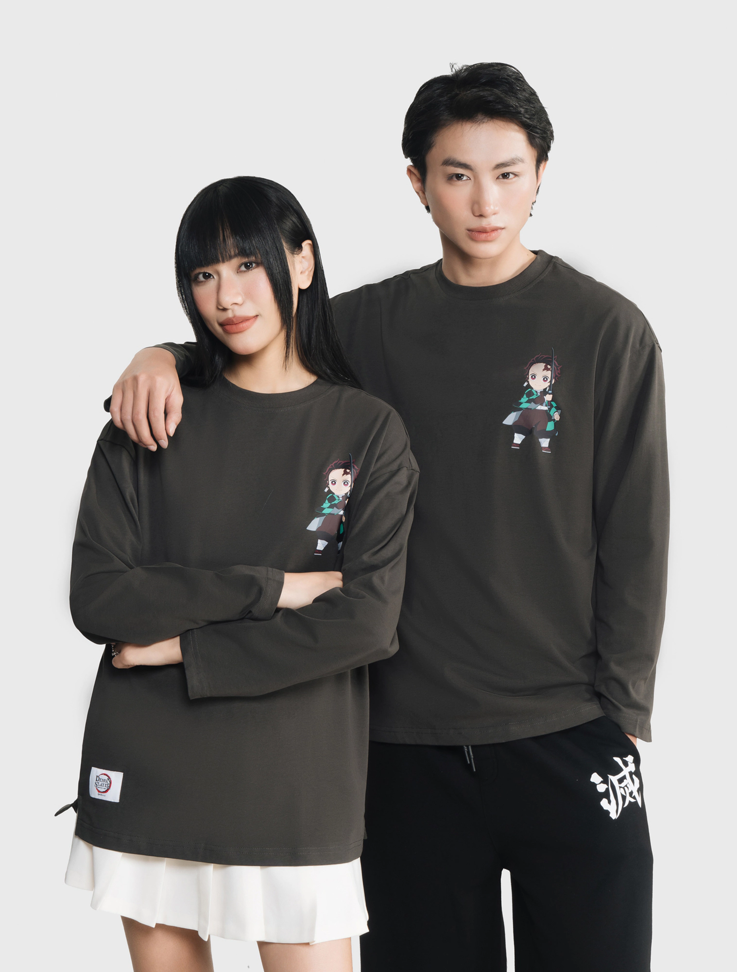 Áo phông unisex người lớn. Phom áo cơ bản cổ tròn dễ mặc. Màu sắc trung tính phù hợp cả nam và nữ. HÌnh in Demon Slayer. Chất liệu 100% Cotton mềm mại.