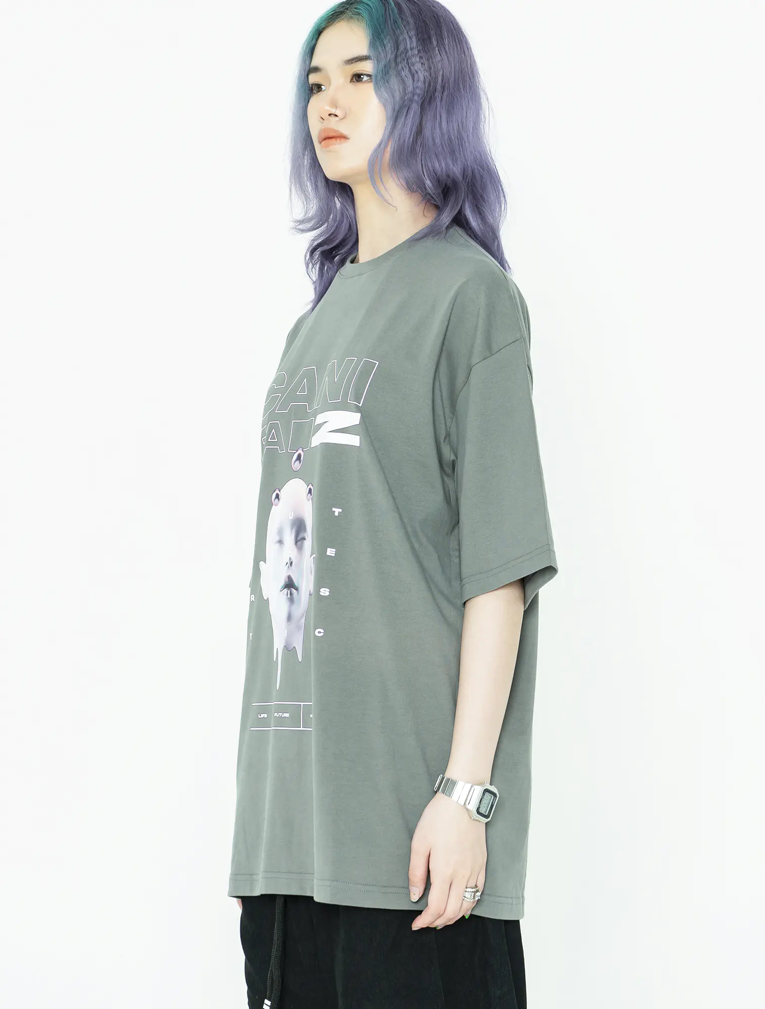 Áo phông ngắn tay oversize thuộc bộ sưu tập hình in chủ đề Metaverse.