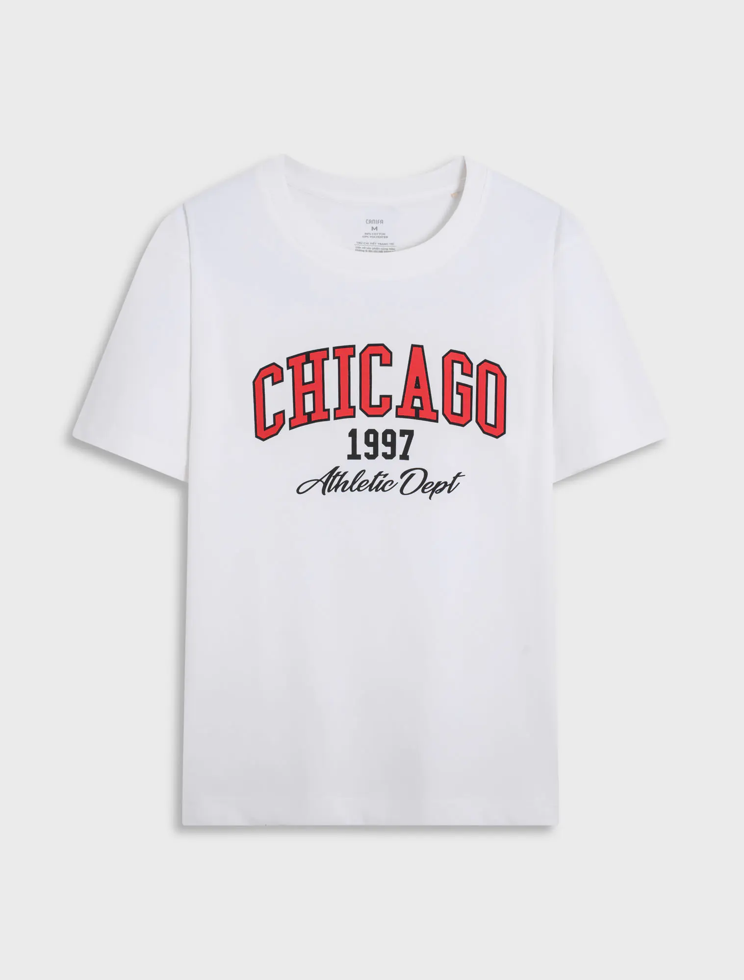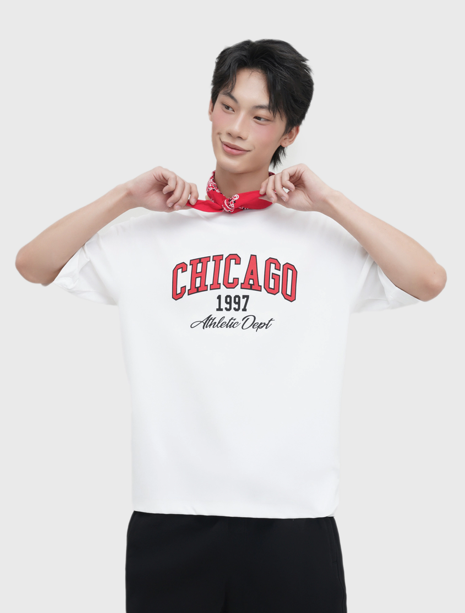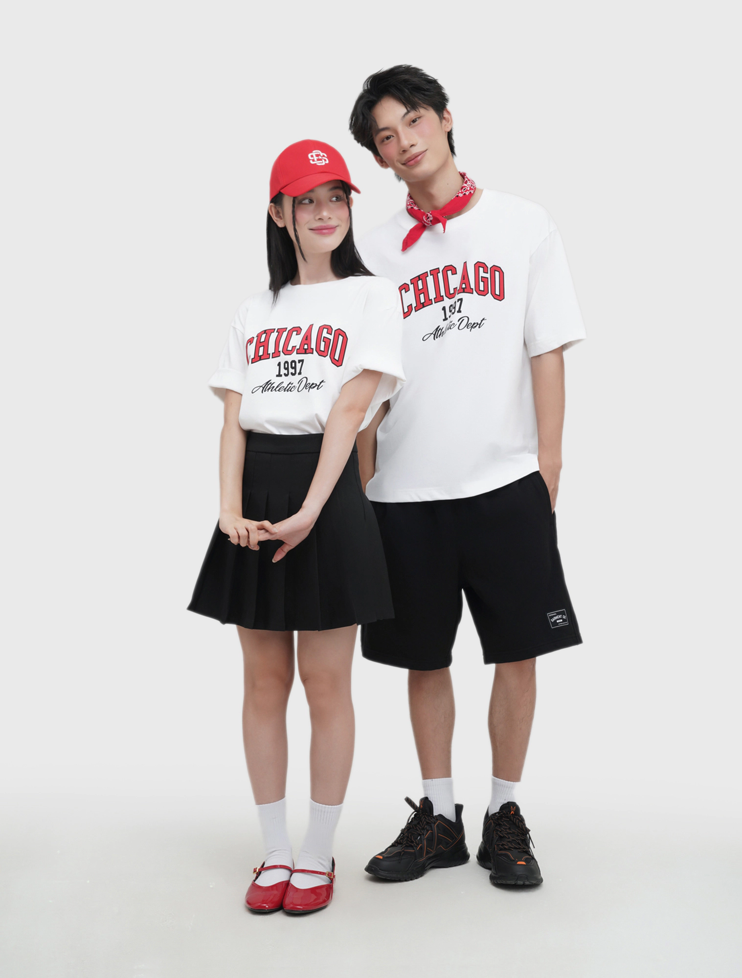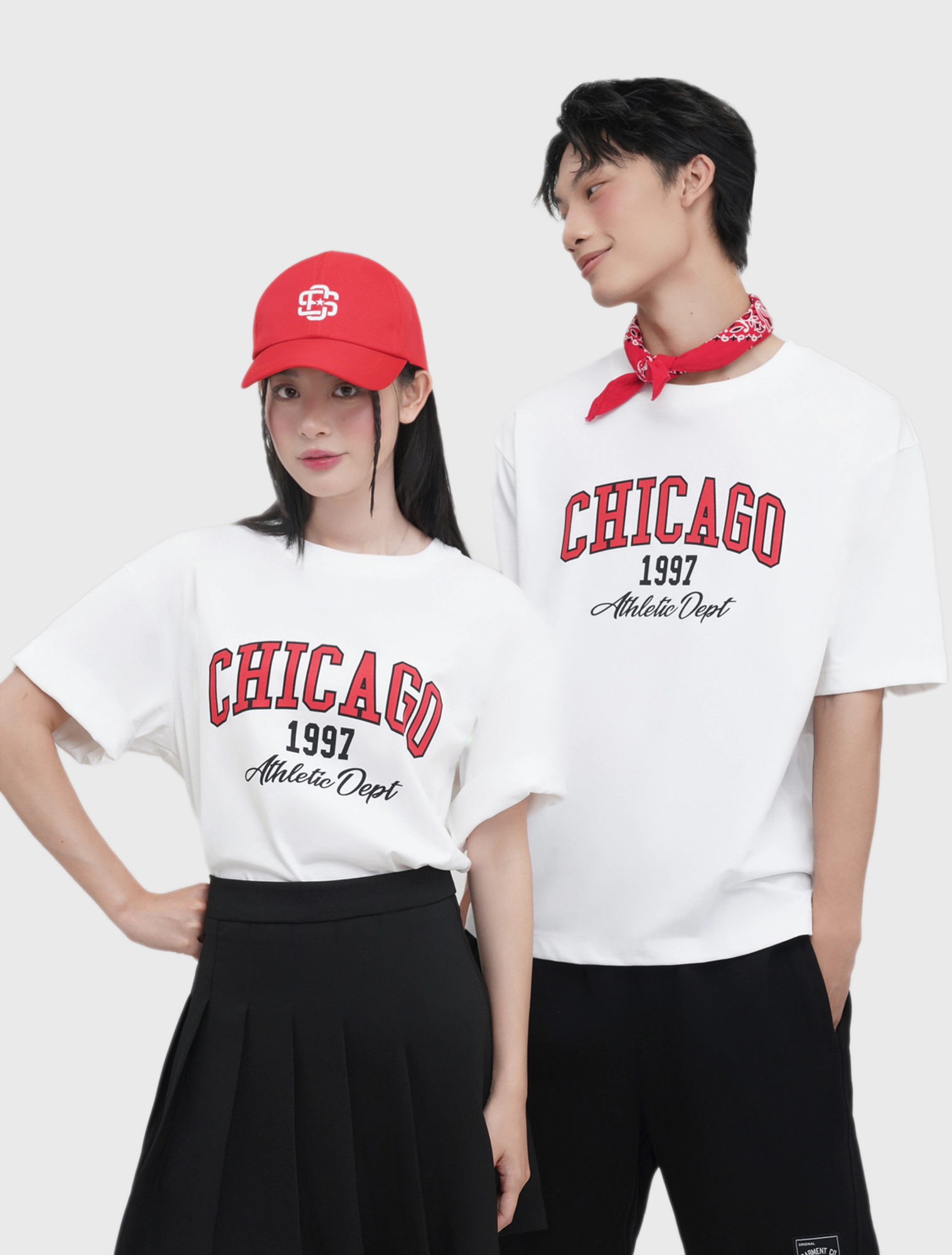 Áo phông unisex người lớn in chữ, chất liệu cotton thoáng mát.