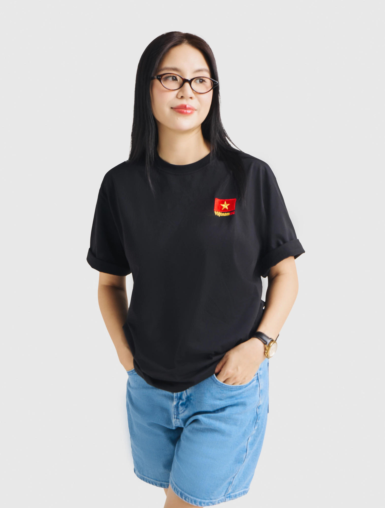 Áo phông unisex người lớn thêu họa tiết Cờ đỏ Sao Vàng