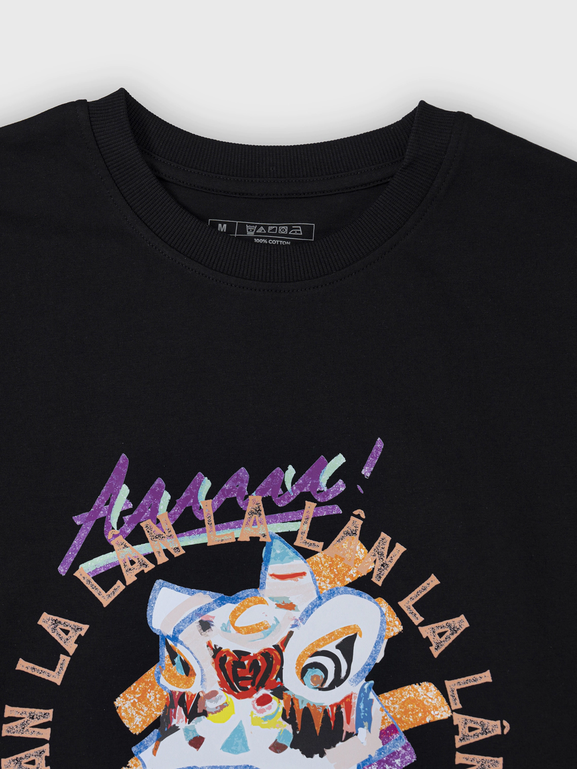 Áo phông lấy cảm hứng từ những hình ảnh quen thuộc mỗi mùa Trung Thu từ trống lân, chú nghê, đèn ông sao và ánh trăng rằm, kết hợp cùng lối chơi chữ Việt từ láy, typography ấn tượng, mang đến thiết kế nổi bật, mới mẻ phù hợp với giới trẻ.