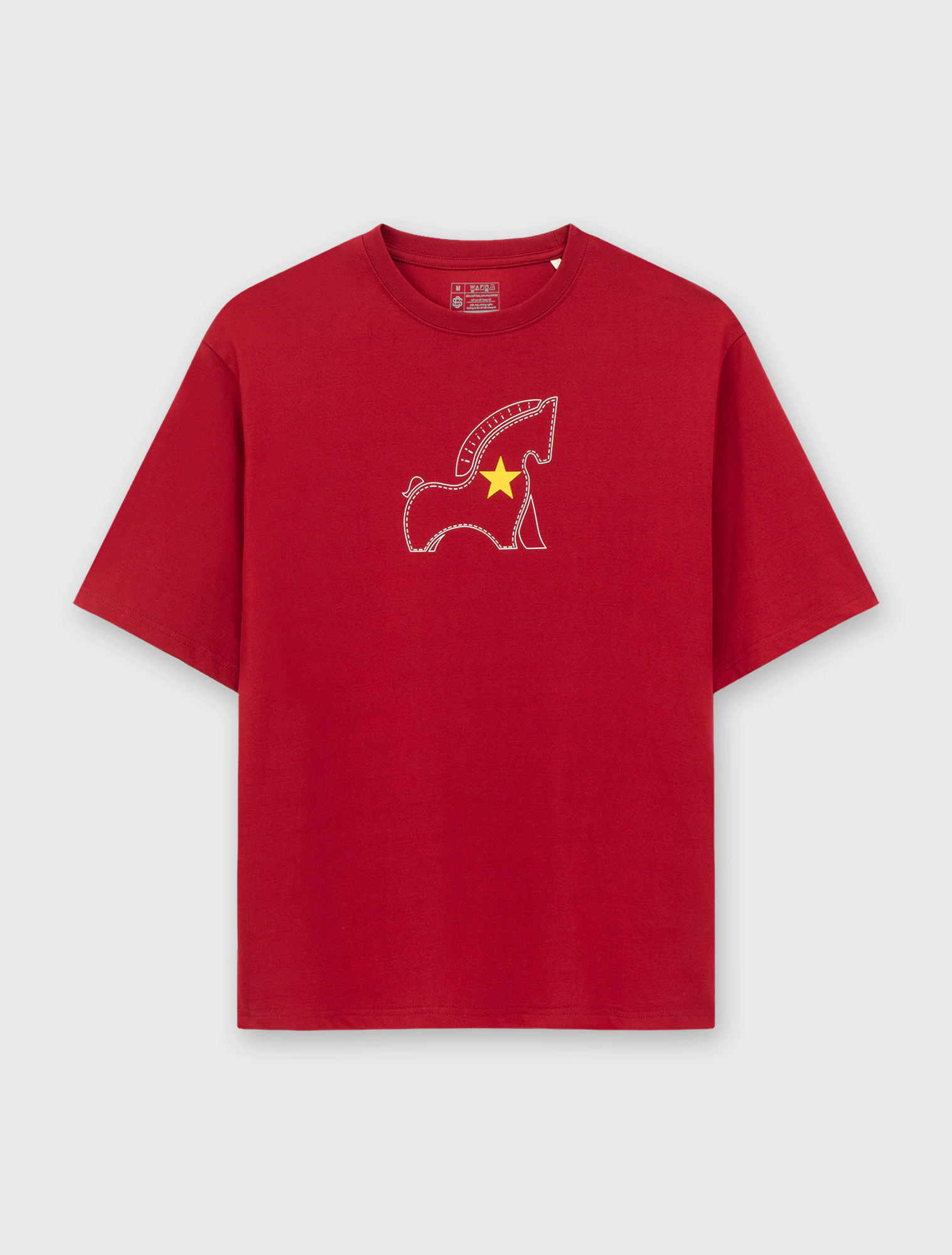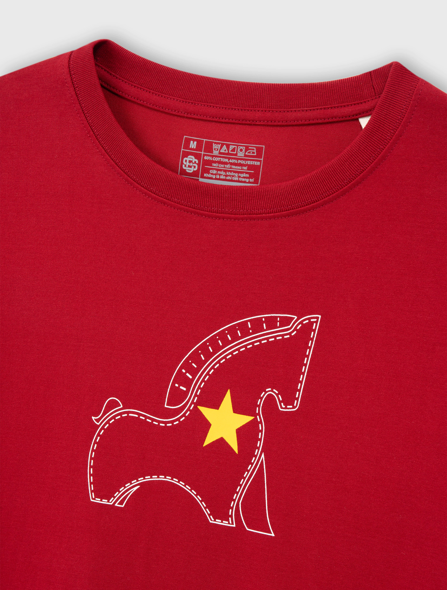 Áo thun graphic Ngọ Nghiêng mang tinh thần vui tươi, hiện đại của Tết, lấy cảm hứng từ hình tượng con ngựa trong văn hóa Việt. Chất liệu cotton CVC 220gsm mềm mại, thoáng mát, form relaxed dễ mặc cho nhiều dáng người. Họa tiết in pet sắc nét, màu sắc nổi bật nhưng hài hòa, phù hợp diện du xuân, dạo phố và sử dụng lâu dài sau Tết.
