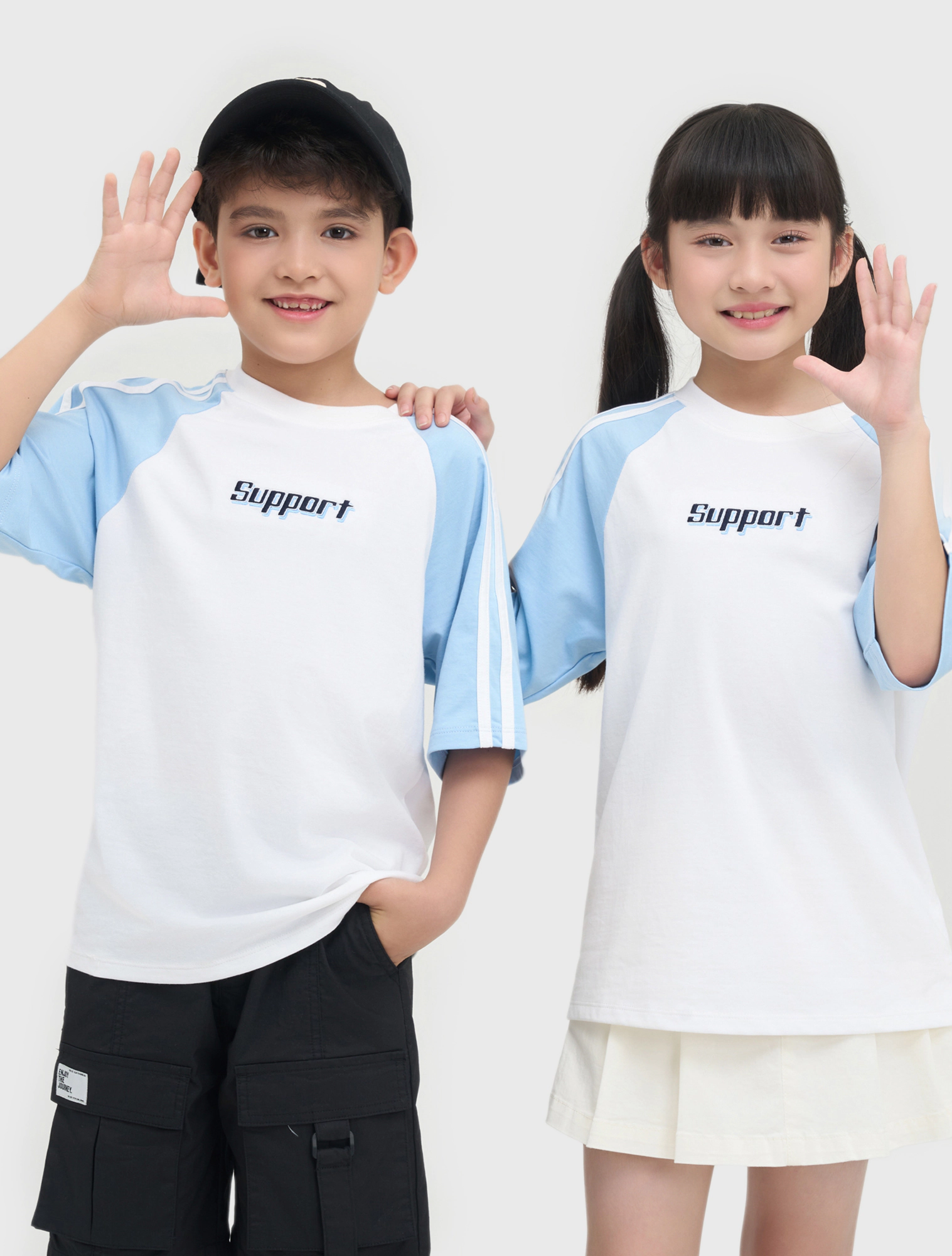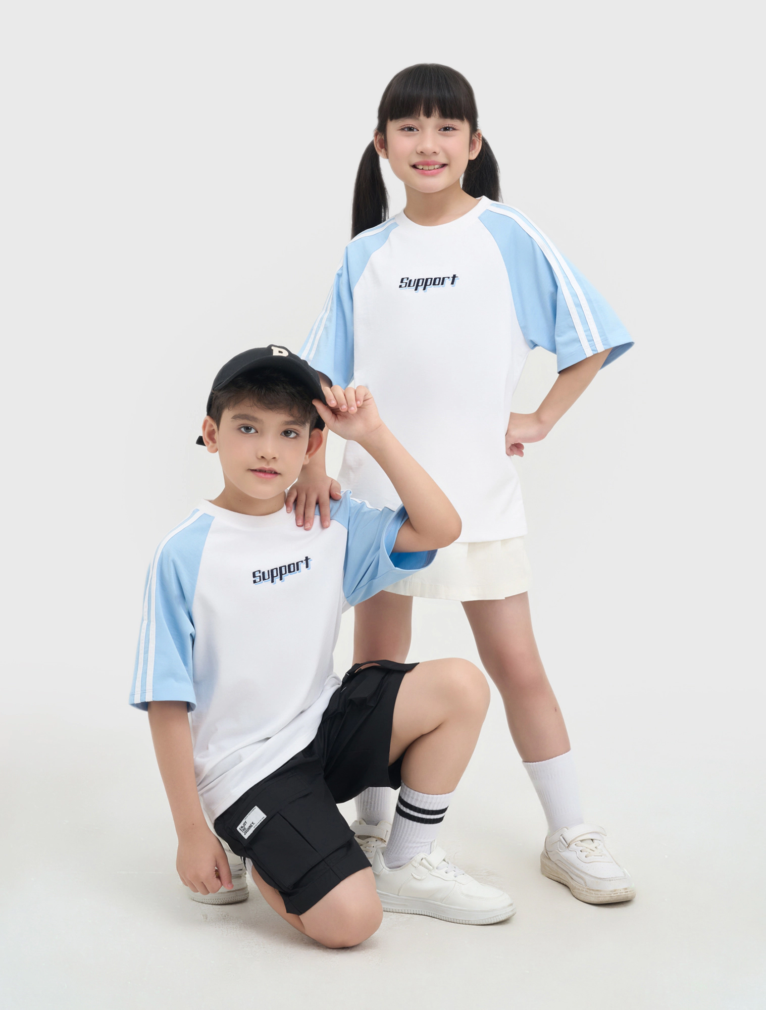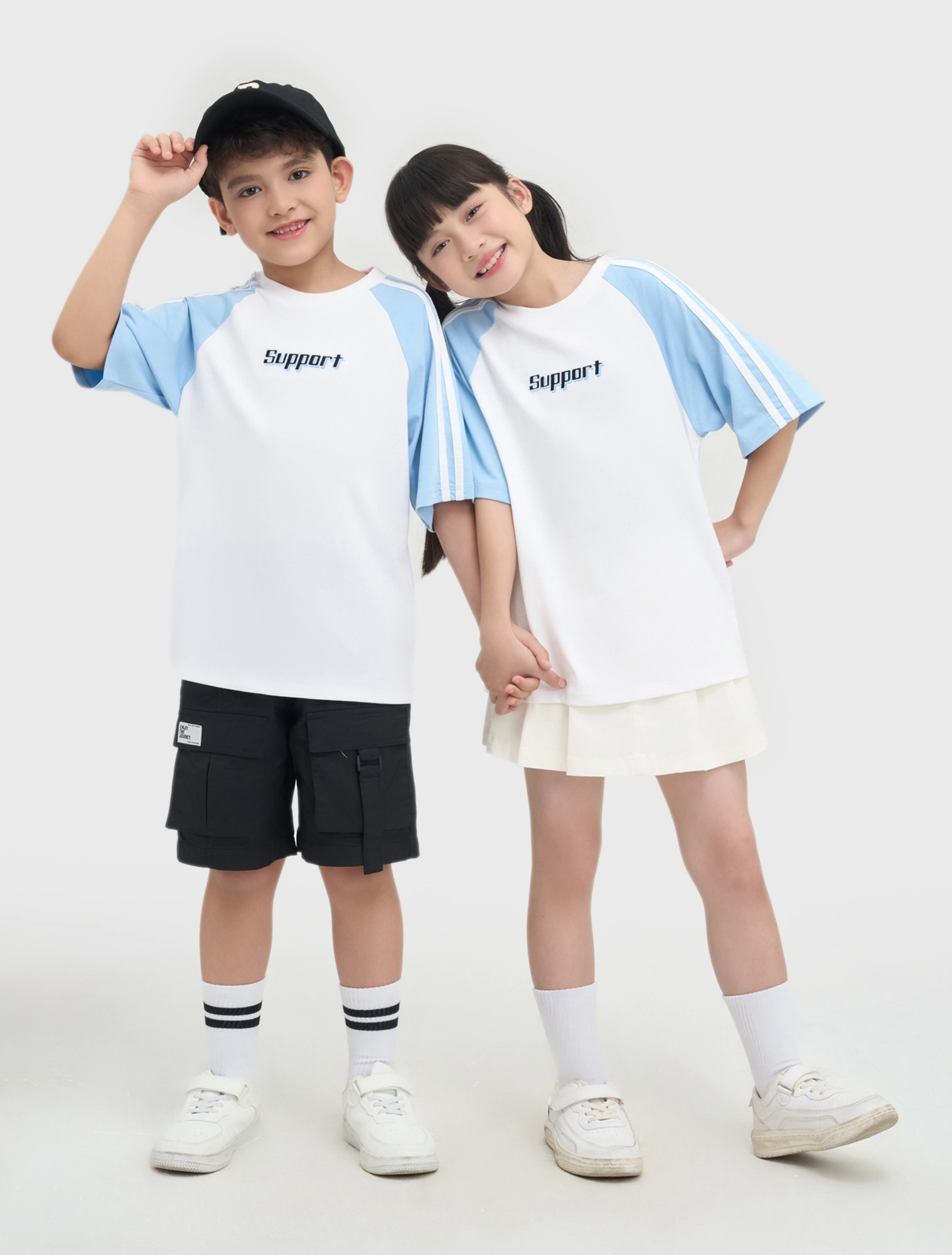 Áo phông unisex trẻ em, chất liệu cotton pha dày dặn đứng phom áo, thoáng mát màu sắc phù hợp cho cả 2 đối tượng cùng sử dụng.