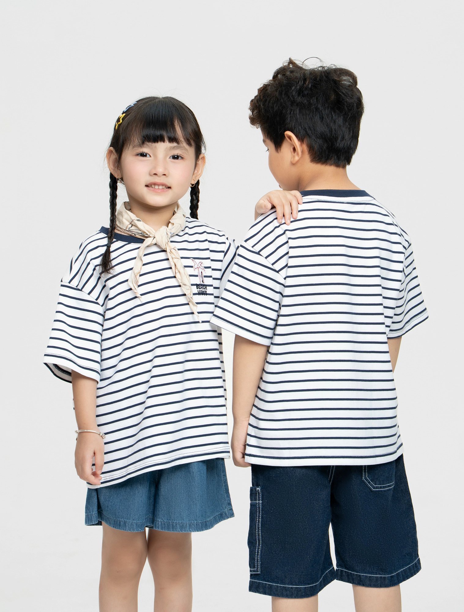 Áo phông kẻ ngang dành cho bé trai và bé gái, chất liệu cotton mềm mại thoáng mát, áo có thể mặc cả gia đình phù hợp cho những chuyến đi chơi dã ngoại.