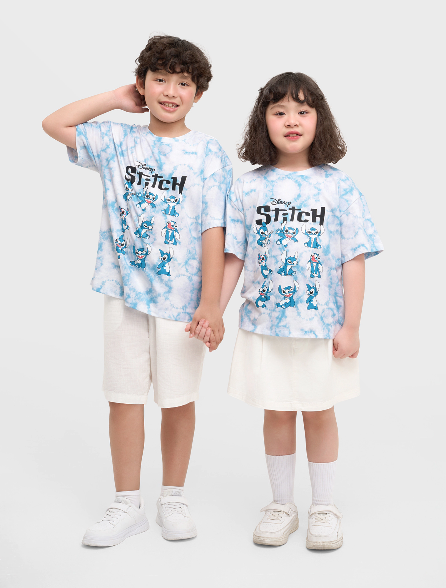 Áo phông unisex trẻ em in hình nhân vật stich ngộ nghĩnh, màu sắc tươi tắn, phom dáng ragular thoải mái, chất liệu cotton phù hợp cho sở thích của các bé.