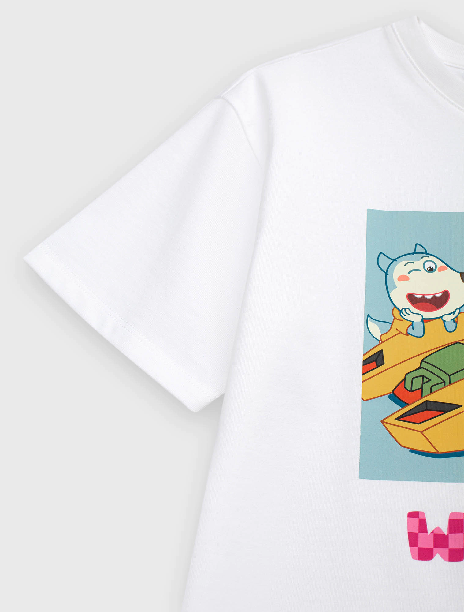 Áo phông unisex trẻ em dáng suông thoải mái, in hình Wolfoo dễ thương.