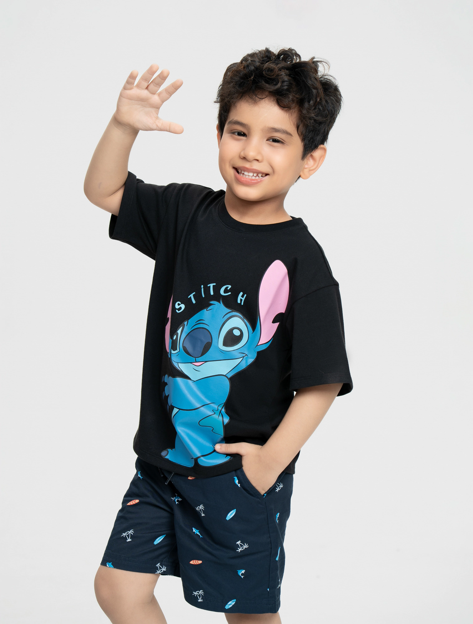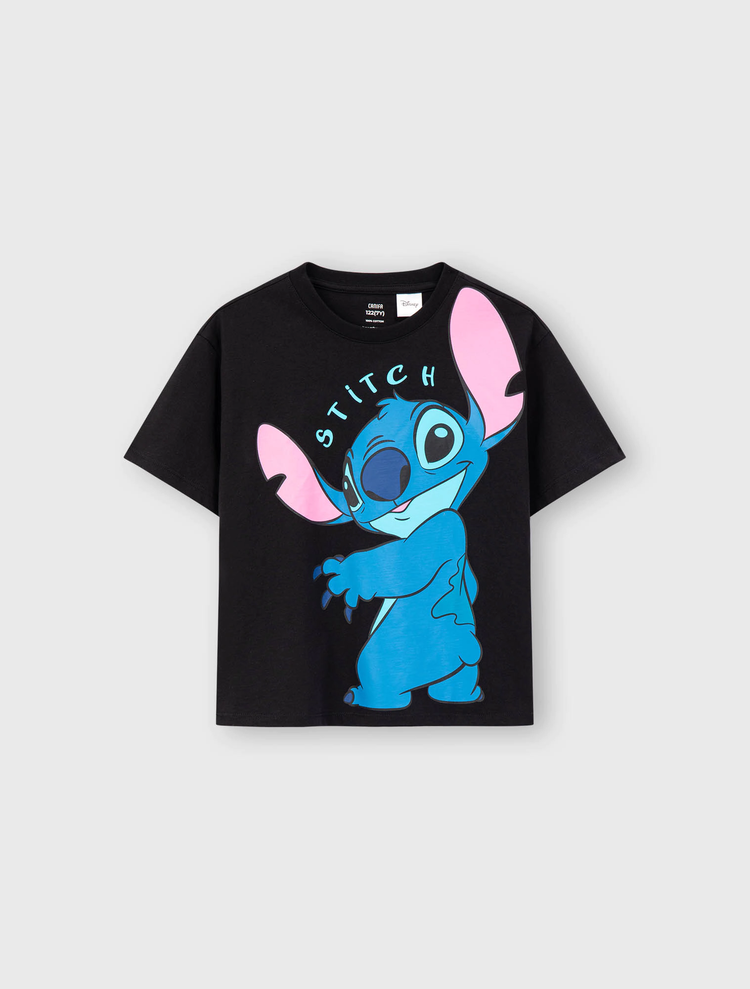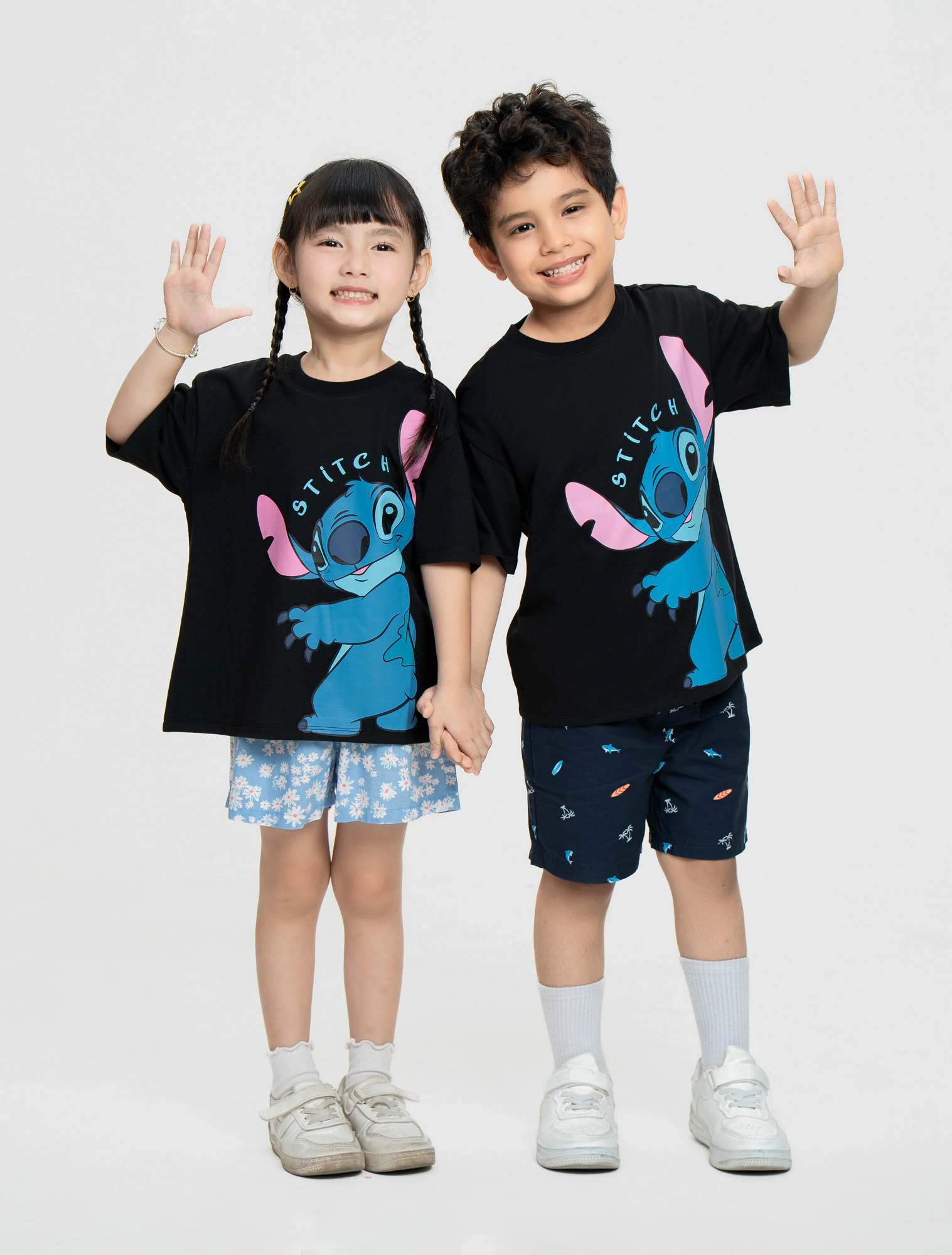Áo phông unisex trẻ em in hình Stitch, chất liệu 100% cotton mềm mại thoáng mát, hình in nhân vật phù hợp với sở thích của các bé.
