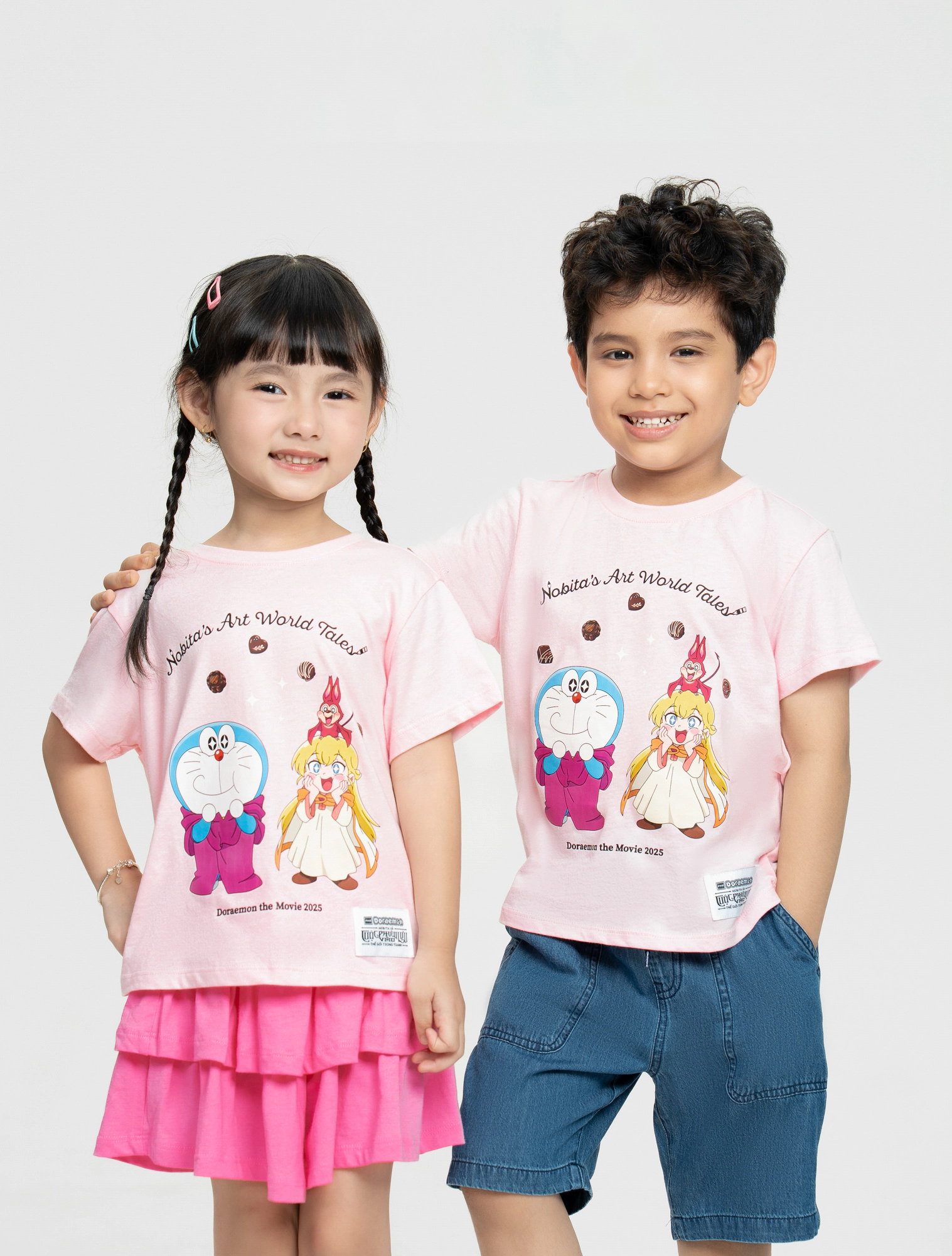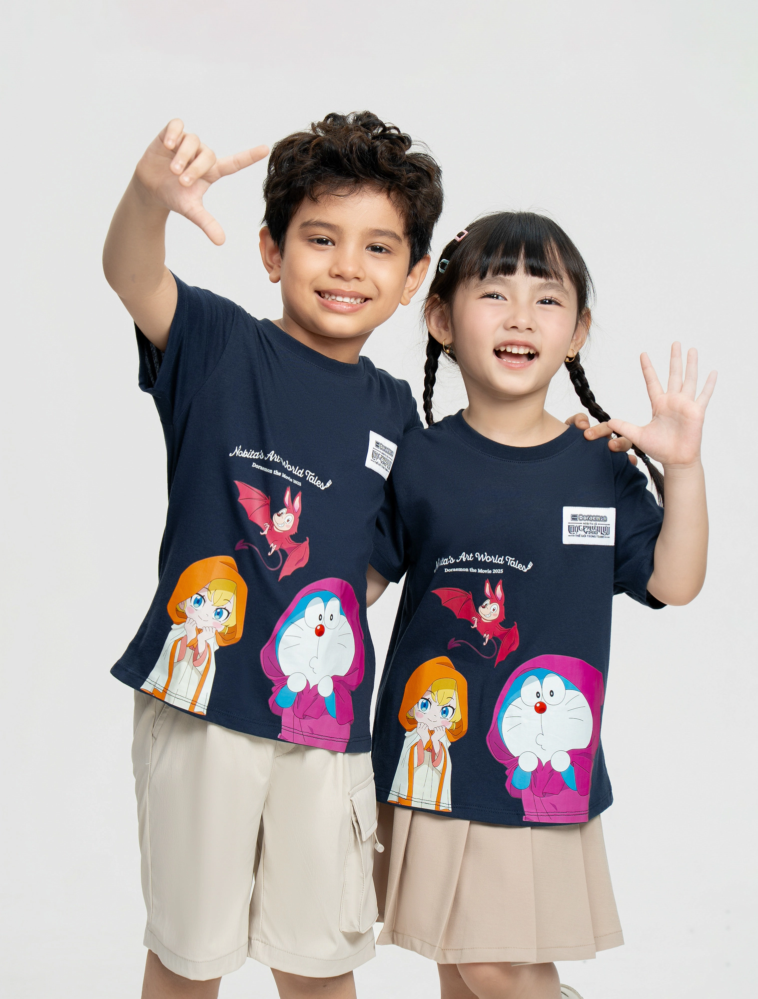 Áo phông unisex dễ thương với hình in Doraemon nổi bật, phù hợp cho cả bé trai lẫn bé gái. Chất liệu cotton mềm mịn, thoáng mát, mang đến cảm giác thoải mái suốt ngày dài vận động. Phom dáng năng động, dễ kết hợp với mọi loại quần soóc hay váy.