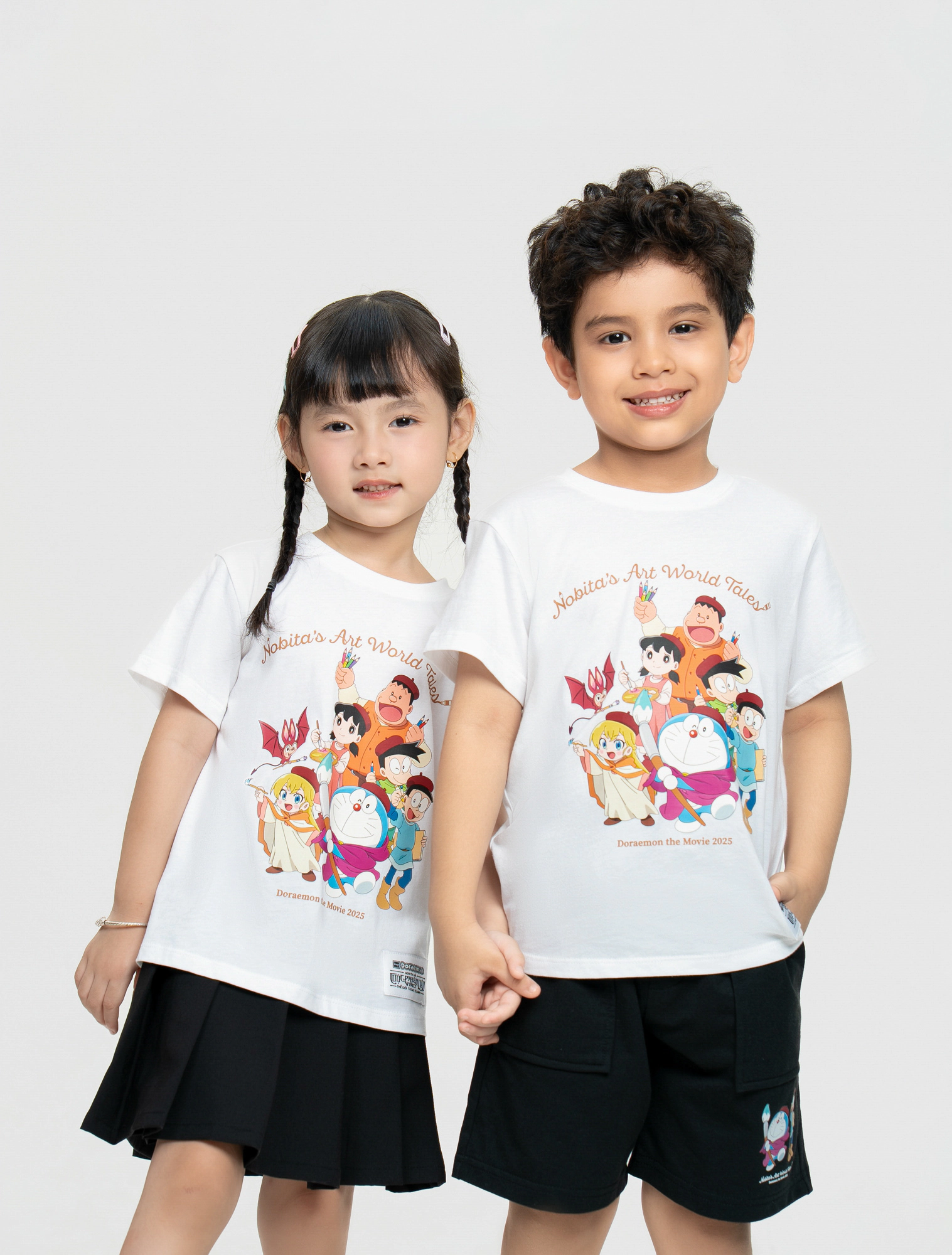 Áo phông unisex dễ thương với hình in Doraemon nổi bật, phù hợp cho cả bé trai lẫn bé gái. Chất liệu cotton mềm mịn, thoáng mát, mang đến cảm giác thoải mái suốt ngày dài vận động. Phom dáng năng động, dễ kết hợp với mọi loại quần soóc hay váy.