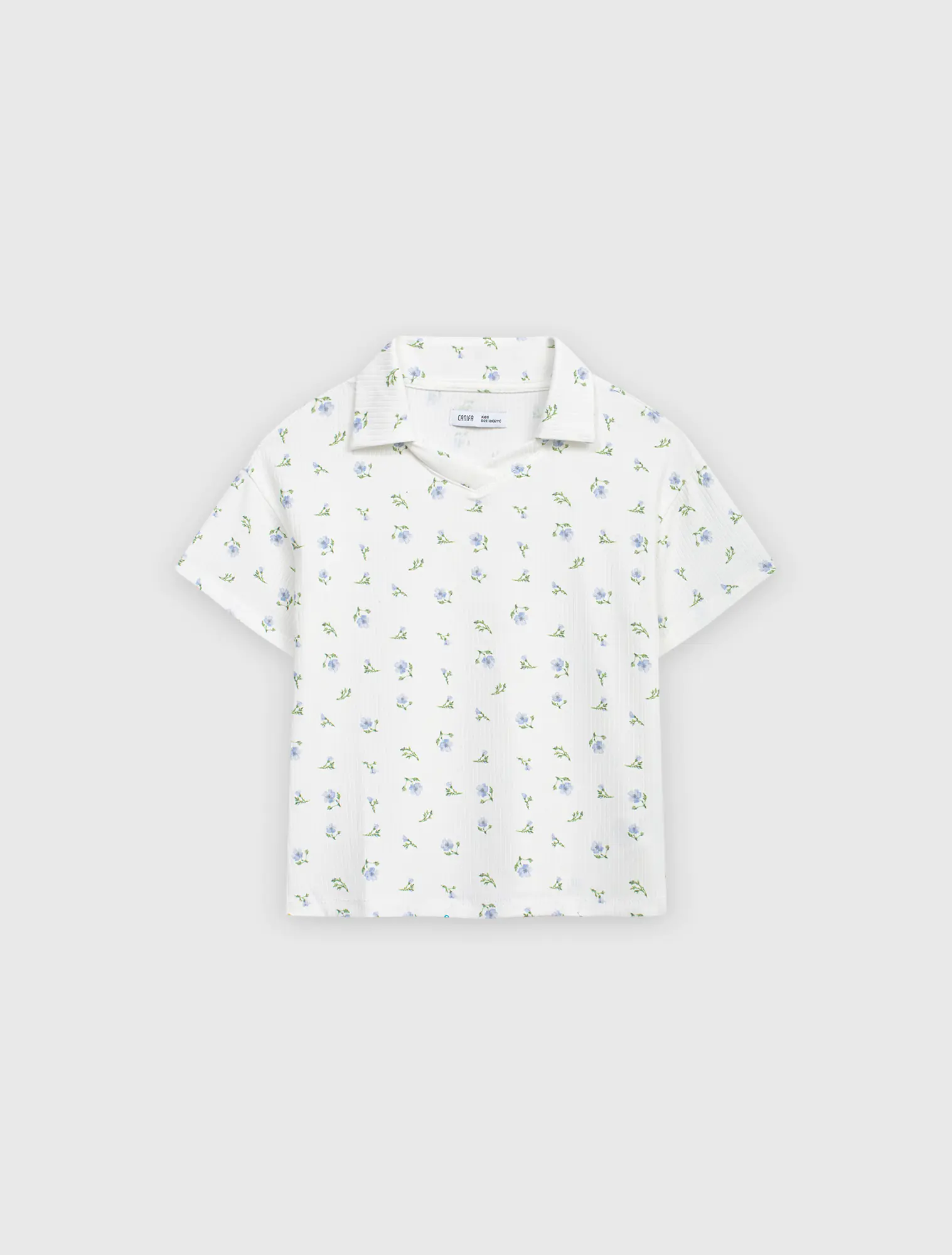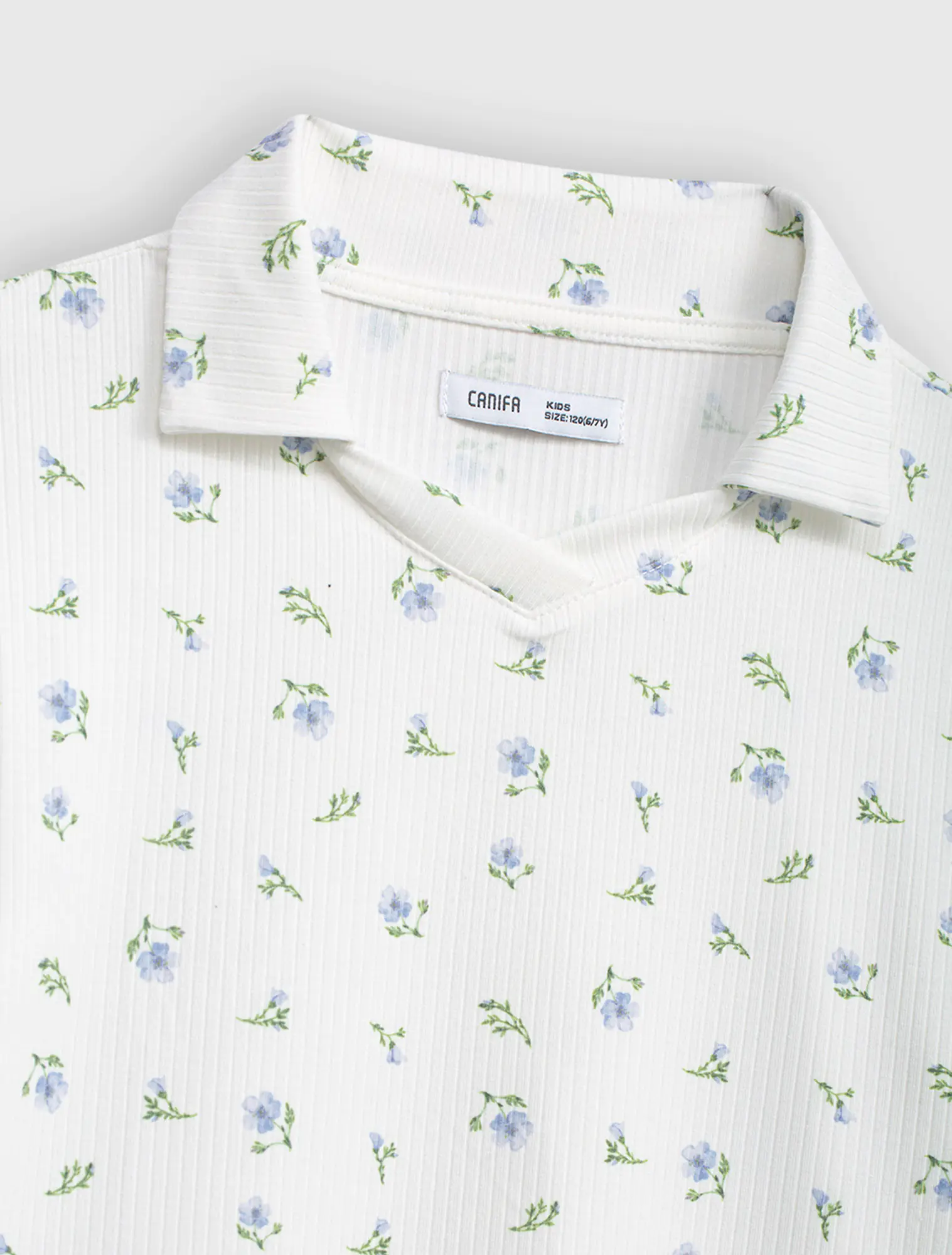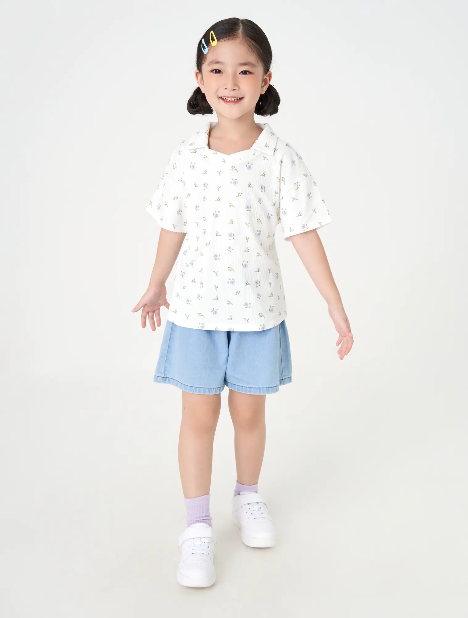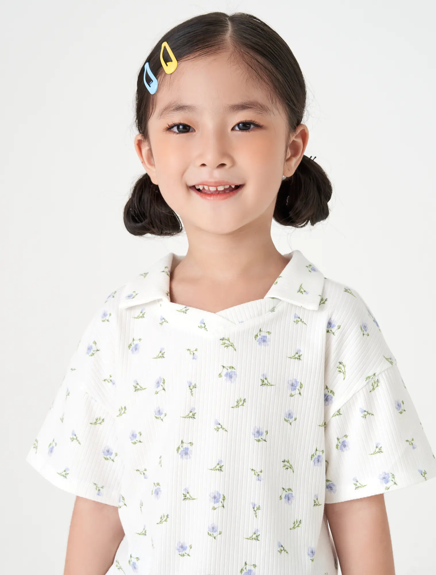 Áo polo bé gái cổ bẻ cộc tay in họa tiết dáng suông