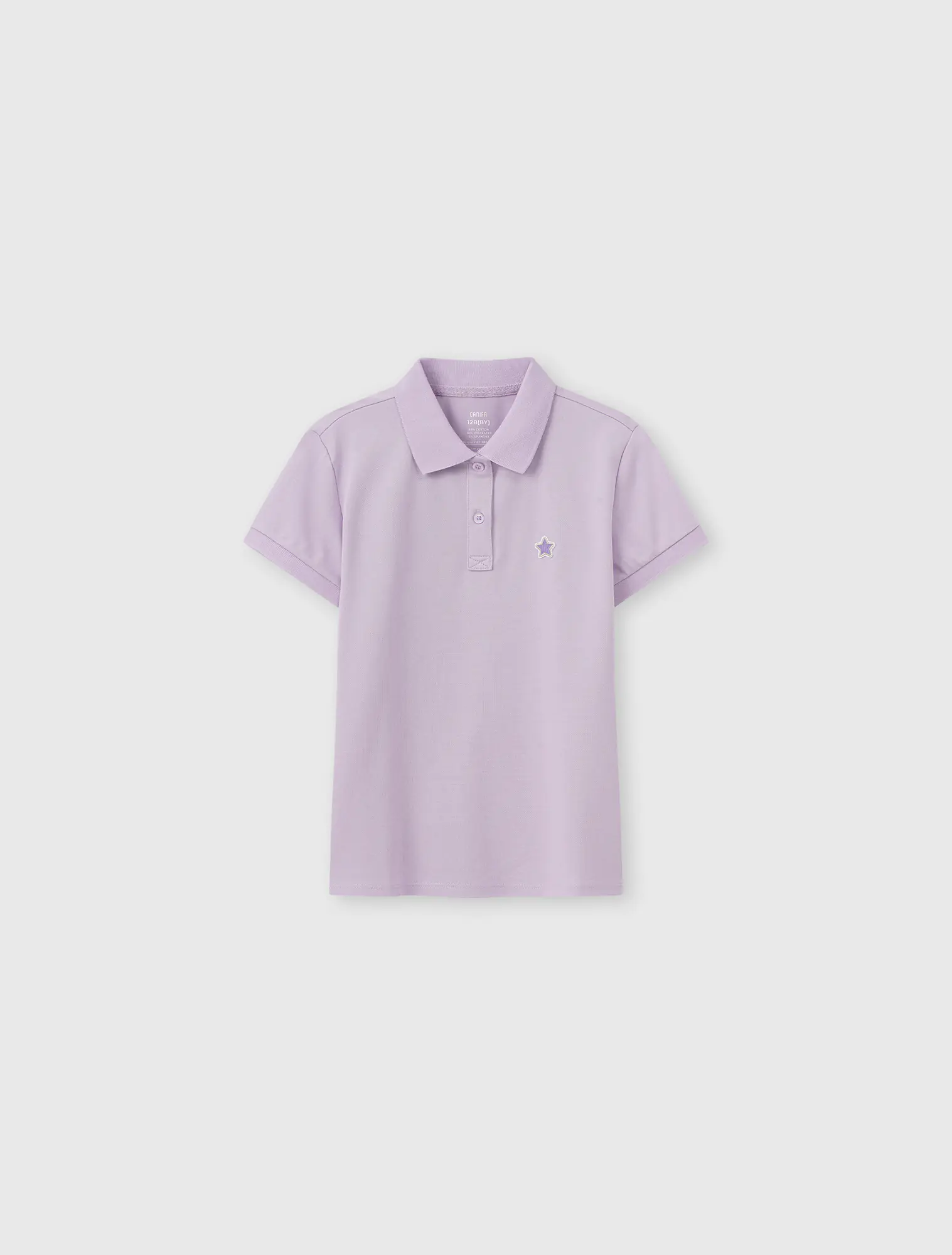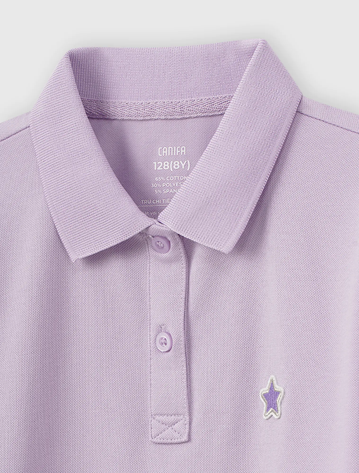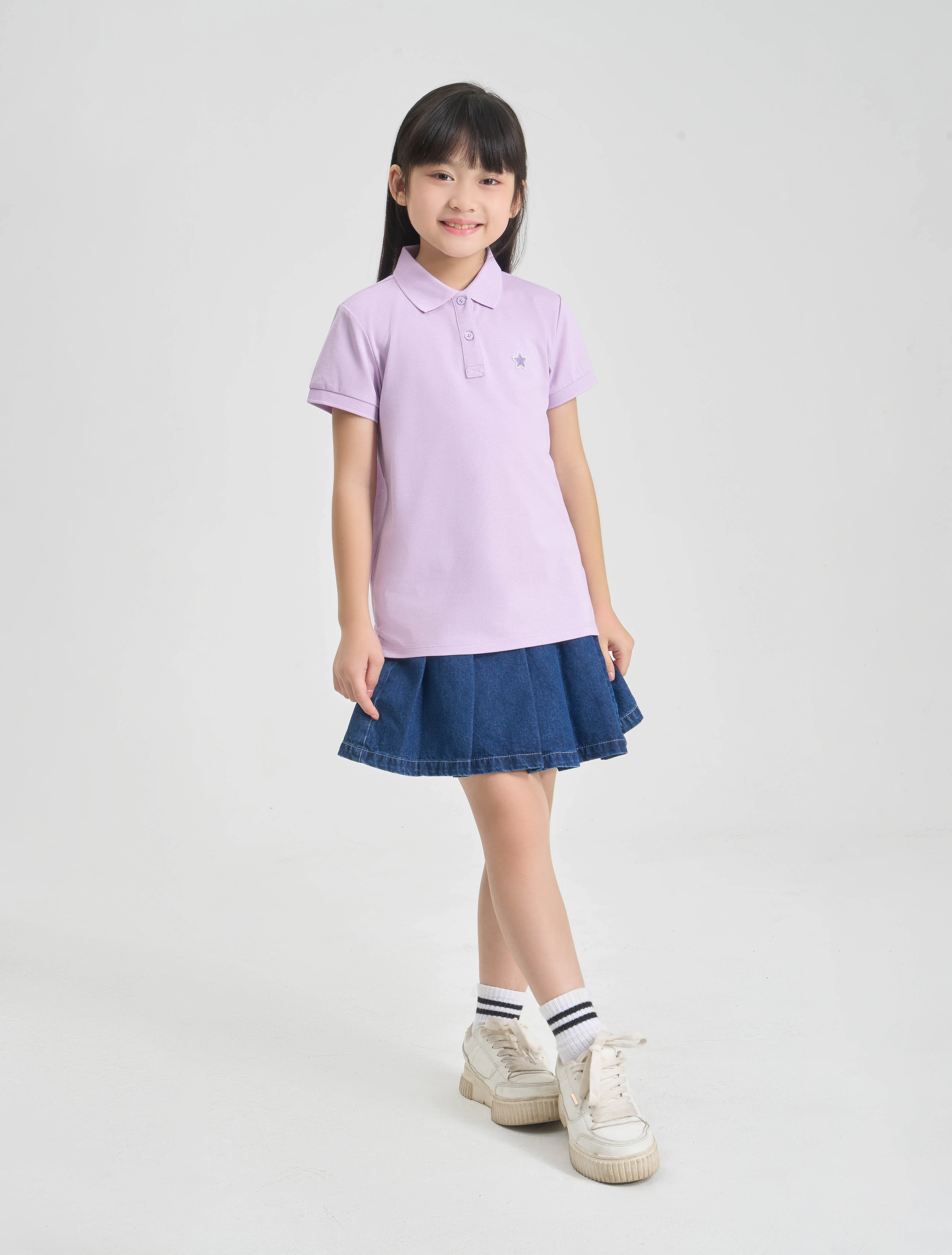 Áo polo bé gái, phom dáng cơ bản, hình in xinh xắn, chất liệu cotton pha phù hợp với hoàn cảnh sử dụng đa dạng.
