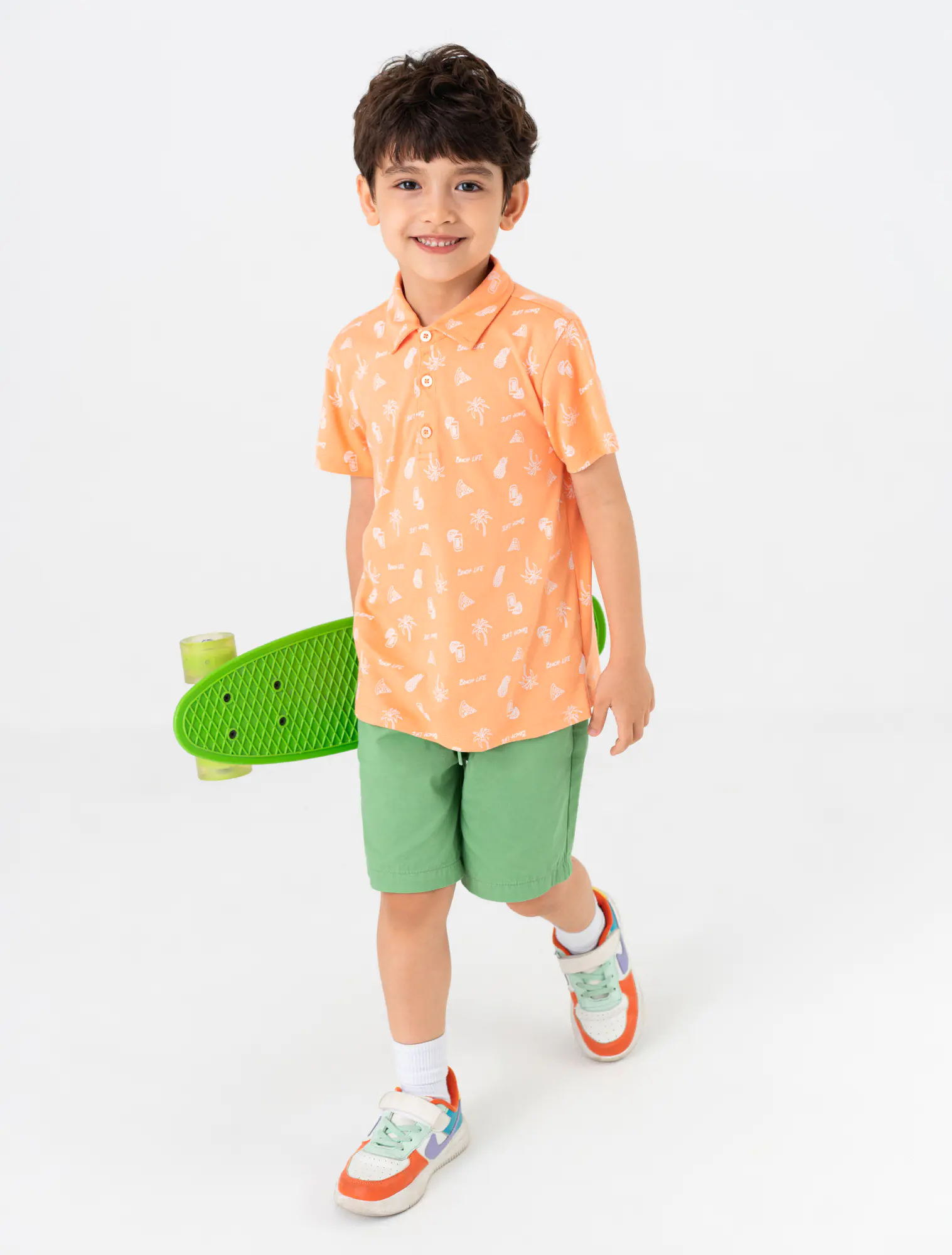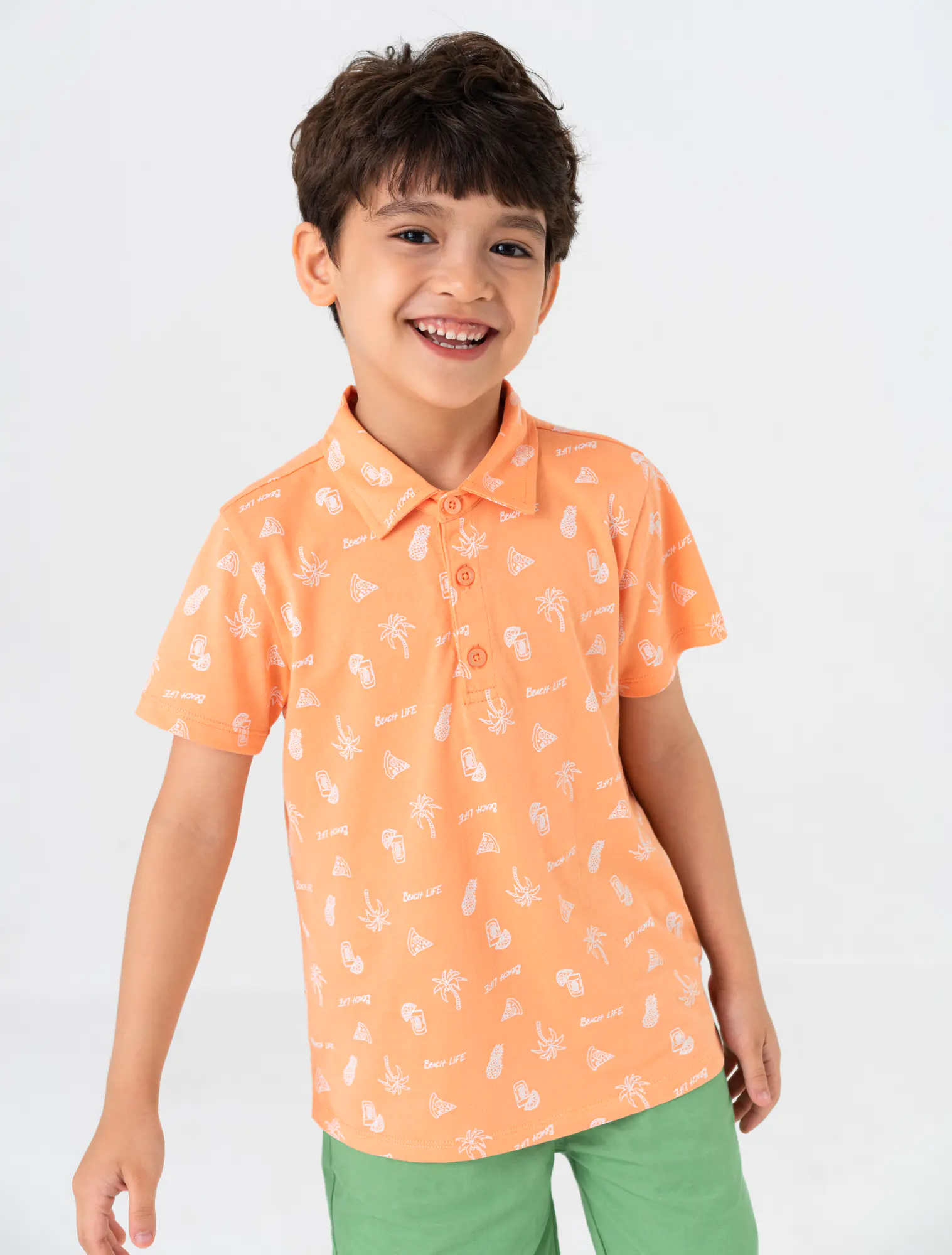 Áo polo bé trai cotton cổ bẻ cộc tay in họa tiết