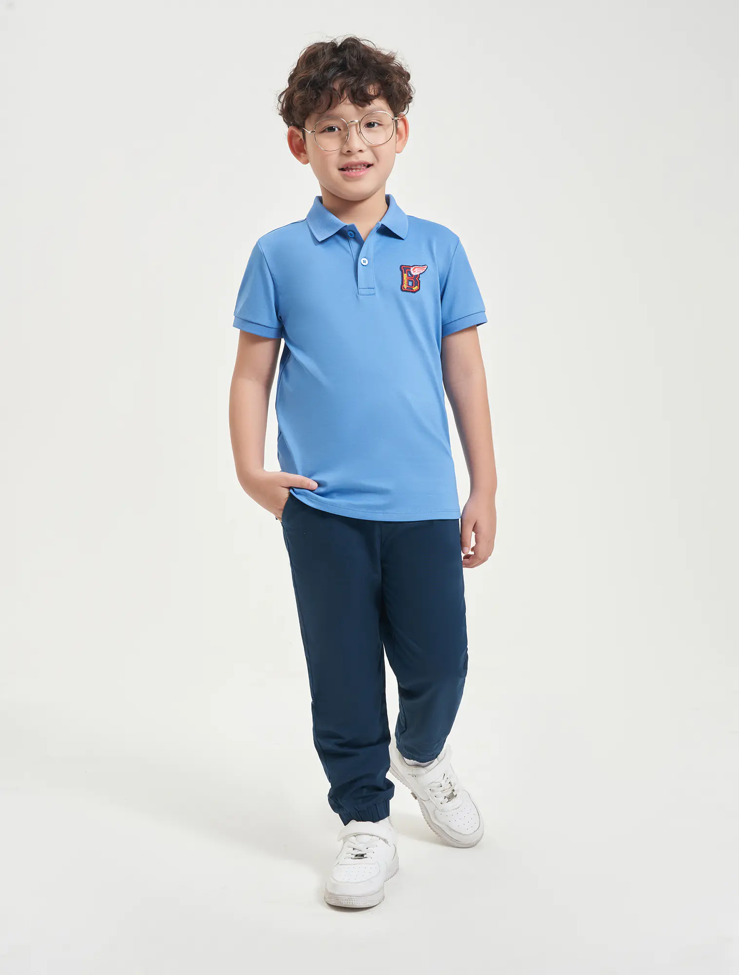 Áo polo bé trai, chất liệu cotton pha, phom dáng cơ bản, phù hợp cho các bé đi học đi chơi và hoạt động hàng ngày.
