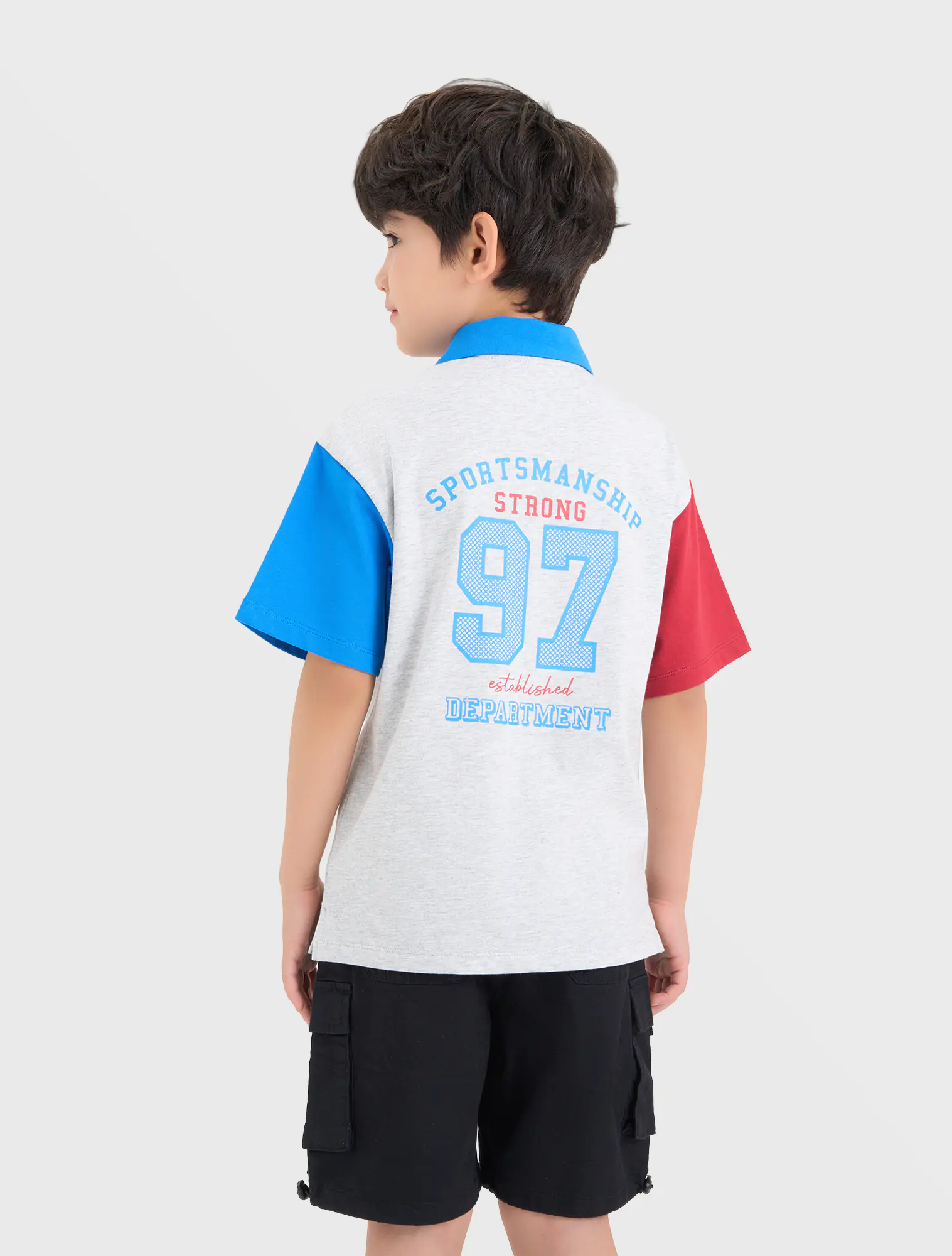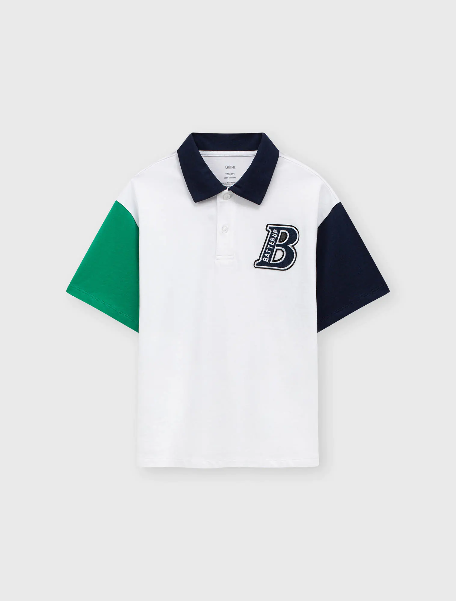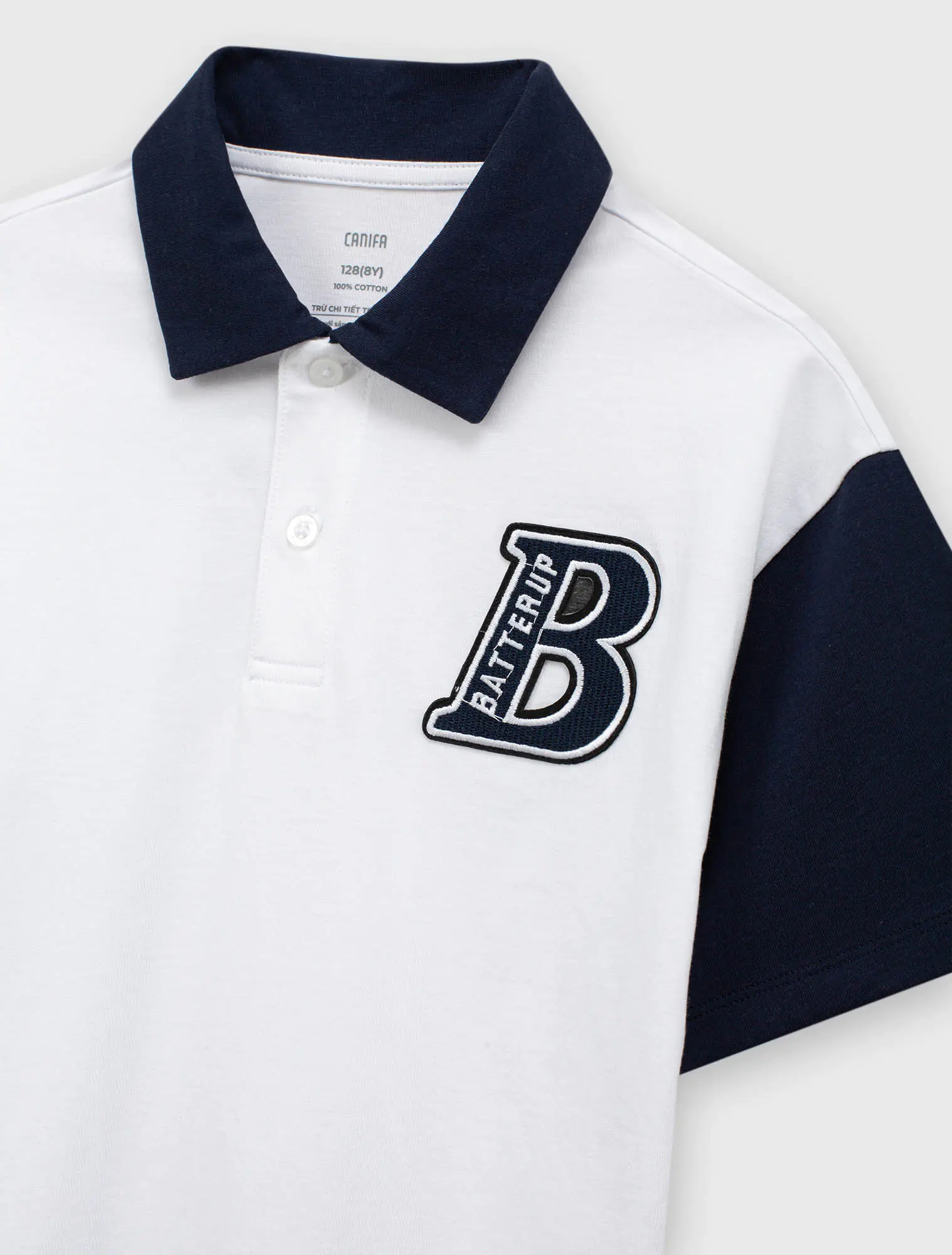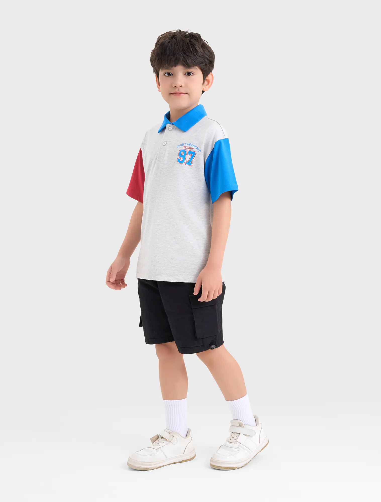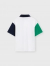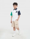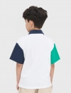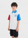 Áo polo bé trai phối màu tay áo và cổ áo, phom dáng regular thoái mái, chất liệu cotton thoáng mát, đồ họa phong cách sport khỏe khoắn tạo sự năng động cho các bé sử dụng.