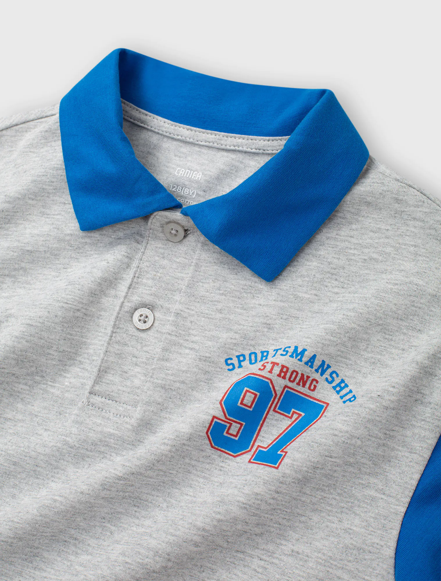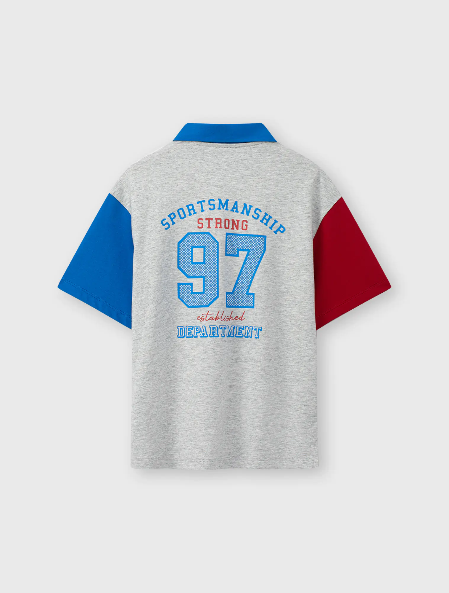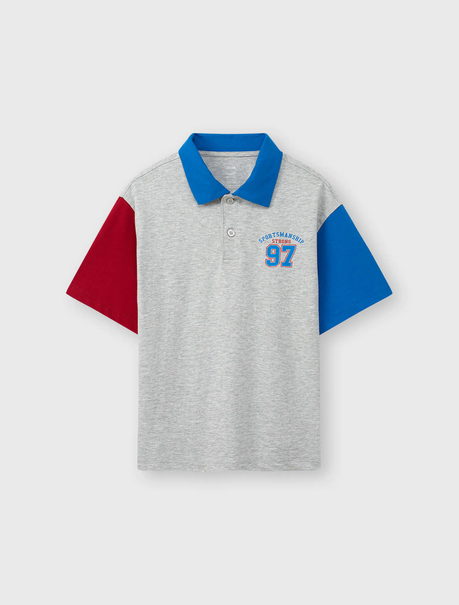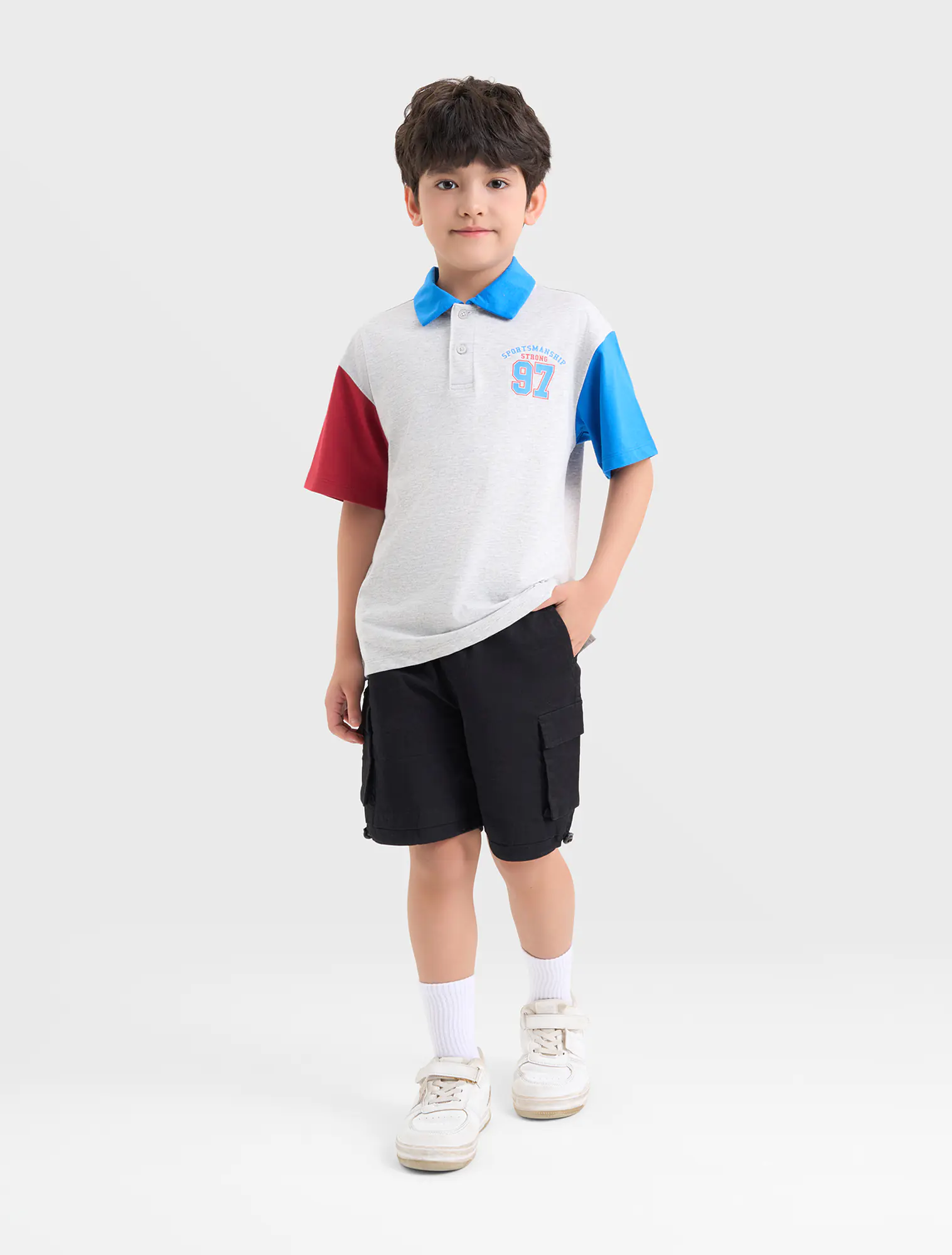 Áo polo bé trai phối màu tay áo và cổ áo, phom dáng regular thoái mái, chất liệu cotton thoáng mát, đồ họa phong cách sport khỏe khoắn tạo sự năng động cho các bé sử dụng.