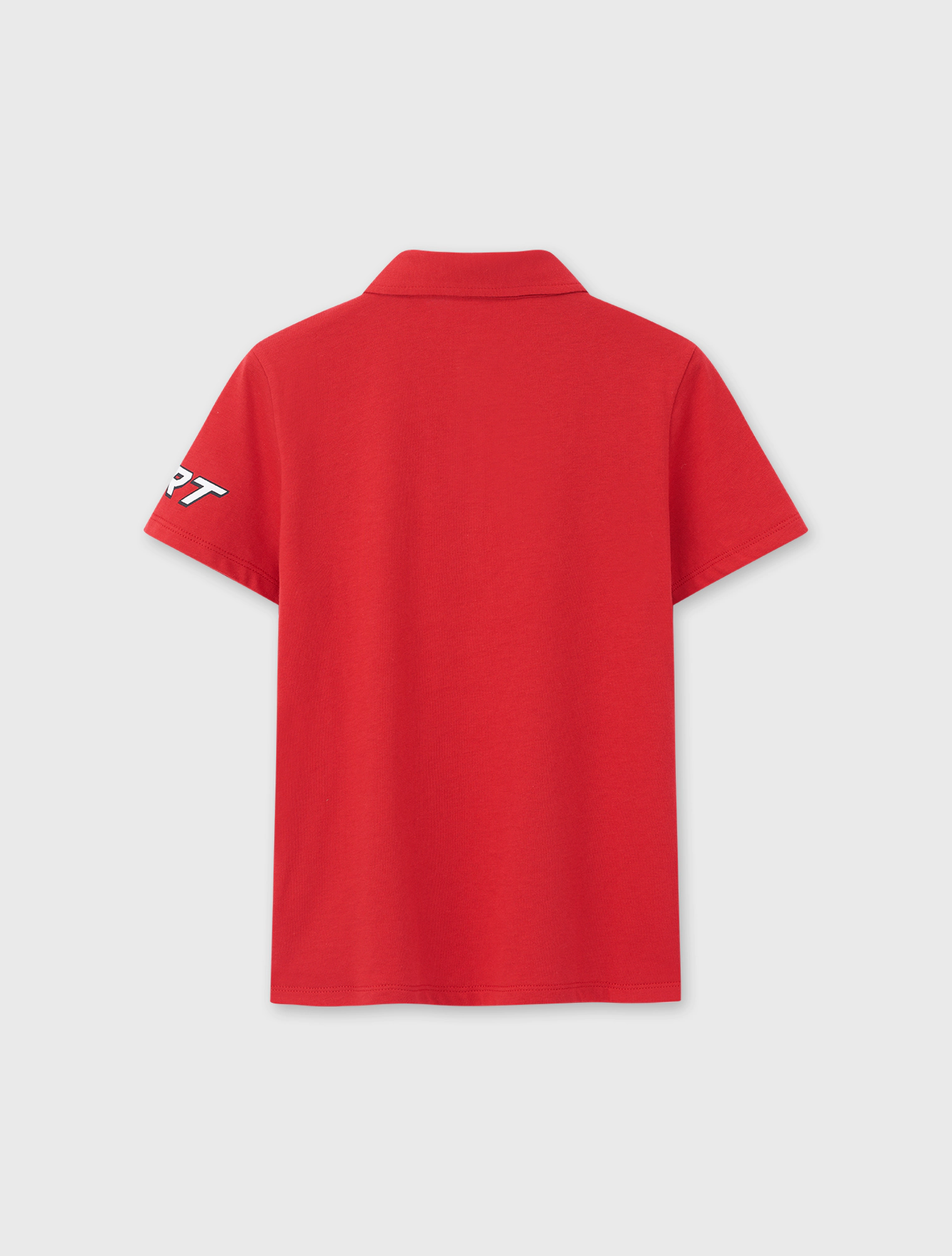 Áo polo bé trai có hình in, thiết kế phom dáng basic.