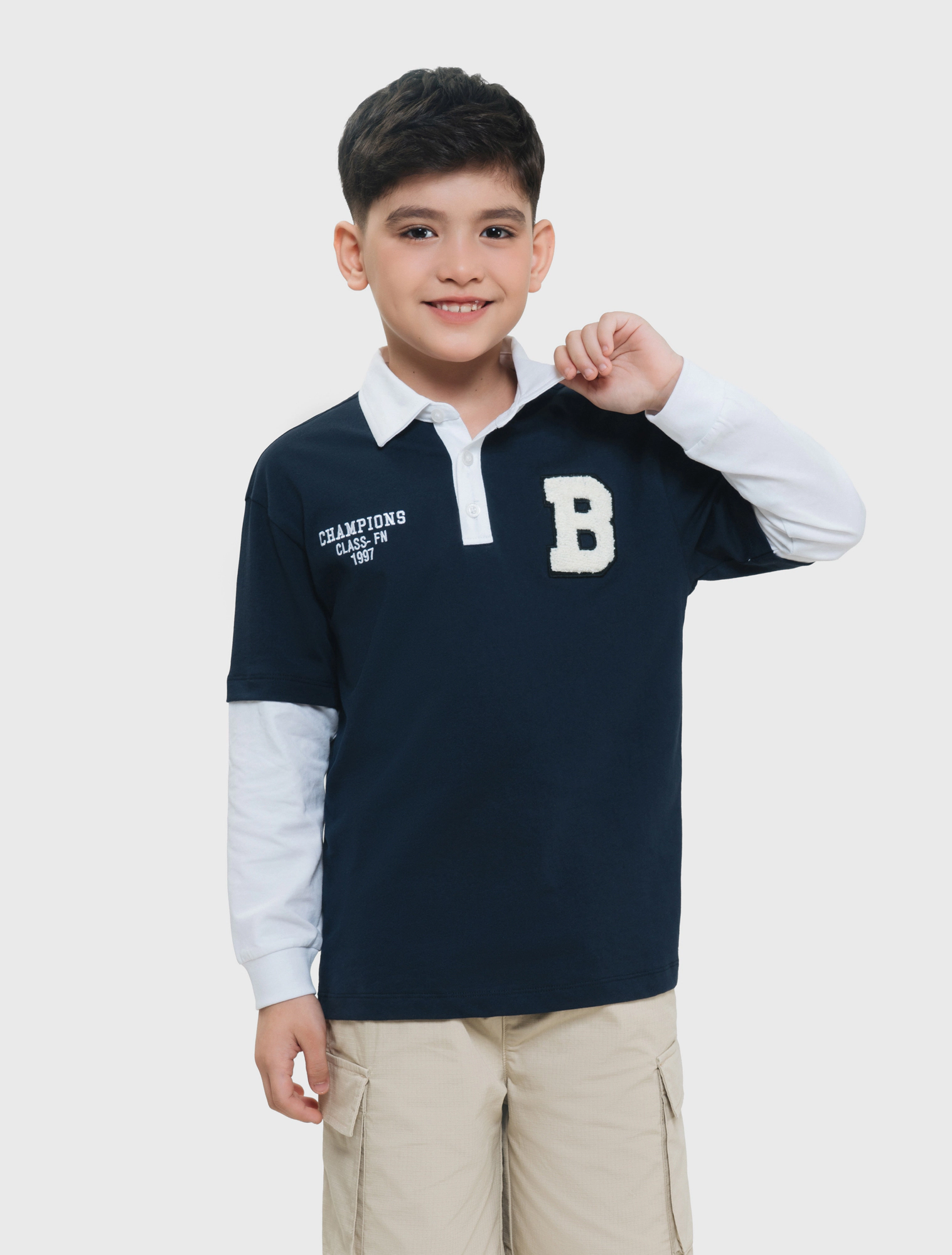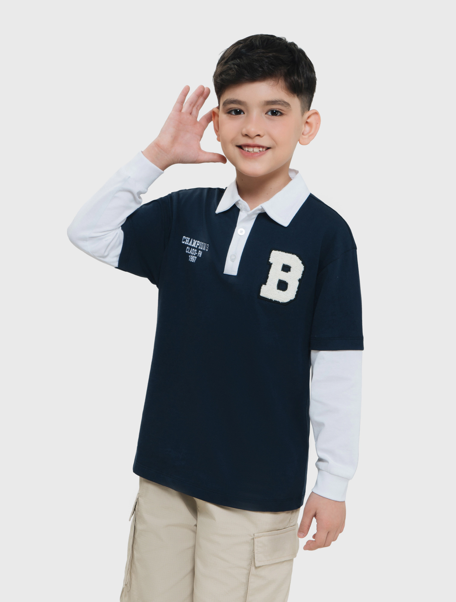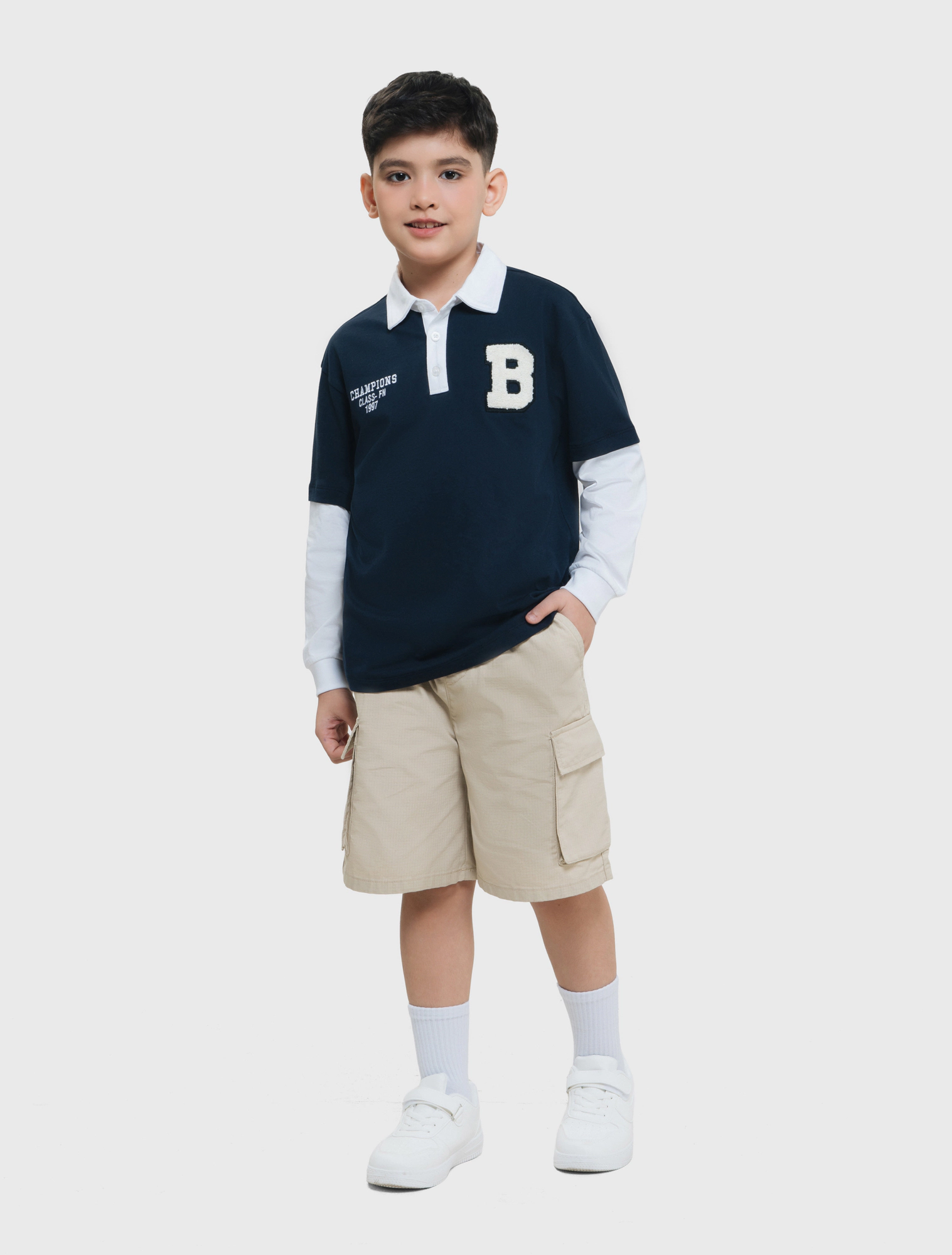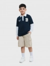 Áo polo bé trai cotton USA có hình in, phối mix màu tay áo.