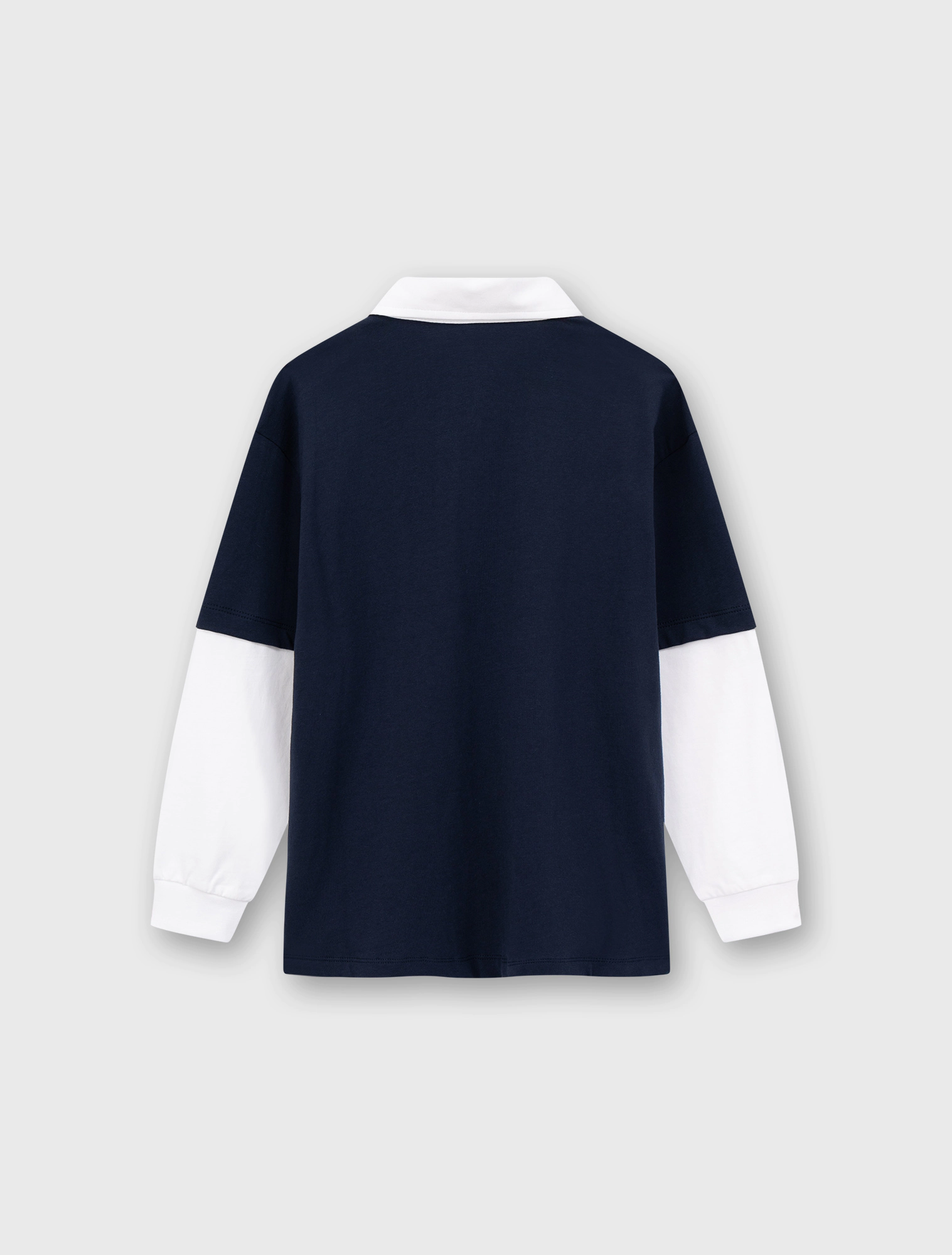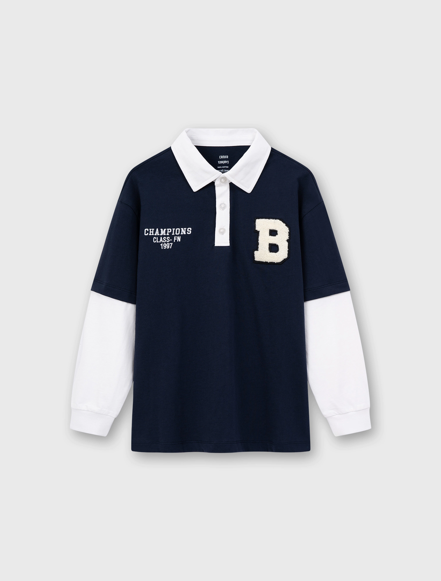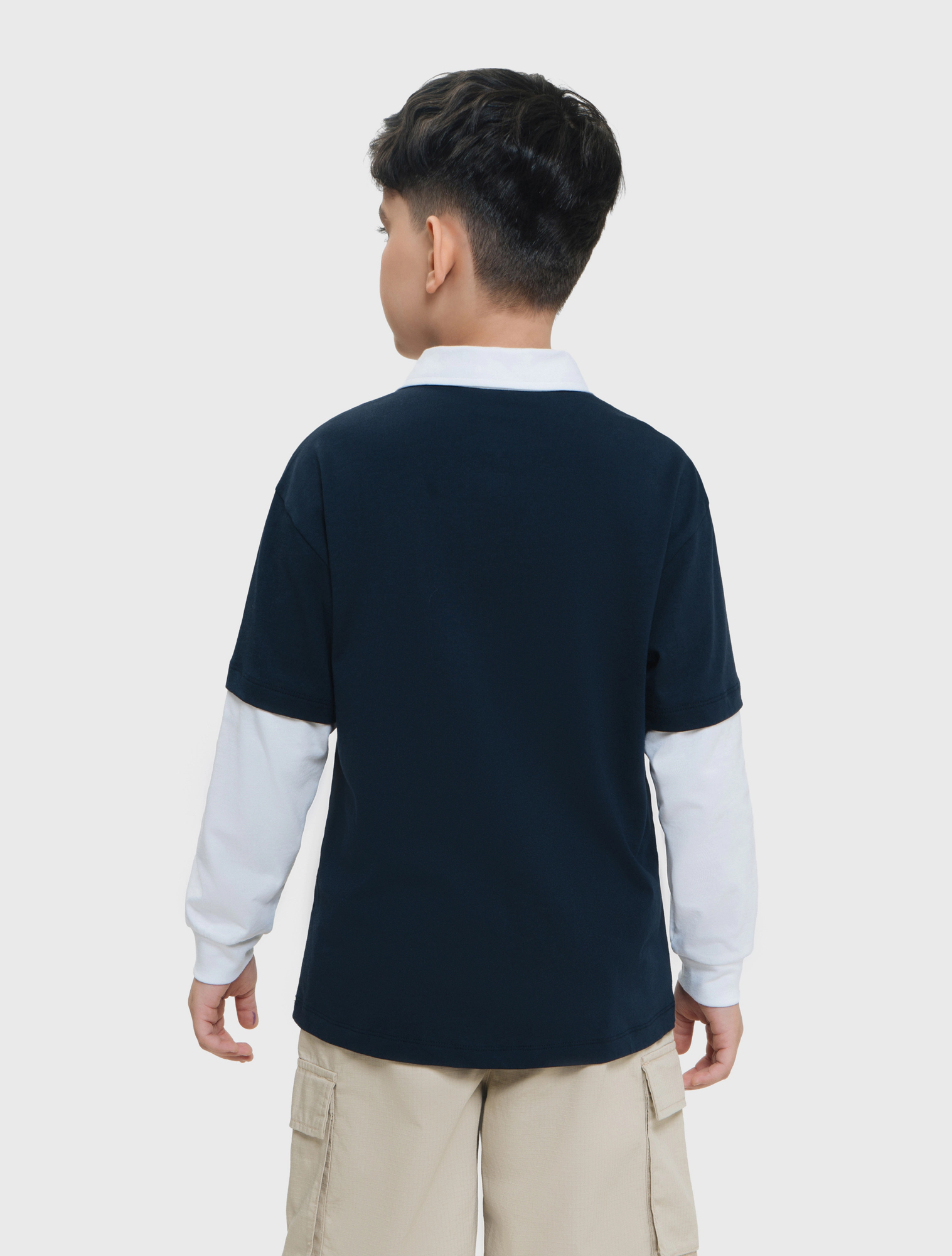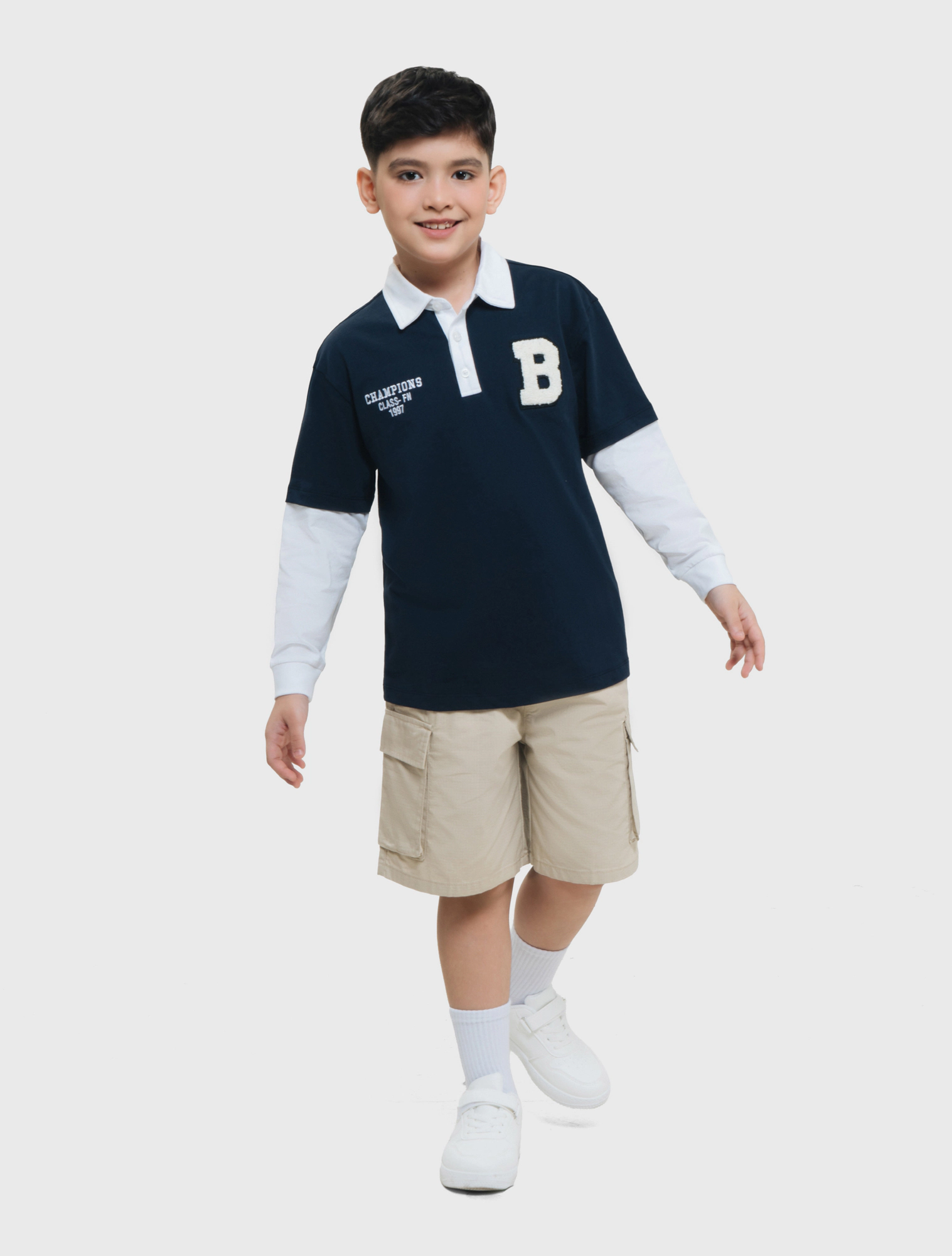 Áo polo bé trai cotton USA có hình in, phối mix màu tay áo.