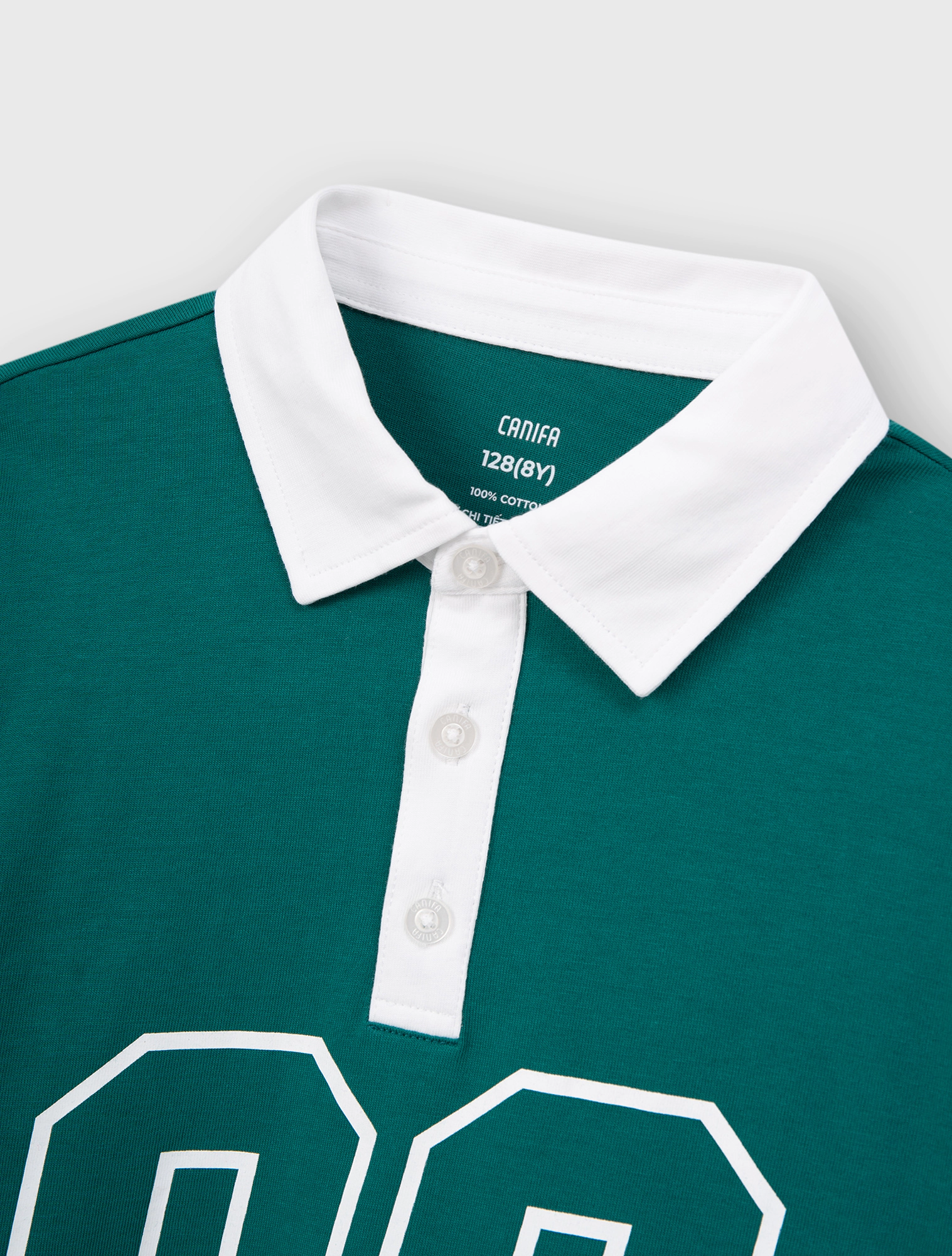 Áo polo bé trai can phối mix màu tay áo, Hình in phong cách sport khỏe khoắn năng động, màu sắc trung tính dễ mặc, phom dáng trẻ khỏe phù hợp sử dụng trong nhiều hoàn cảnh.