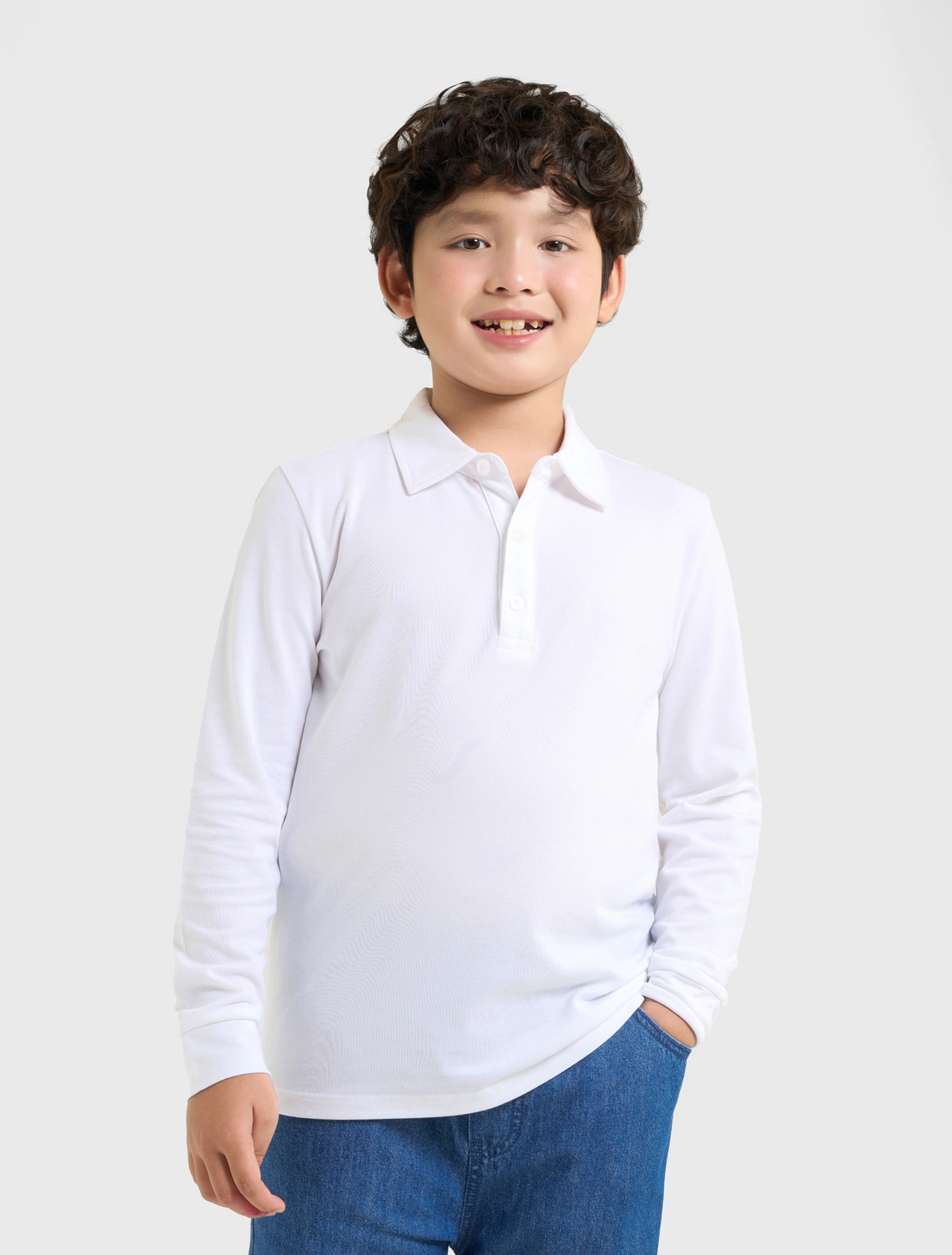 Áo polo bé trai dài tay dáng regular, chất liệu lacoste pha mềm mại, khỏe khoắn, phù hợp cho bé đi học, đi chơi.