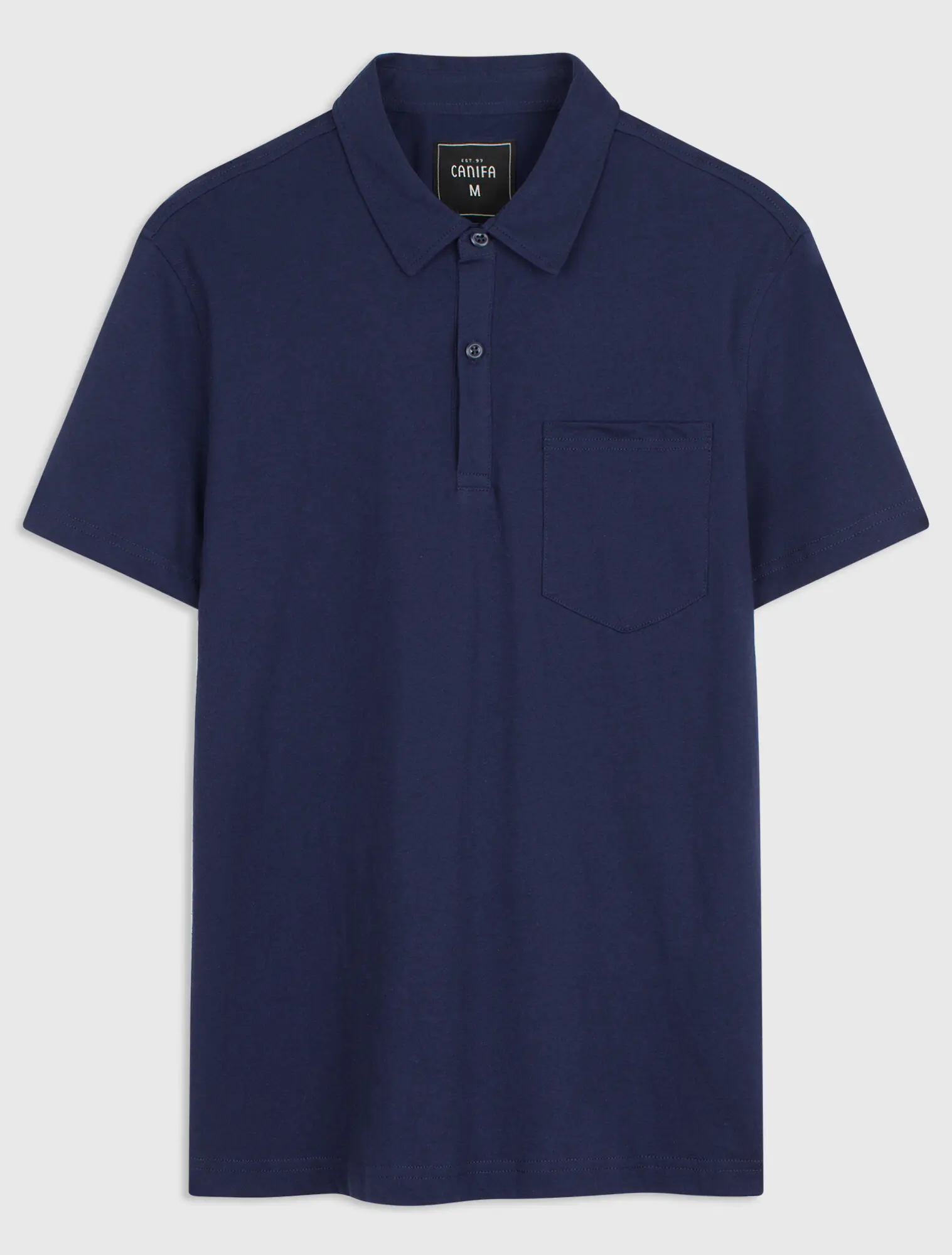 Phom regular, cổ bẻ, tay ngắn, có 1 túi ốp ngực.