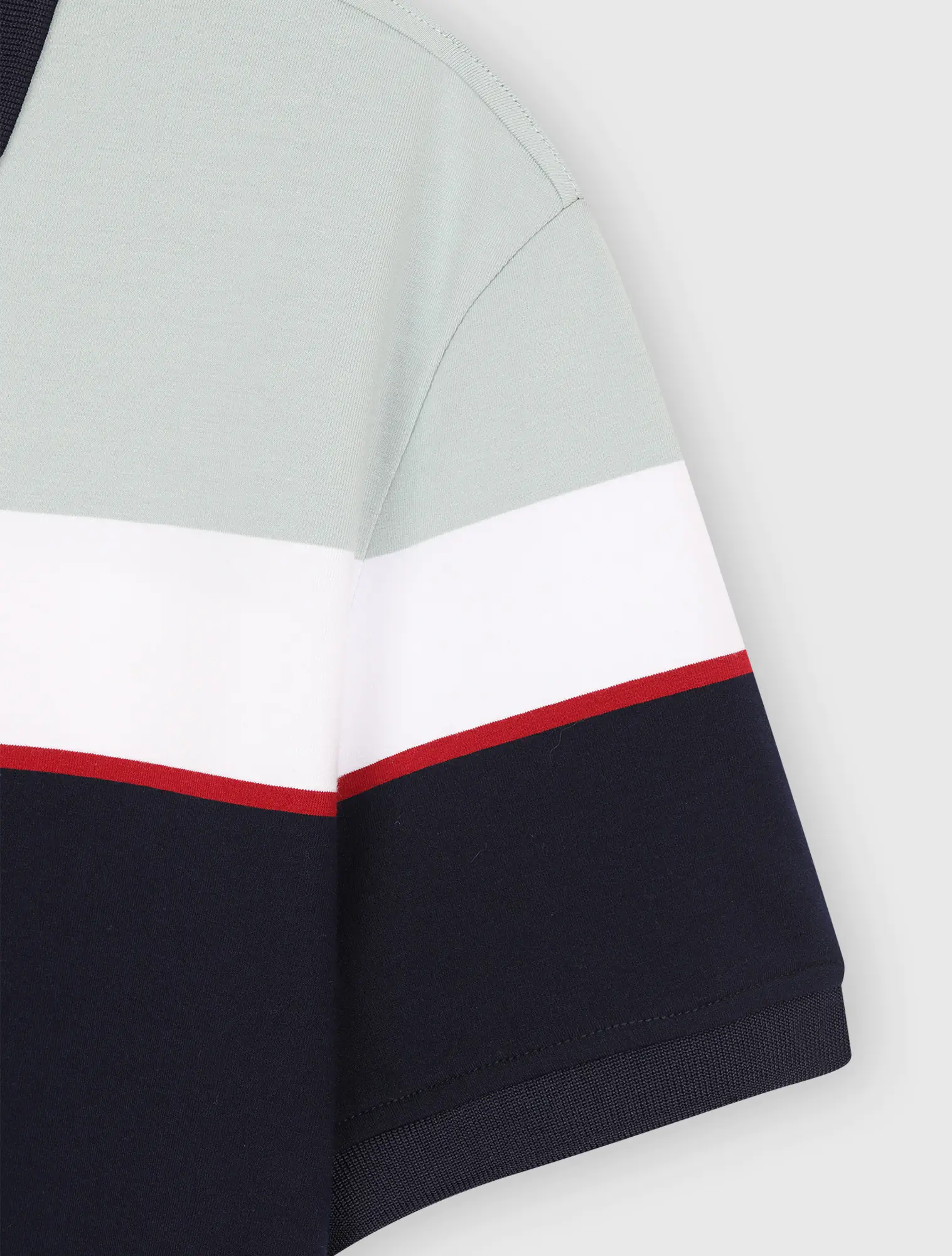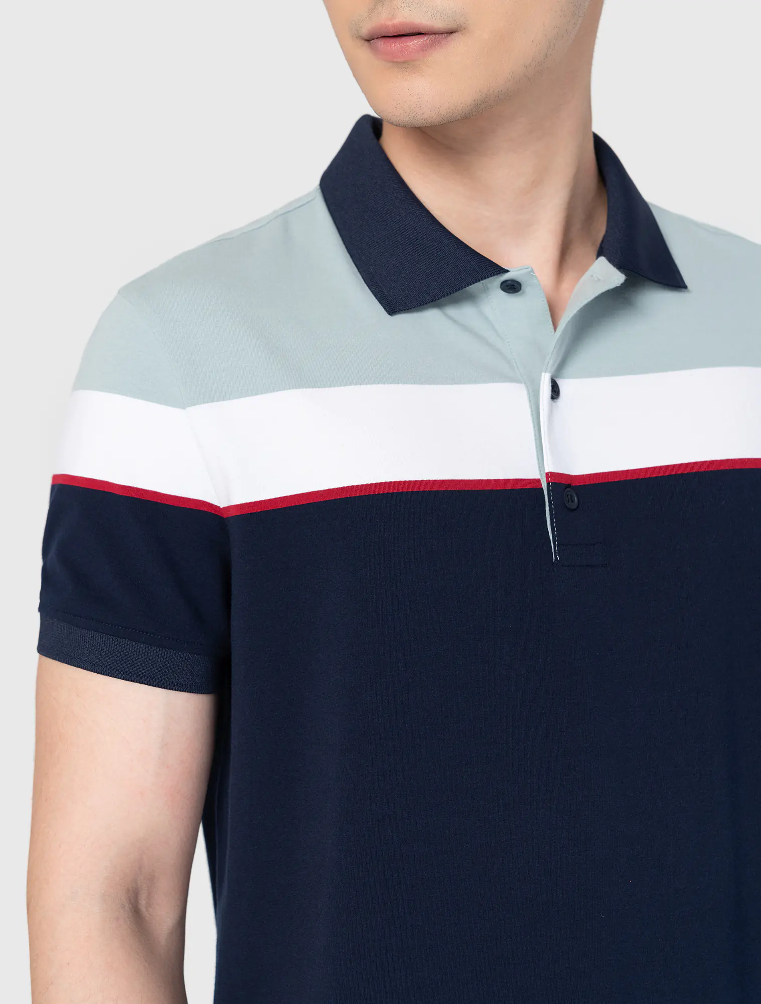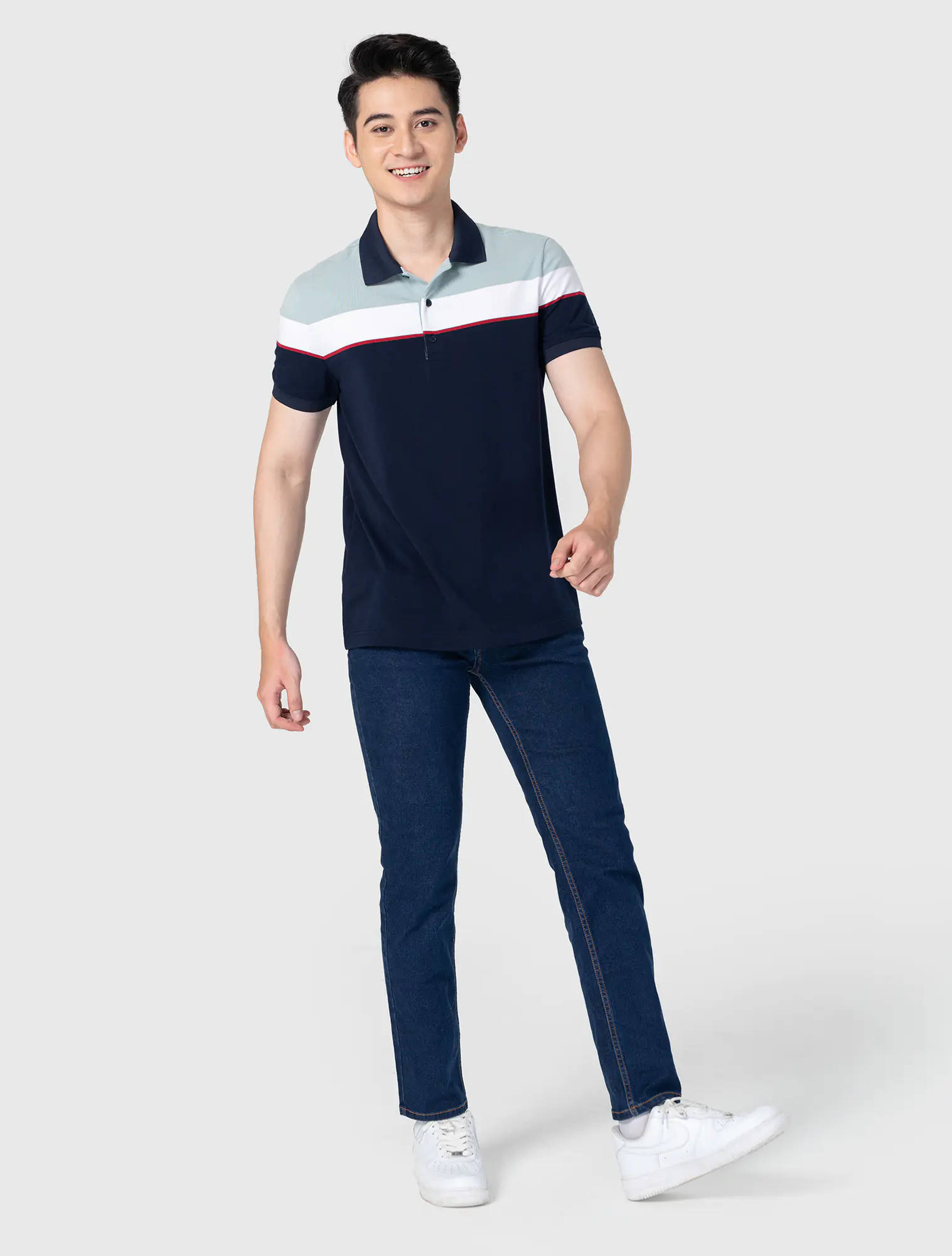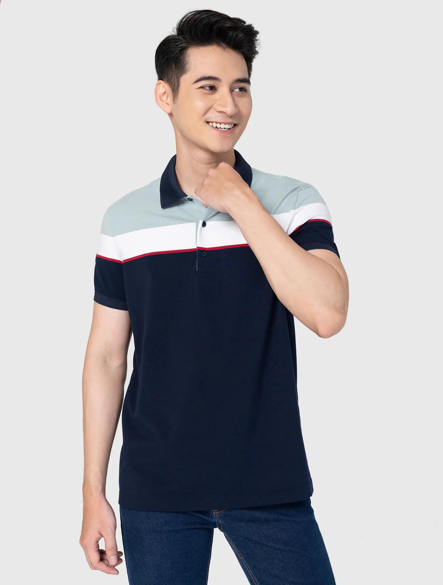 Dáng regular, cổ bẻ, tay cộc, phối màu