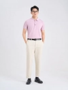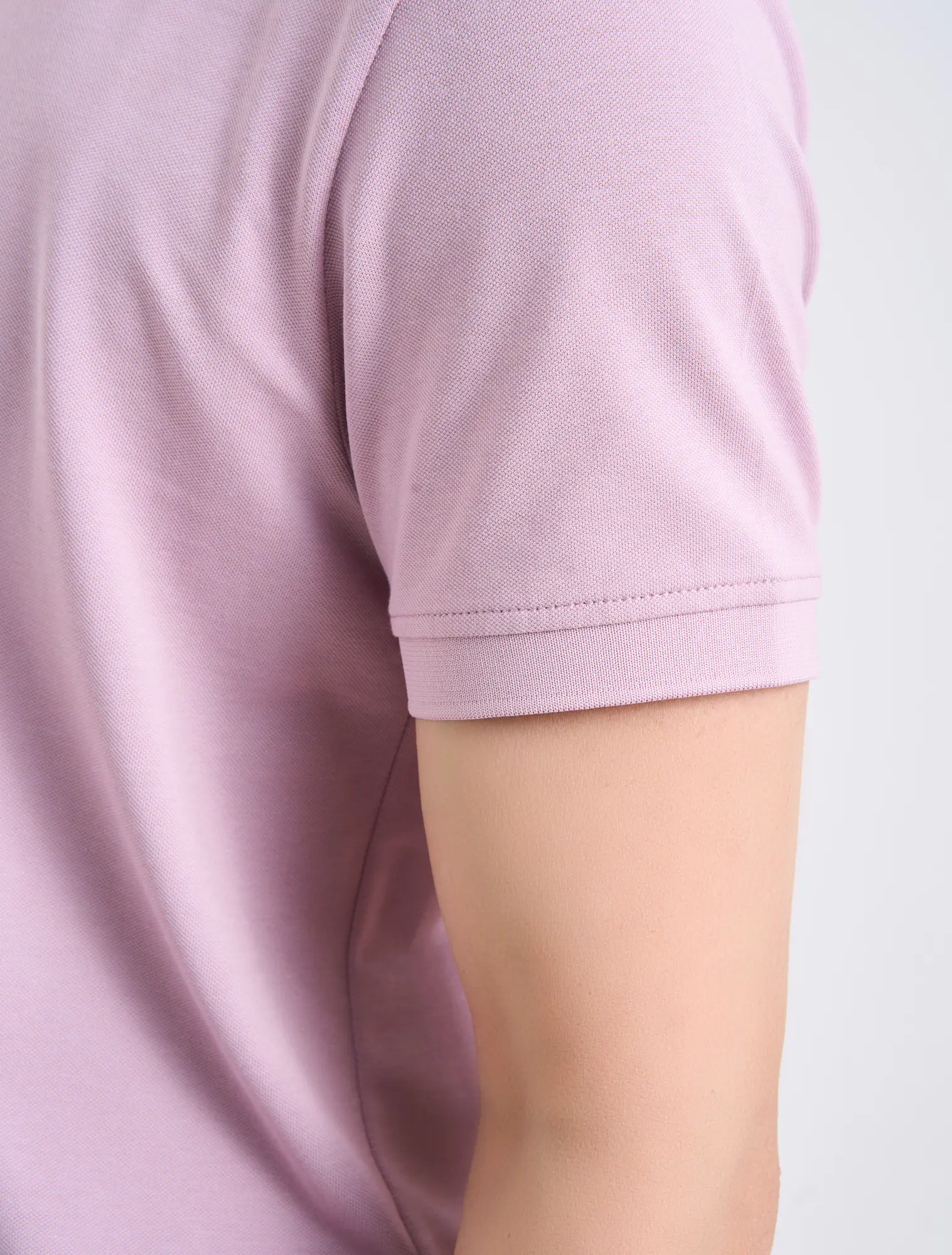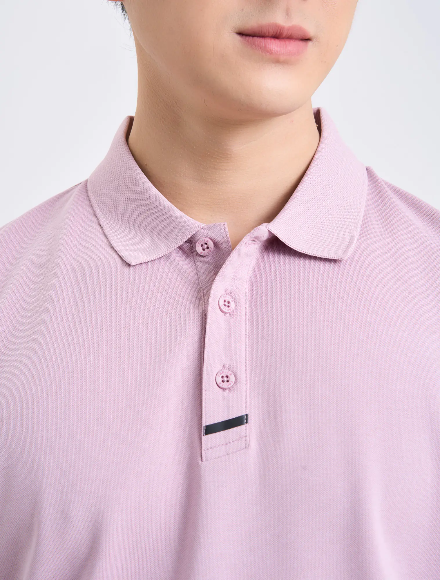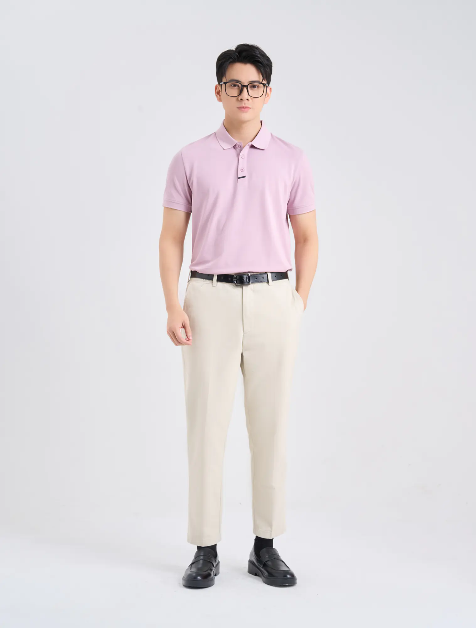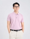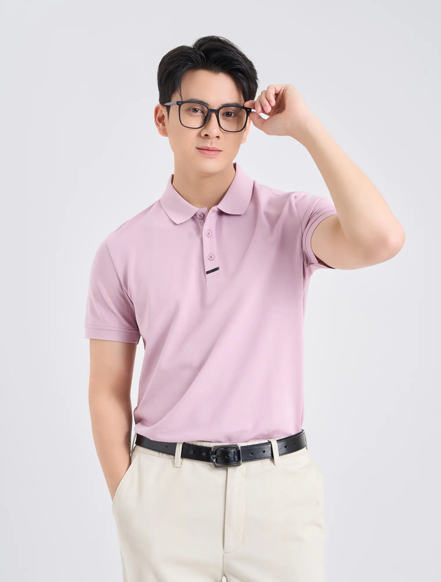 Áo polo nam basic có cổ bẻ, nẹp cài cúc thiết kế vát chéo có in sọc, kiểu dáng đơn giản phù hợp với nhiều hoàn cảnh sử dụng.