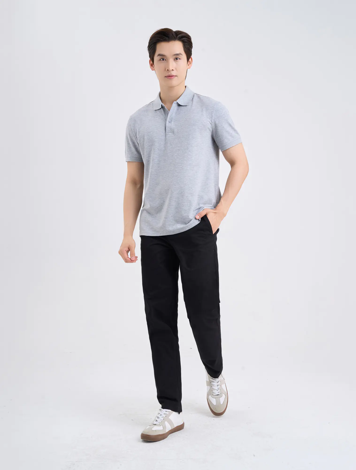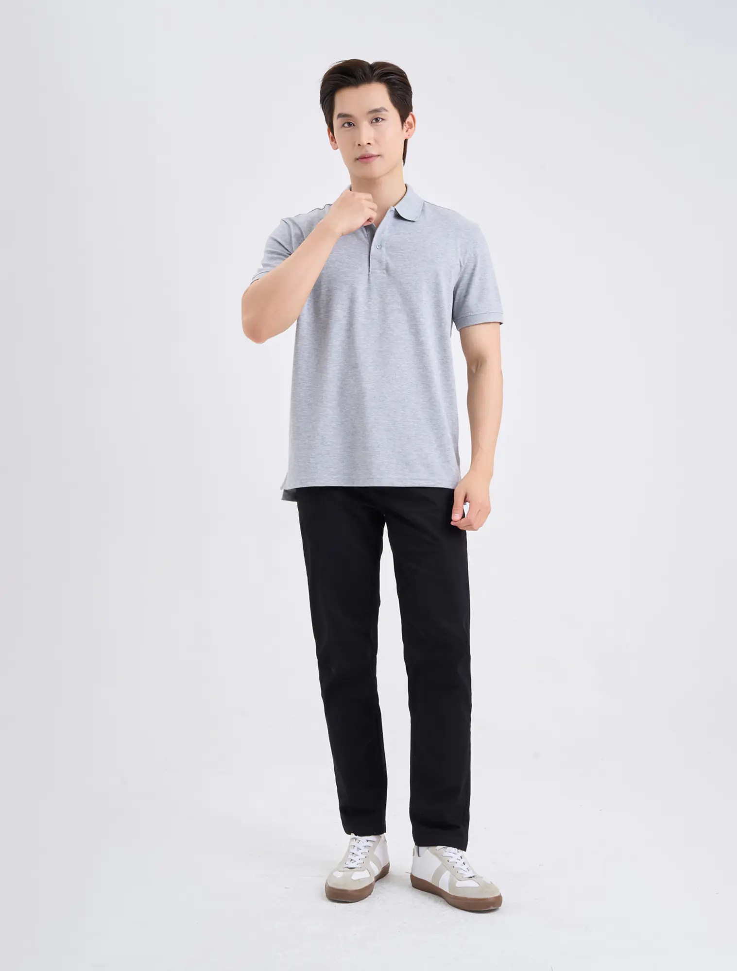 Áo polo nam basic có cổ bẻ, nẹp cài cúc, kiểu dáng đơn giản phù hợp với nhiều hoàn cảnh sử dụng.