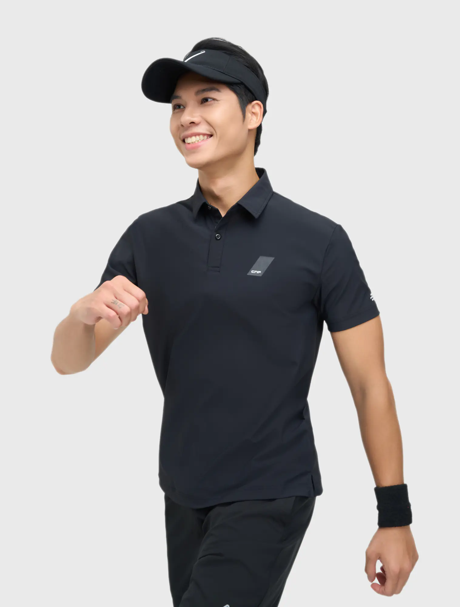 Áo polo active chất liệu mềm mát, điểm nhấn đồ họa tinh tế tại ngực áo, phù hợp với các hoạt động thể dục thể thao .