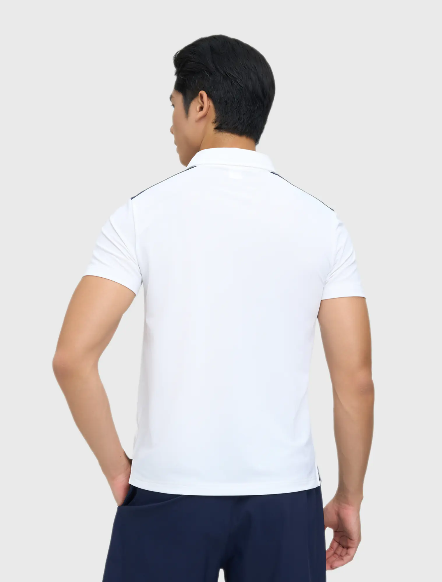 Áo polo active nam phom regular, được làm bằng chất liệu nylon spandex mang lại sự thoải mái, dễ chịu khi vận động hàng ngày hay vân động thể thao. điểm nhấn can phối hai bên vai và hình in phản quang dưới gấu làm cho sản phẩm trông năng động và khỏe khoắn.