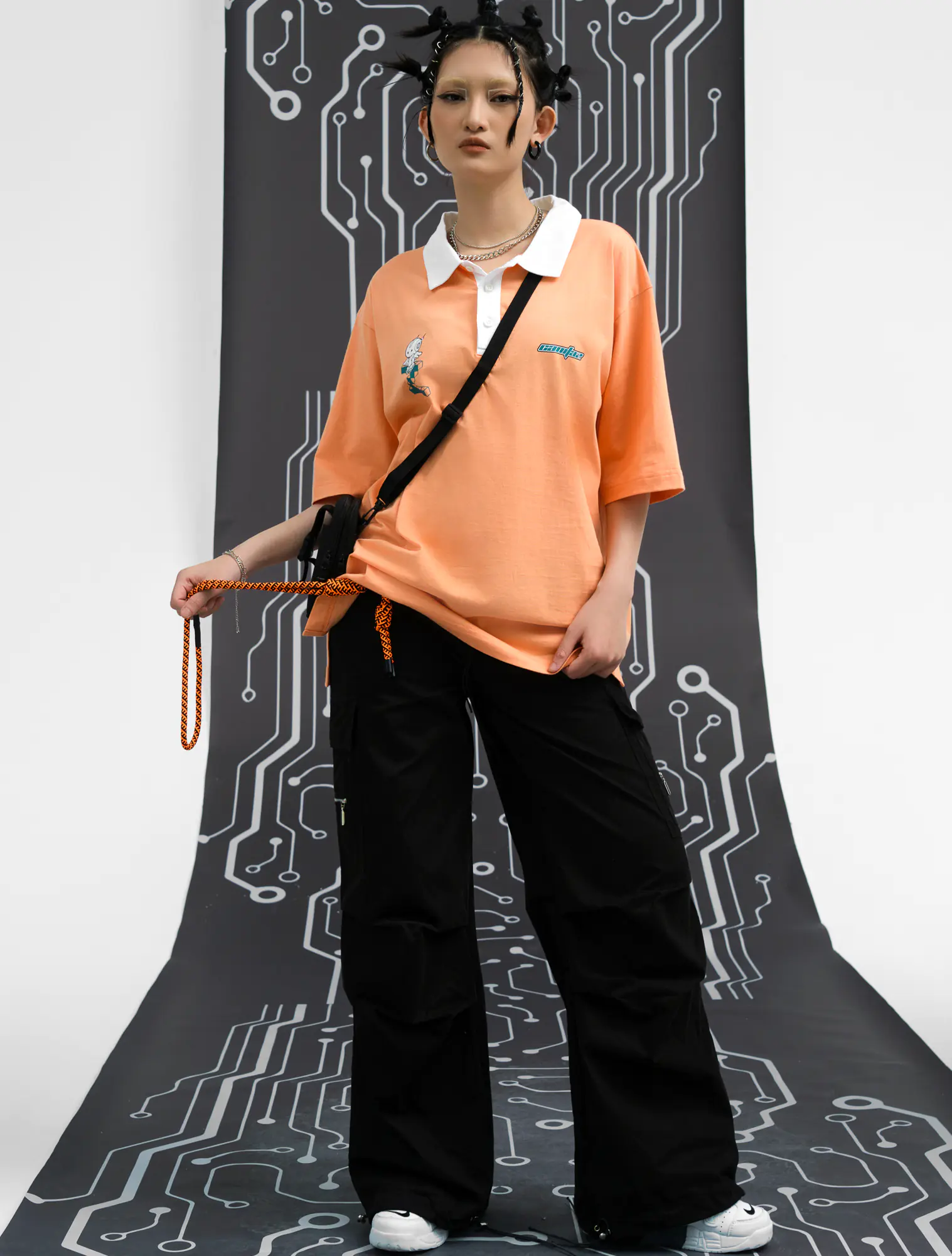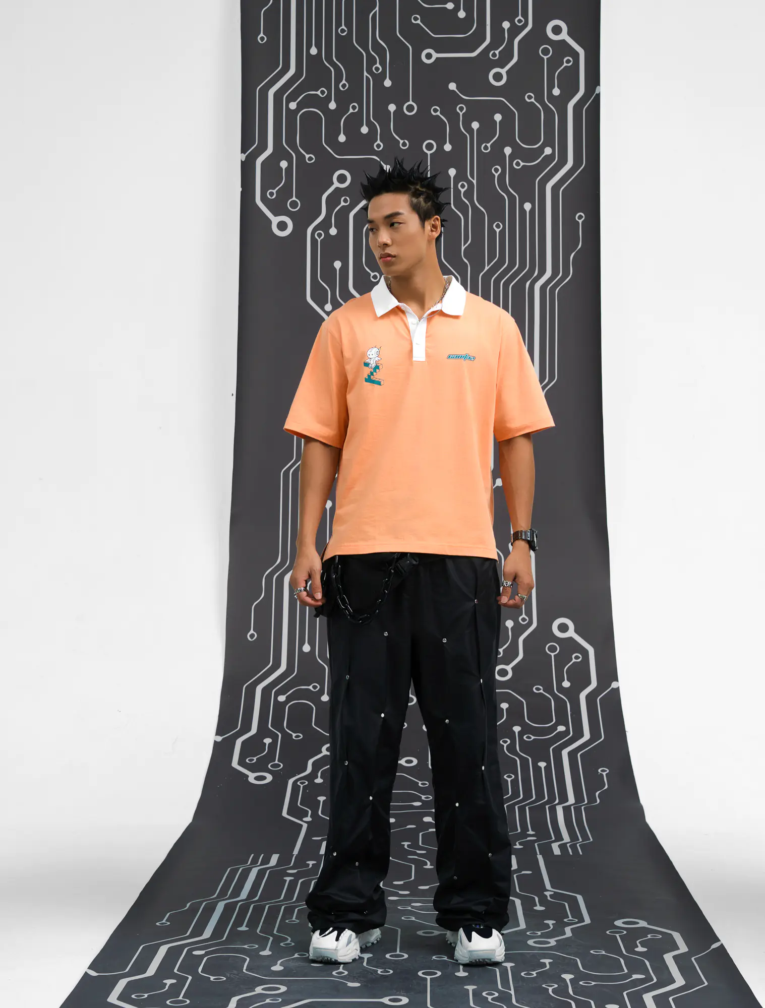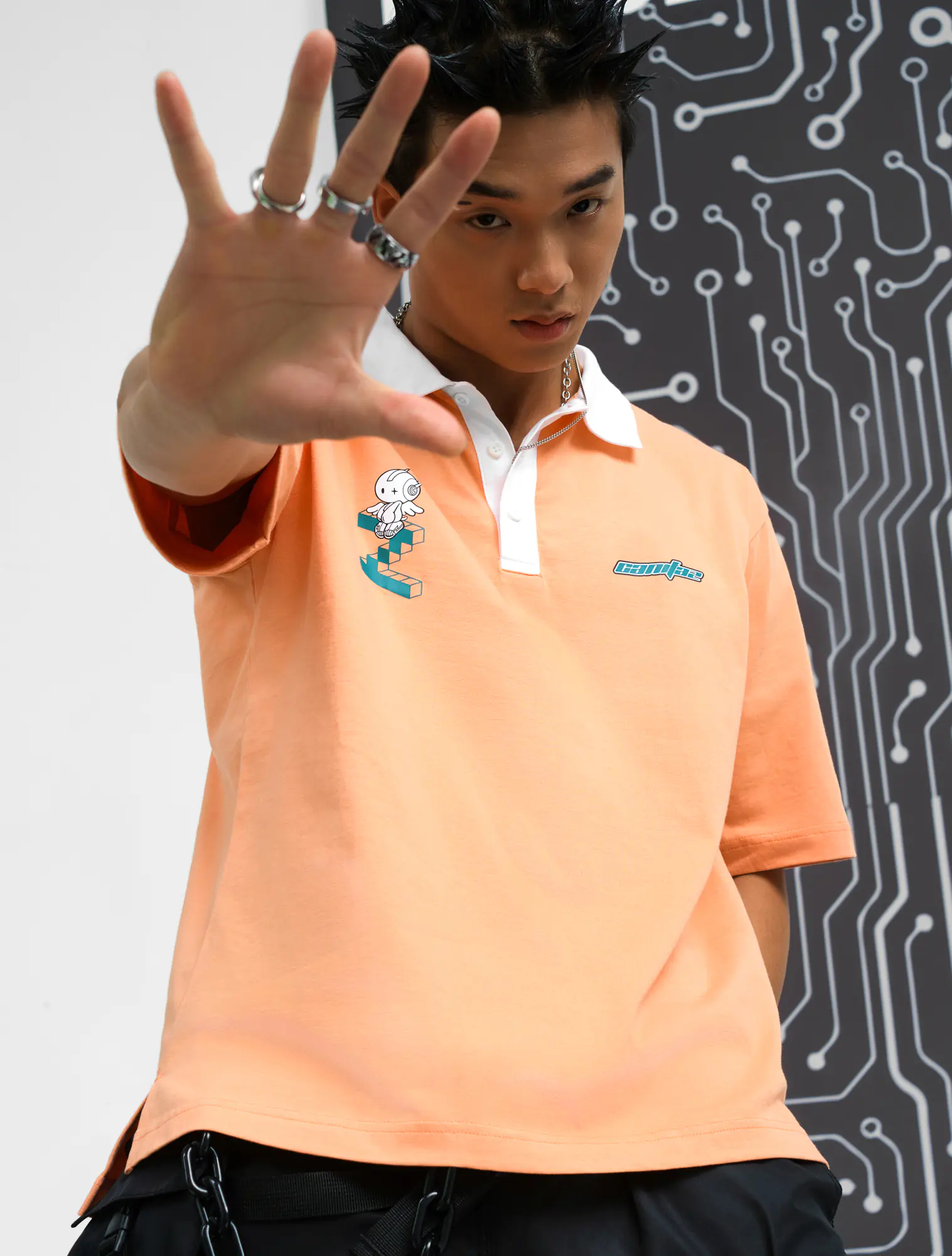 Áo Polo ngắn tay Boxy thuộc bộ sưu tập hình in chủ đề Techno Z.