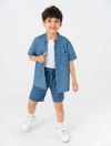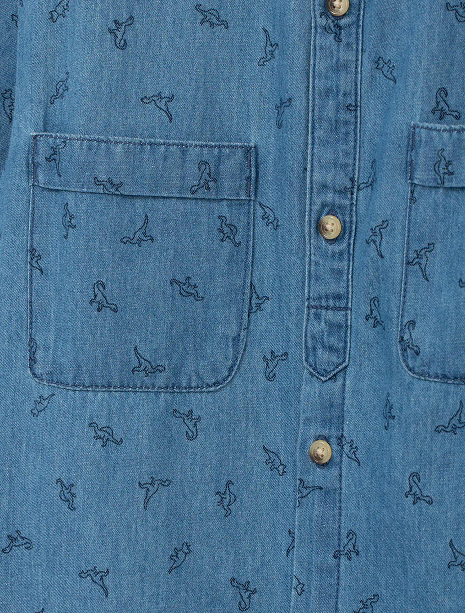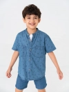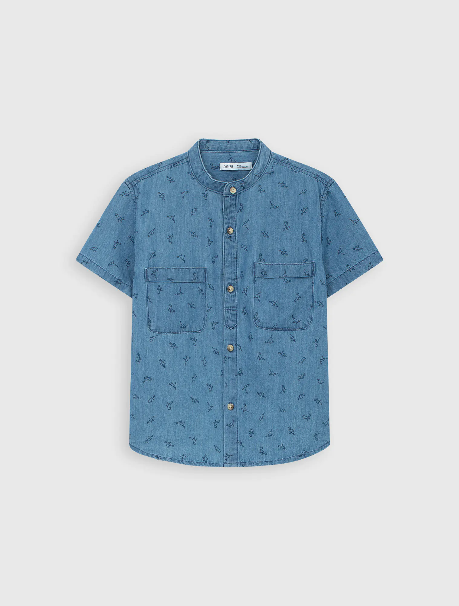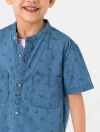 Áo sơ mi bé trai cotton cổ tàu túi ốp in họa tiết