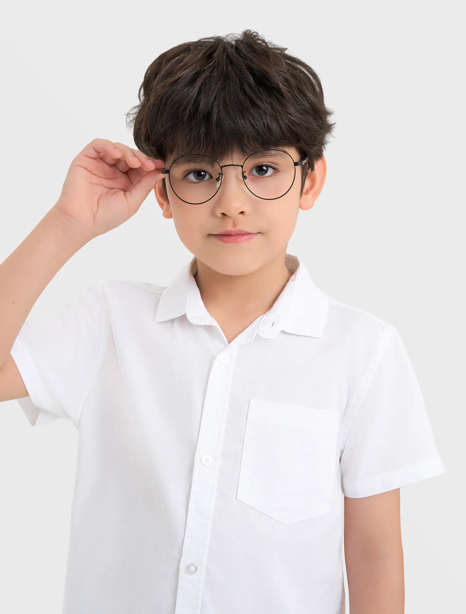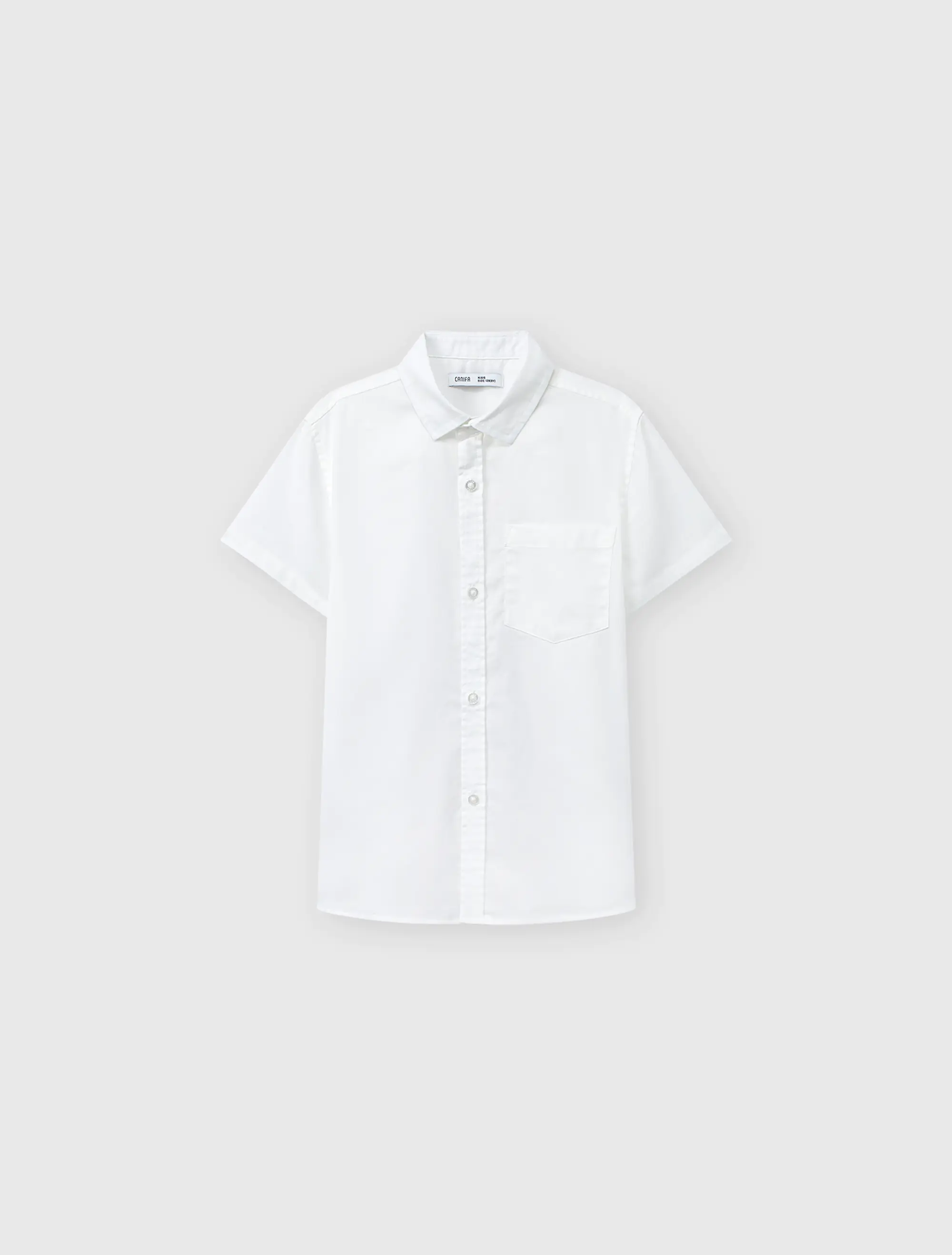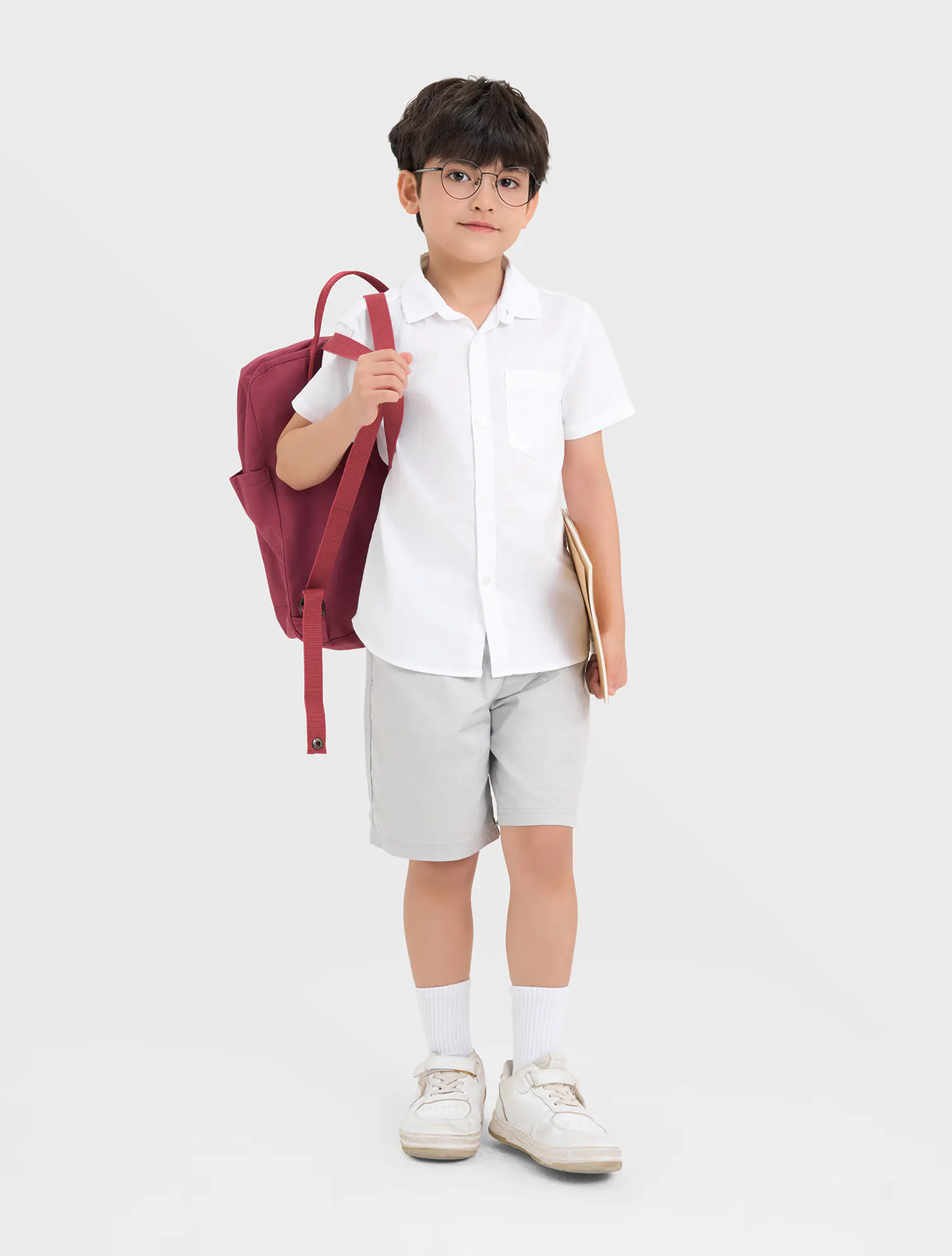 Áo sơ mi bé trai ngắn tay có túi ngực, phom basic bé có thể sử dụng đi học, đi chơi dễ dàng.