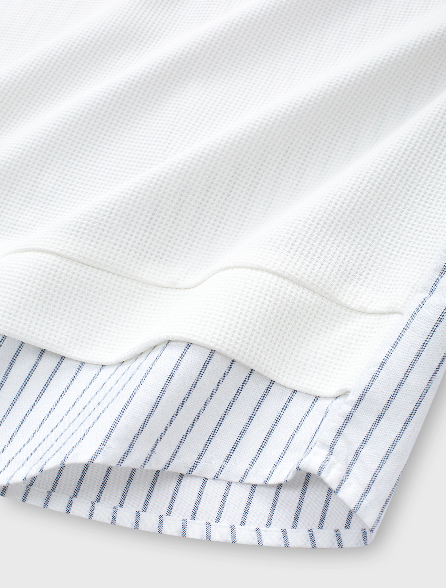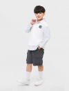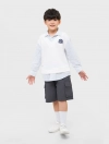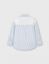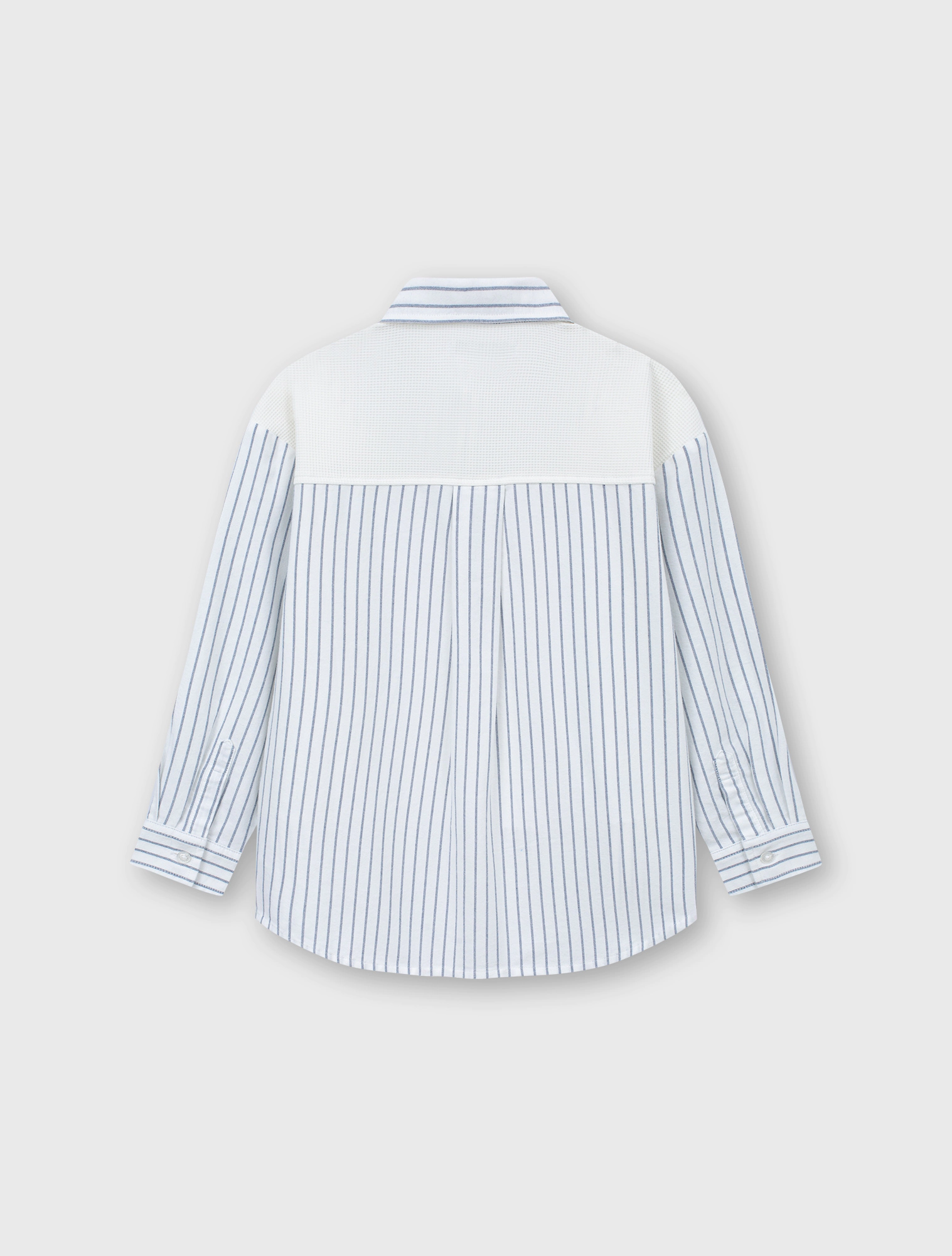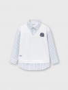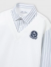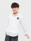 Áo sơ mi bé trai dài tay, phối giả gilet. Có hình thêu đáp trước ngực. Họa tiết kẻ sọc. Chất liệu cotton thoải mái dễ vận động.