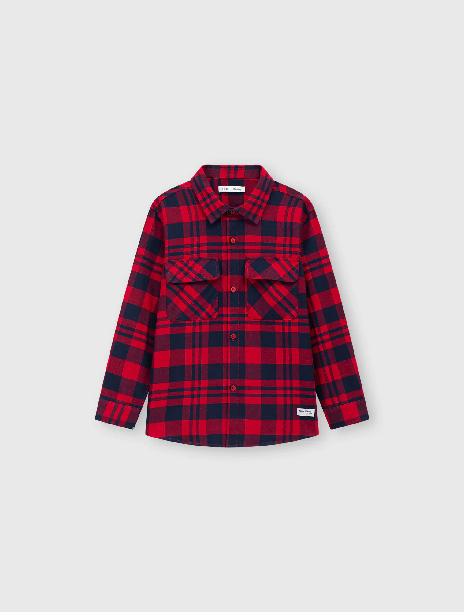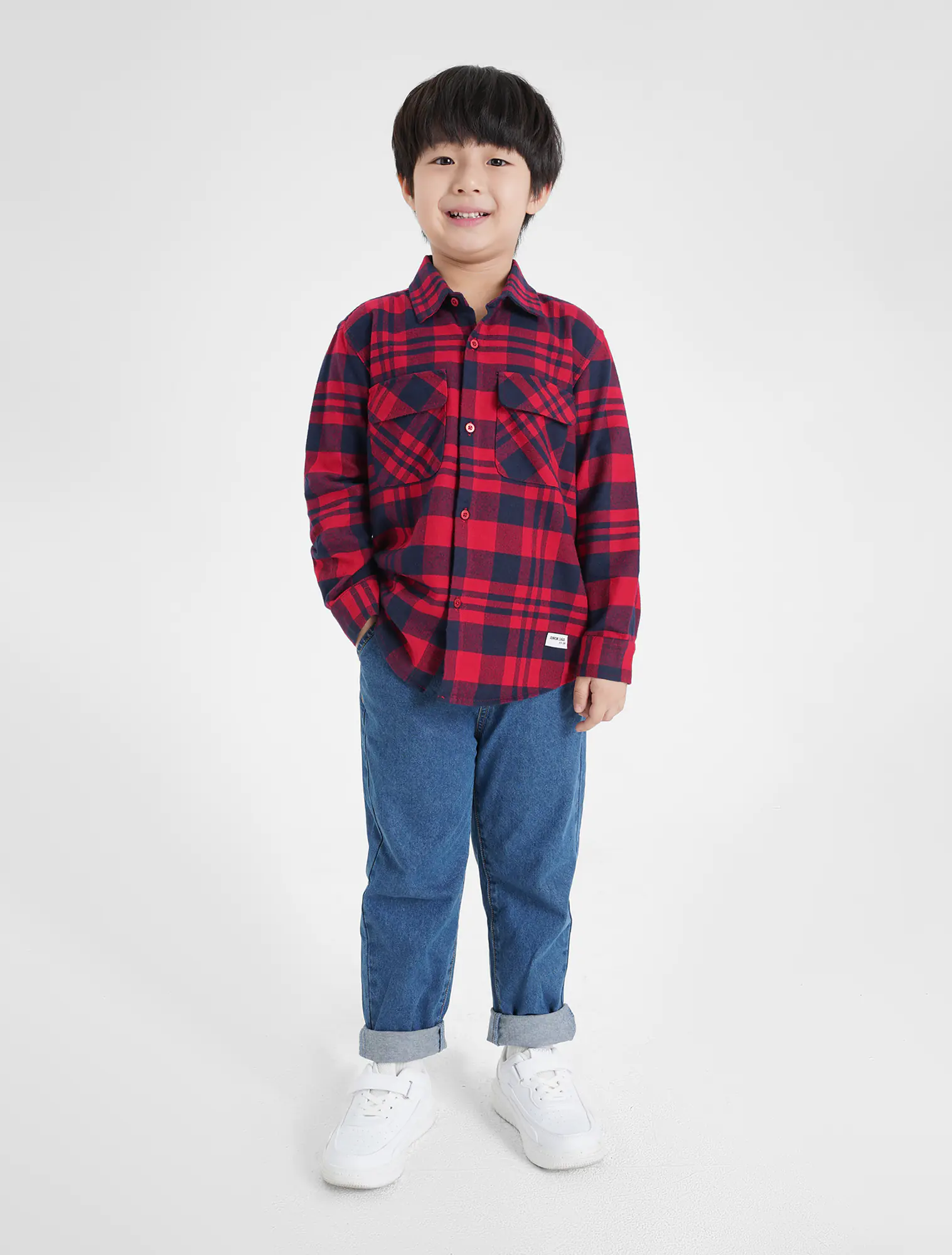 Áo sơ mi bé trai, chất liệu cào lông, mềm mại và thân thiện với môi trường.