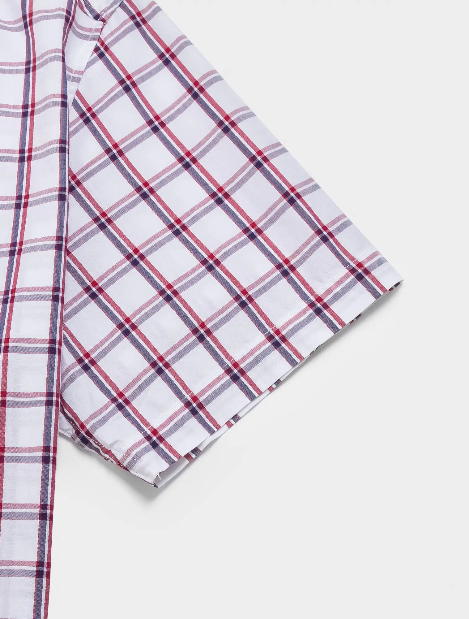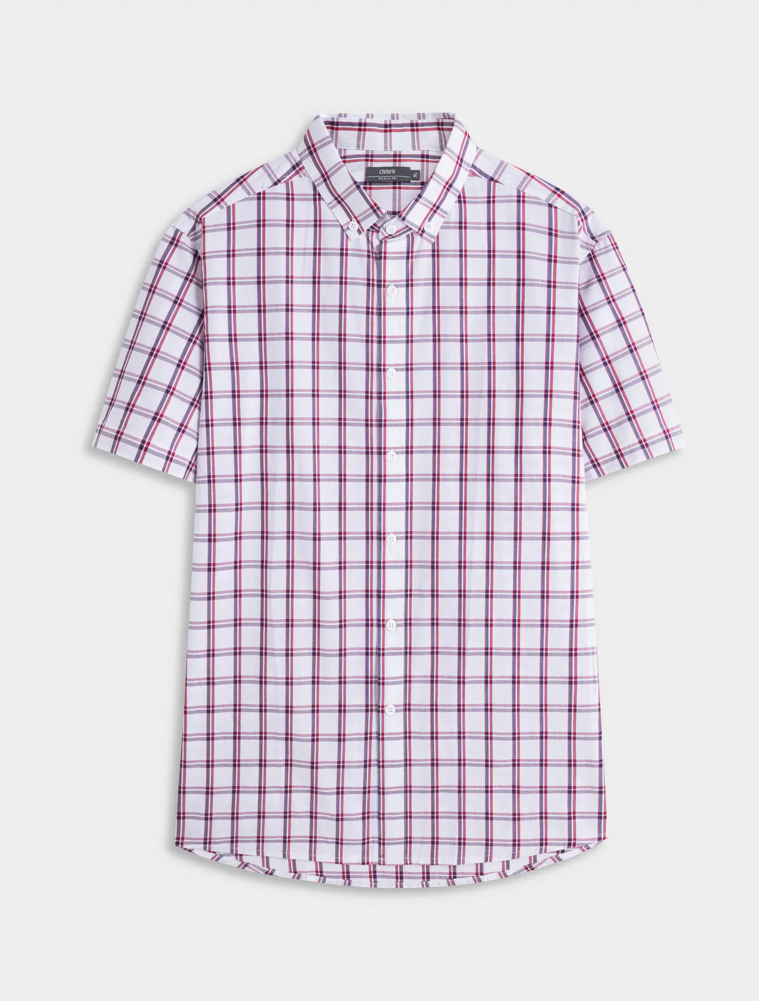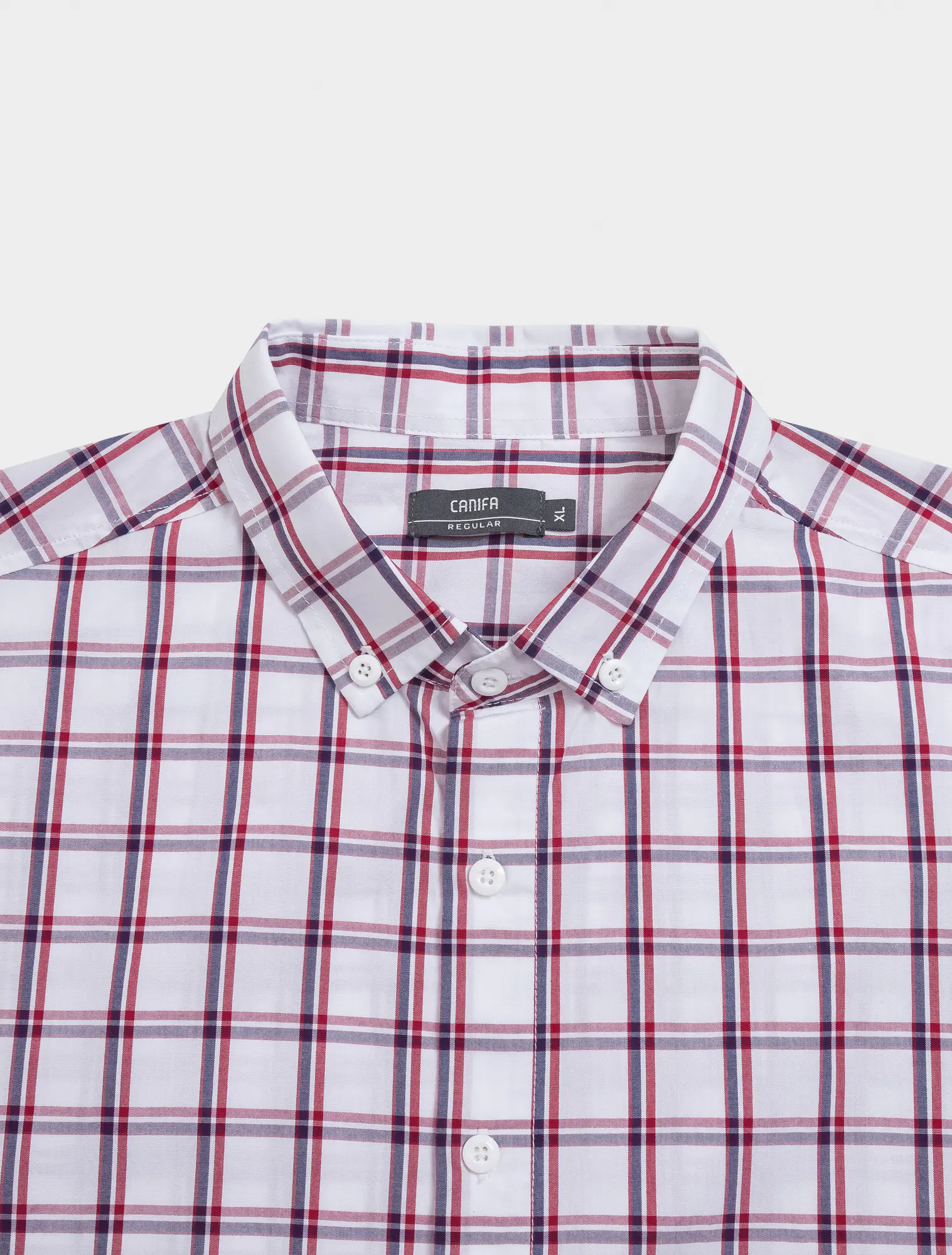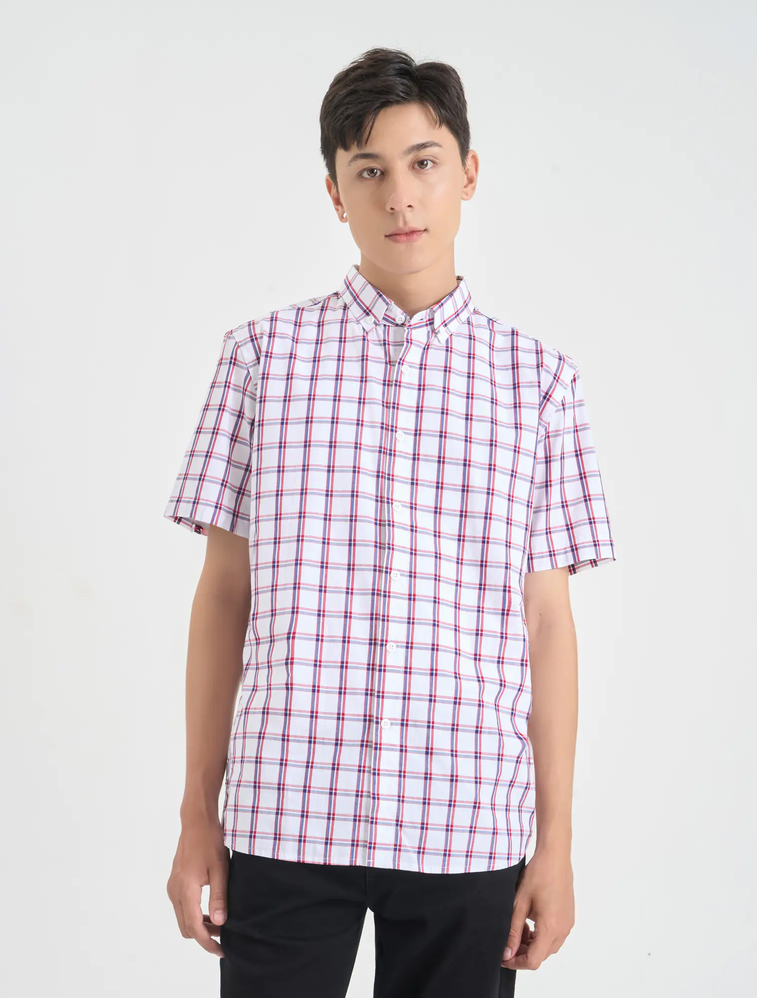 Áo sơ mi nam ngắn tay kẻ caro, chất liệu cotton thông thoáng, form regular với độ ôm cơ thể vừa phải, thoải mái cả ngày dài.