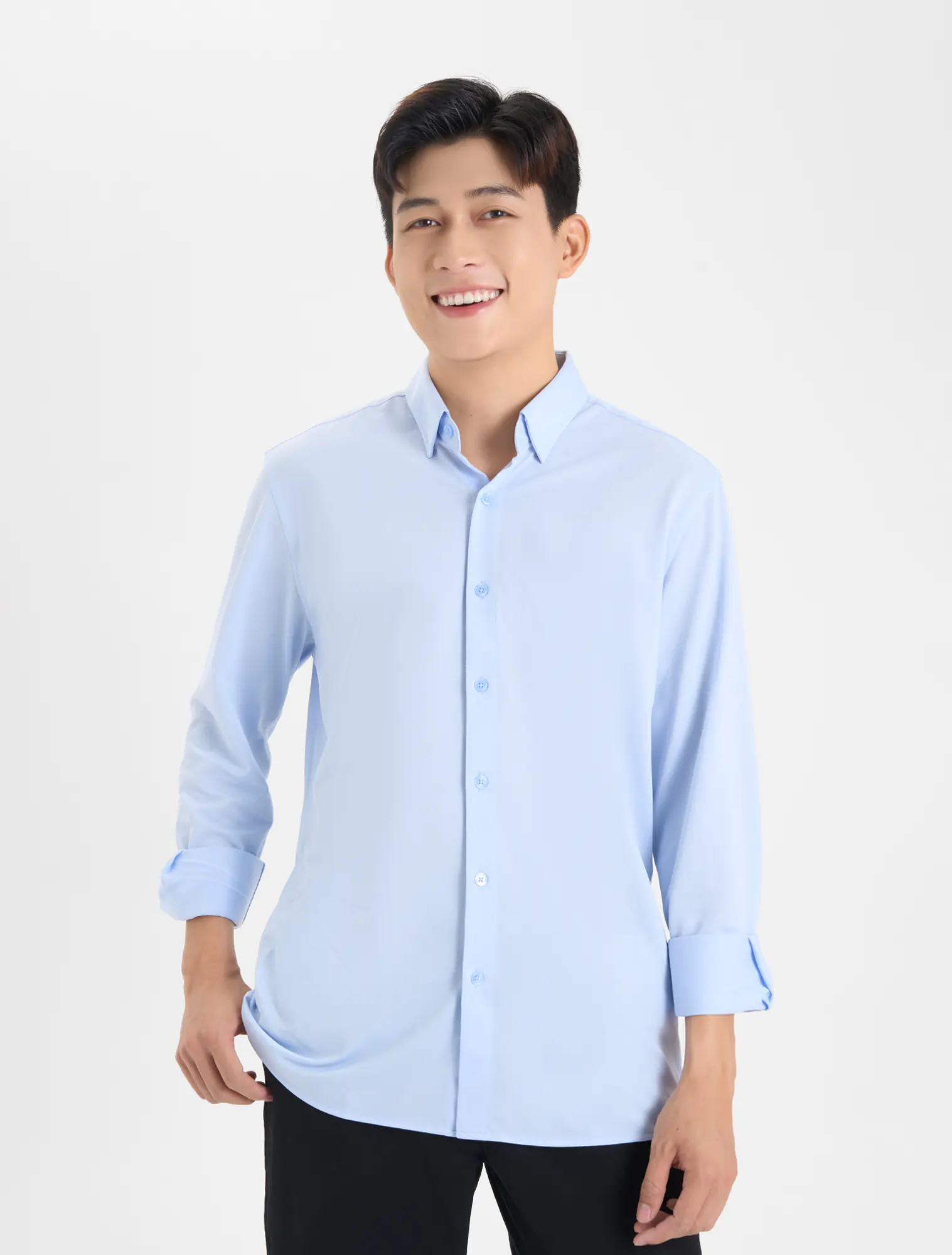 Áo sơ mi nam dài tay chất liệu cotton polyester thông thoáng, form regular fit với độ ôm sát cơ thể vừa phải, thoải mái cả ngày dài. Đường may tỉ mỉ, kiểm soát chất lượng chỉ, đường may một cách hoàn hảo mang đến cho khách hàng một sản phẩm chỉn chu, thanh lịch và sang trọng.