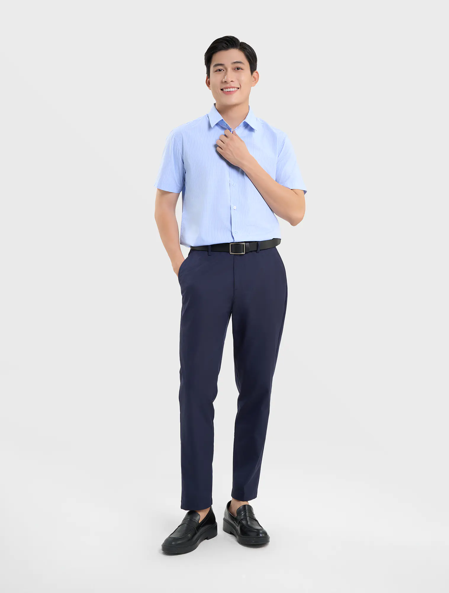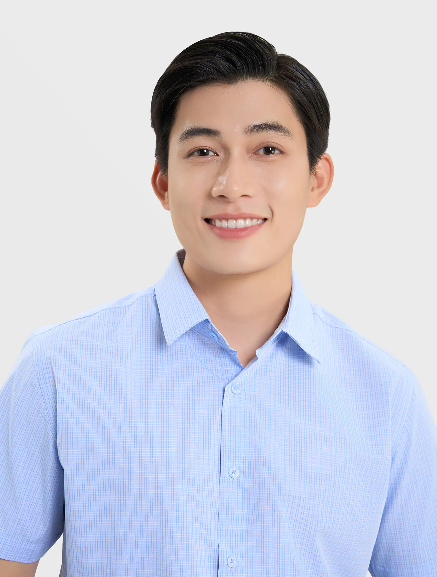 Áo sơ mi nam phom regular, chất liệu bamboo polyester giảm nhăn, nhàu, thoáng mát, mềm mại. Sản phẩm phù hợp mặc đi làm, đi chơi, có thể kết hợp cùng quần vải, quần khaki,...