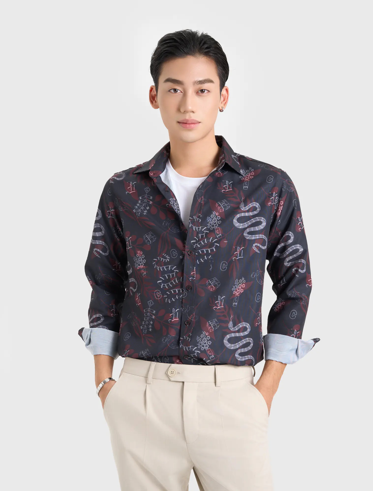 Áo sơ mi in tràn họa tiết Á đông kết hợp chủ đề năm Tị. Với những graphic được vẽ tay khéo léo mang đặc trưng của ngày Tết Nguyên Đán của Việt Nam. Phù hợp mặc dạo phố, lễ hội, và có thể sử dụng hàng ngày.